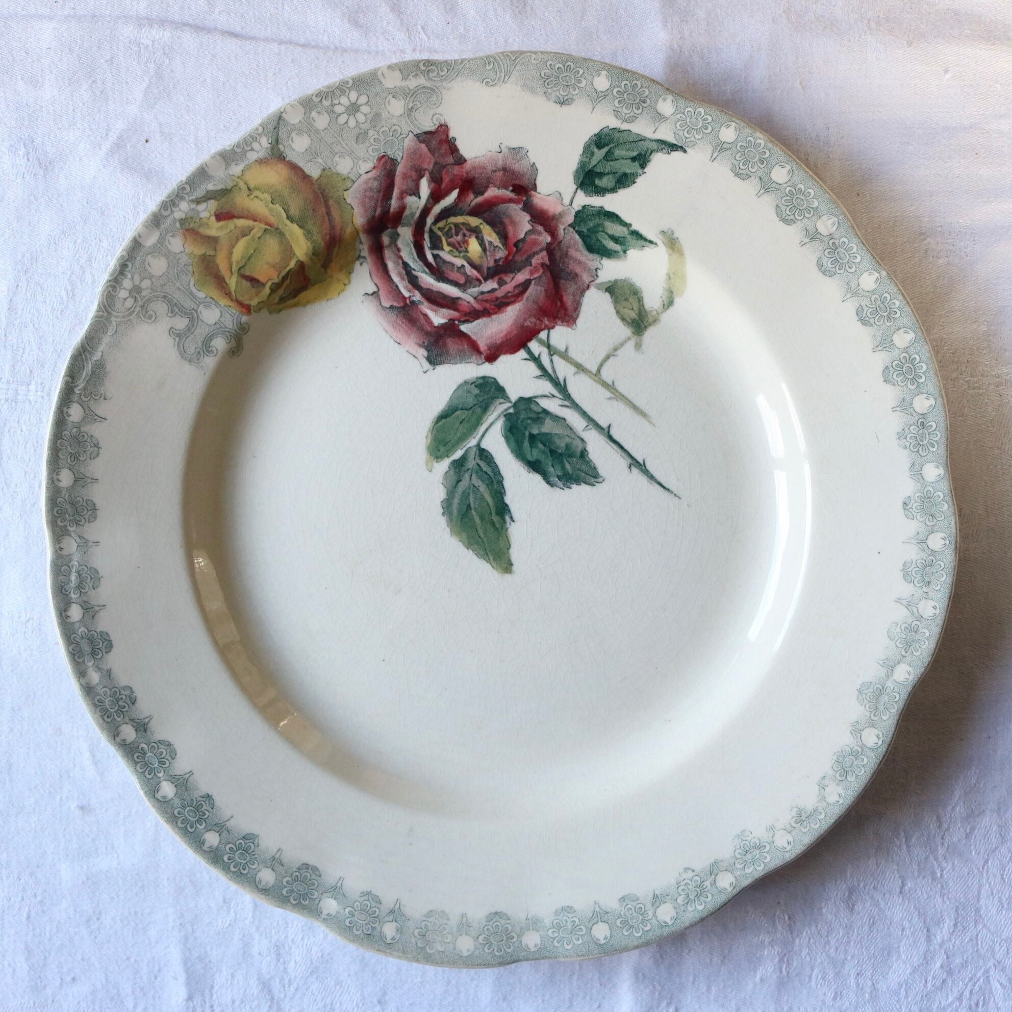 Émile bourgeois 薔薇 多彩刷り プレート フランス アンティーク ボタニカル