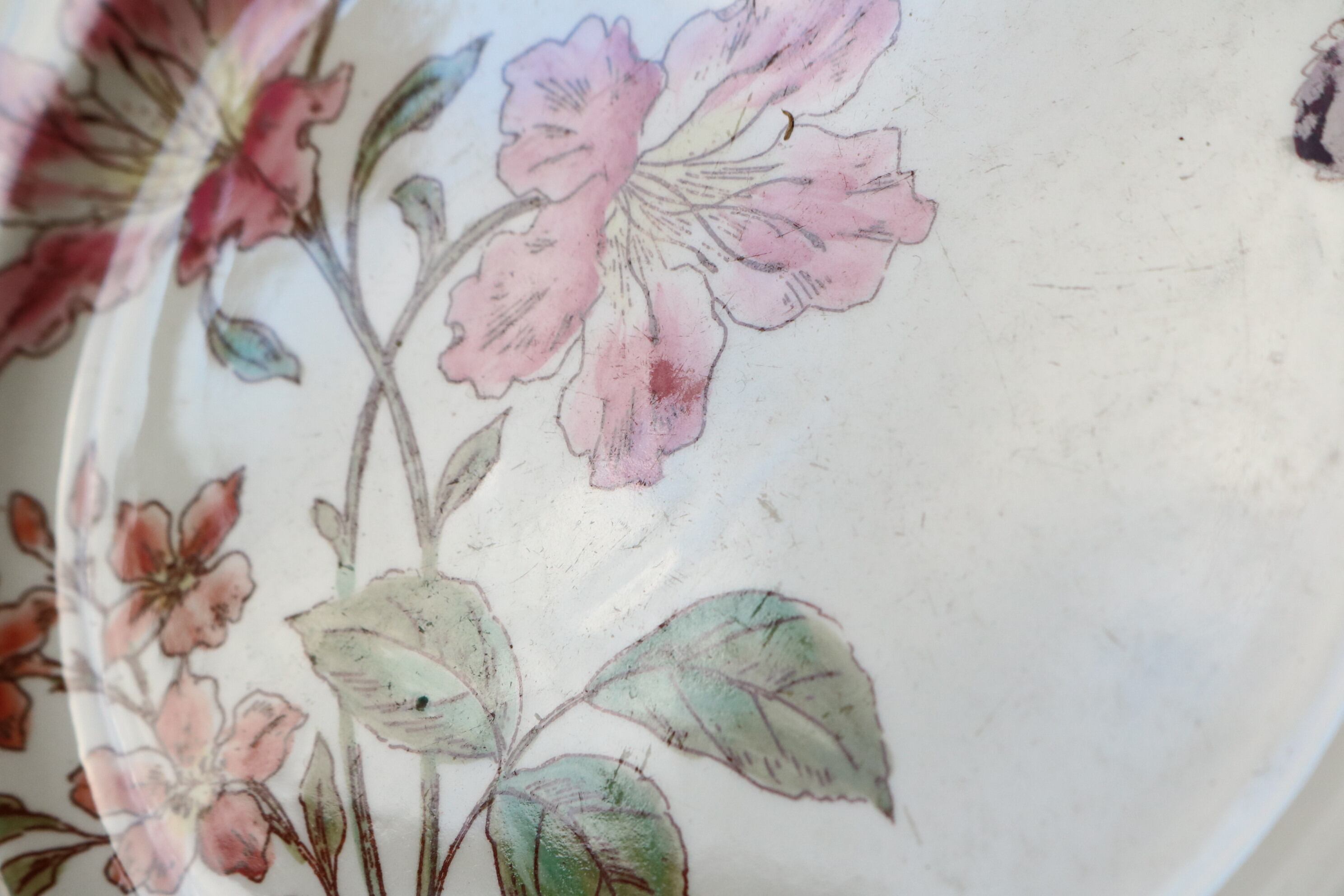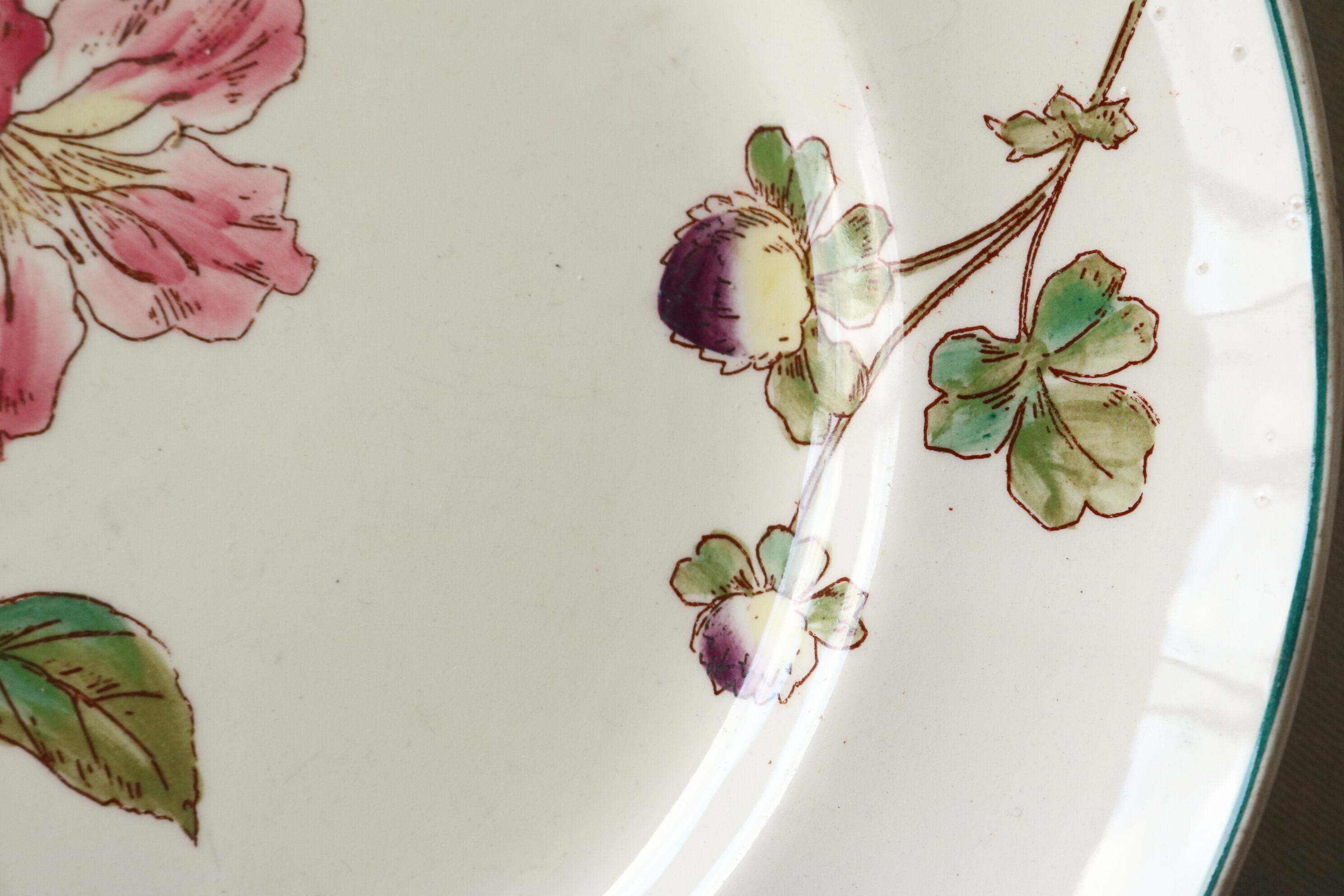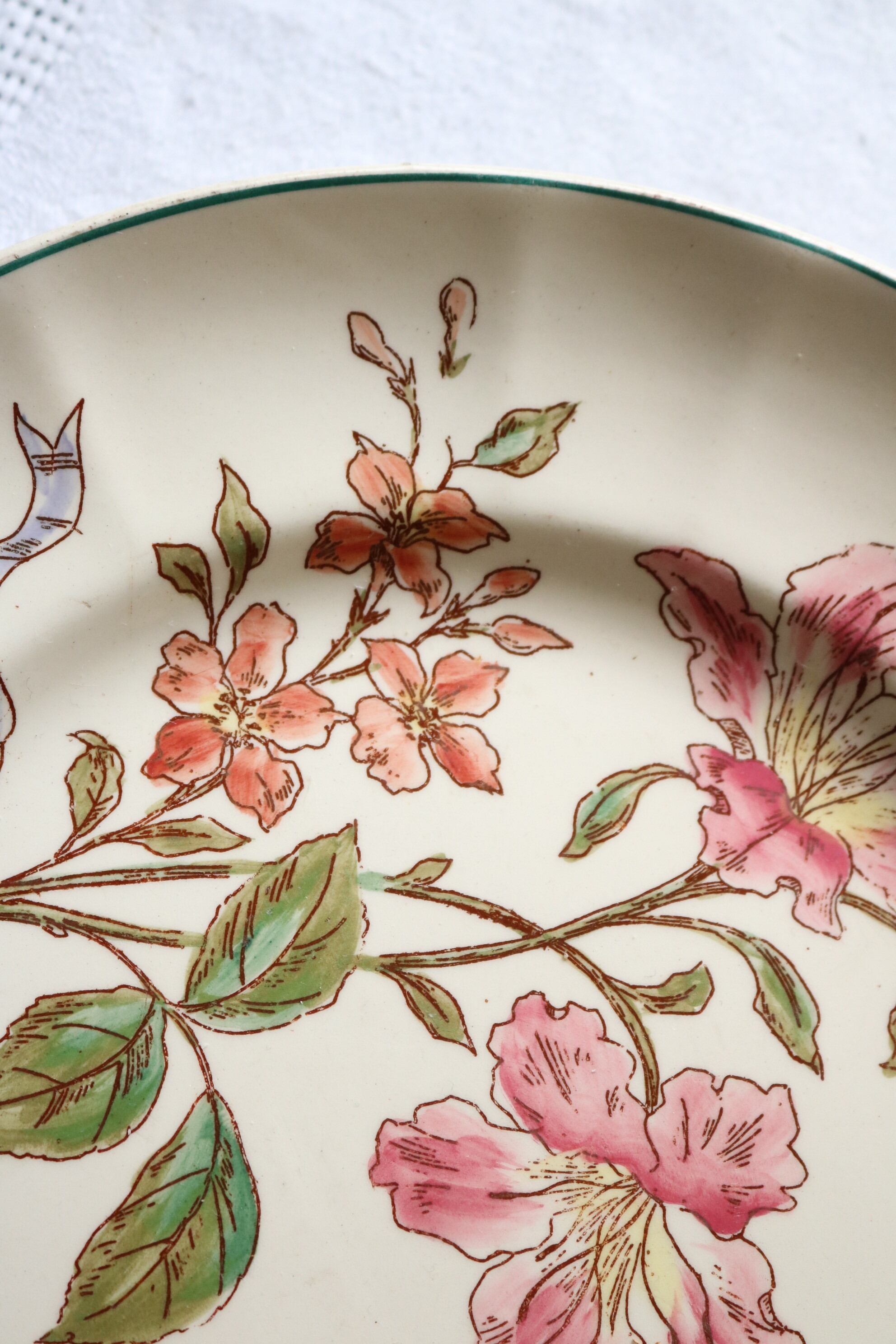Longchamps 多彩刷り ツツジ リボン プレート フランス アンティーク ボタニカル