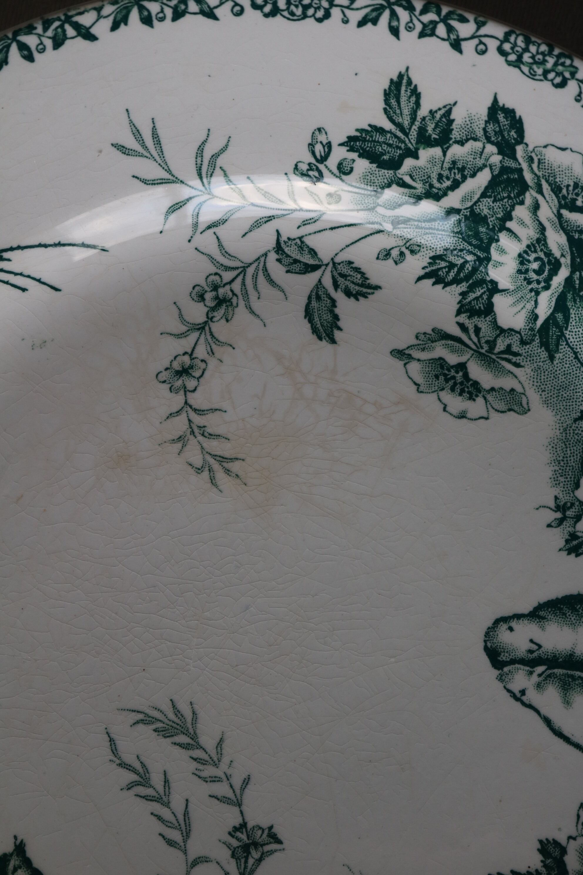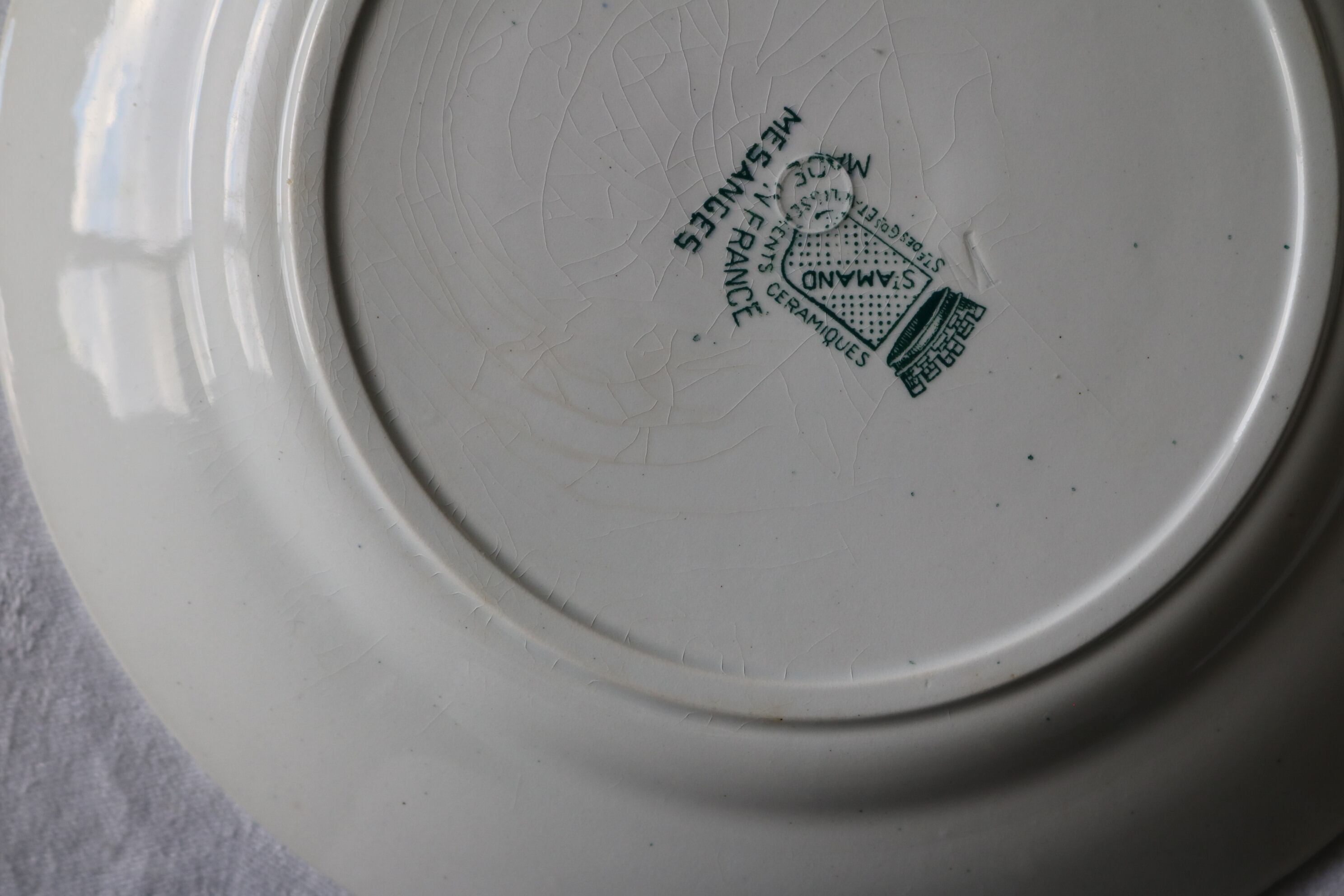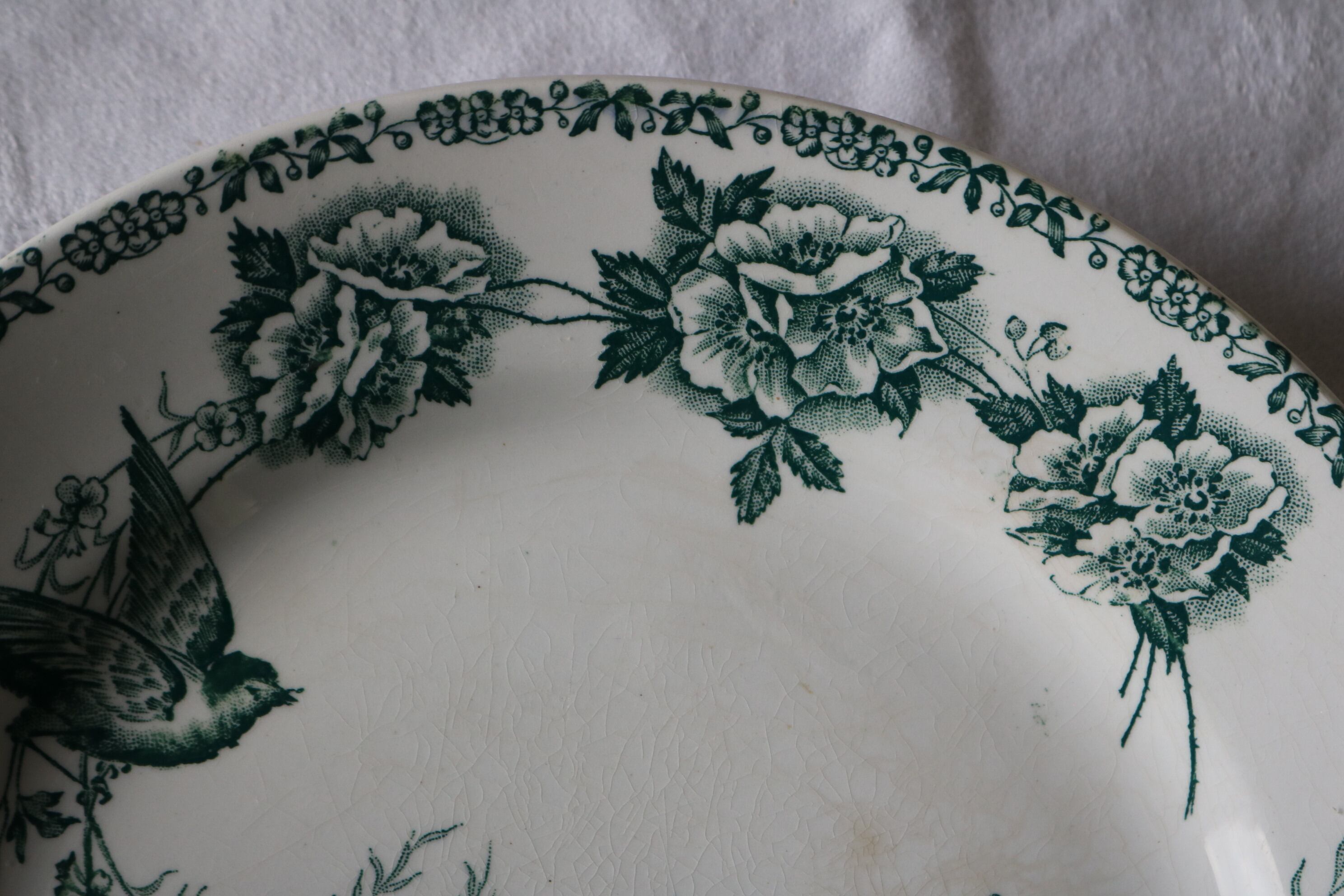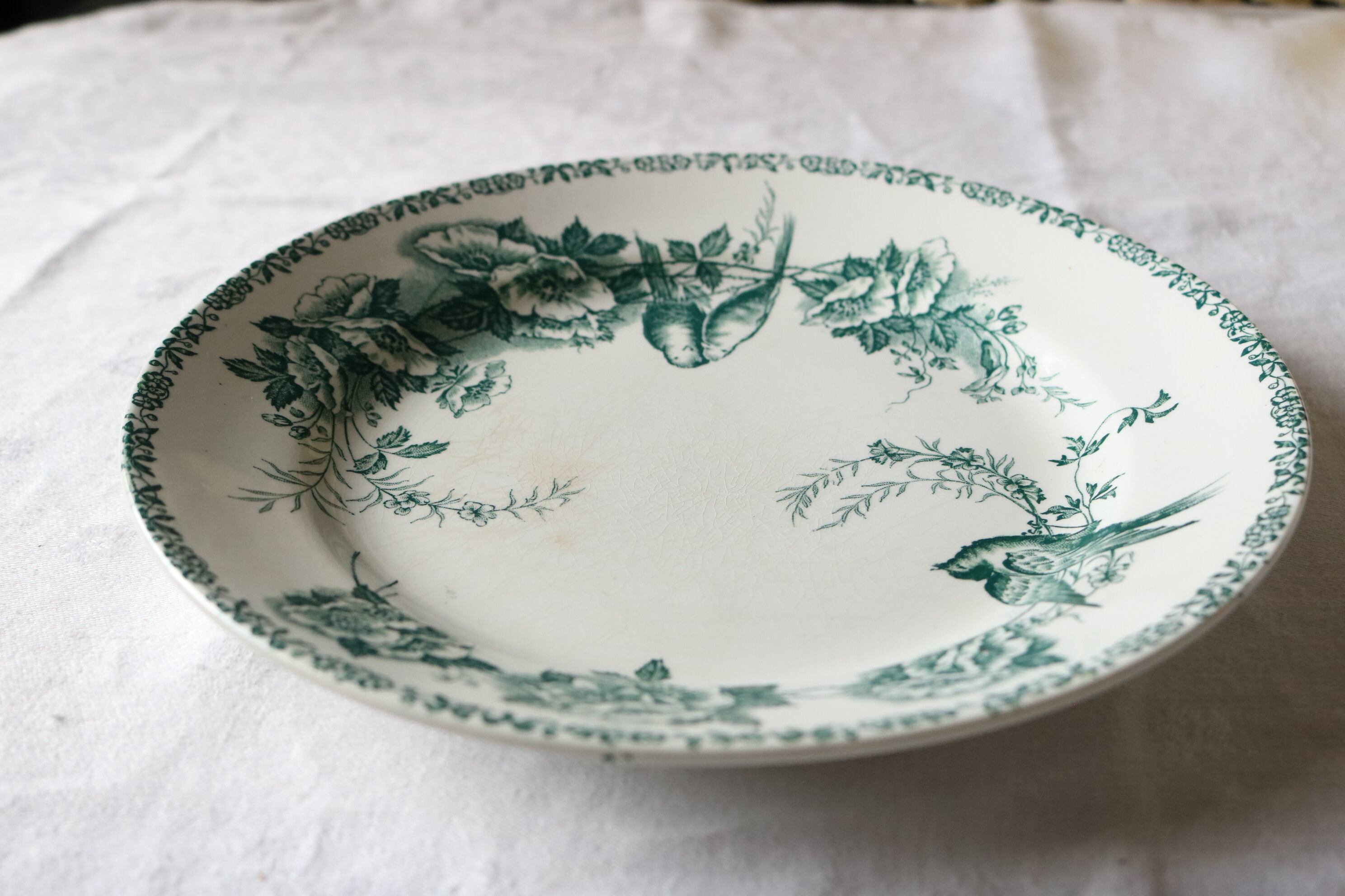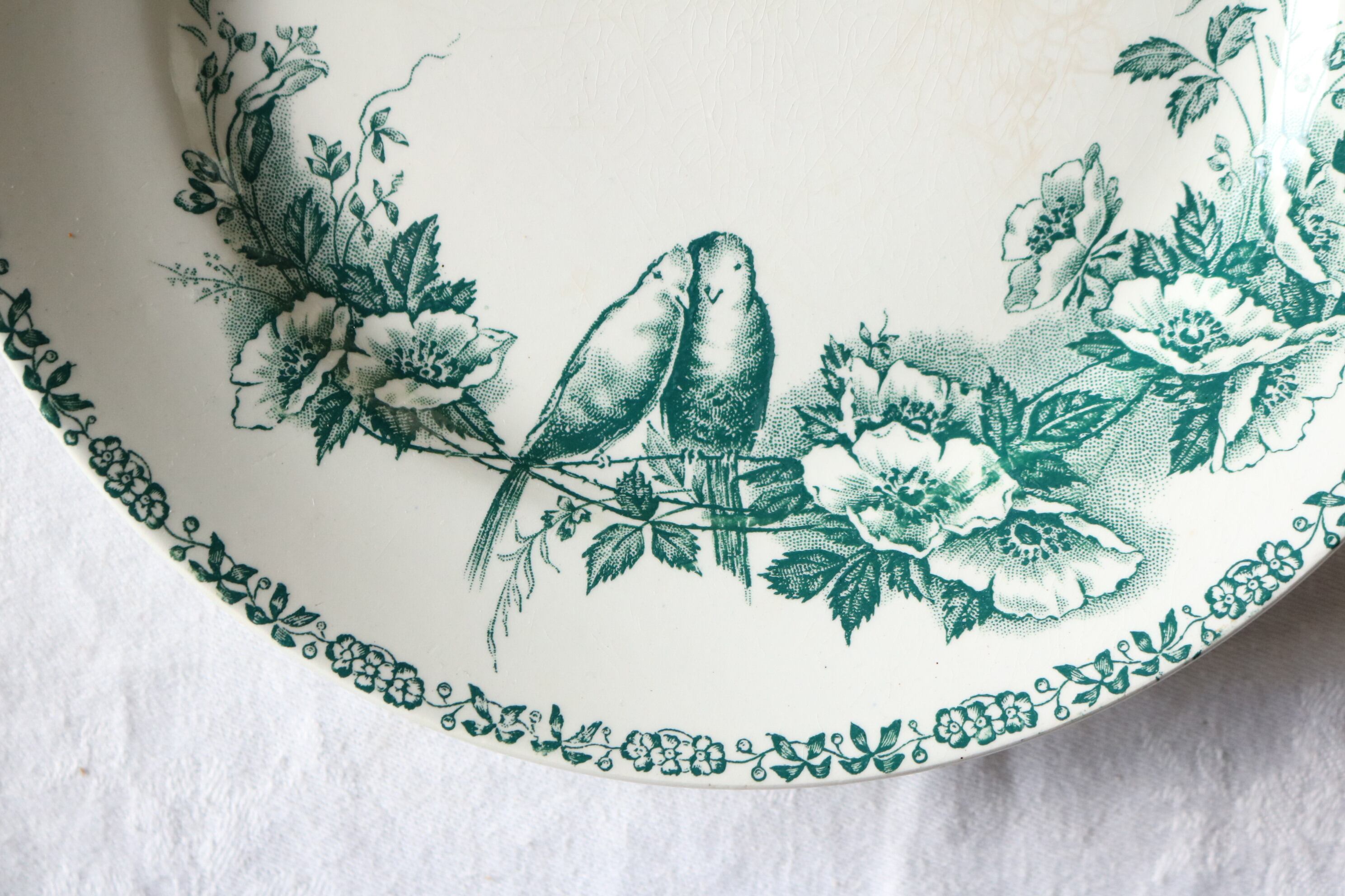 Saint Amand 鳥 夫婦 プレート グリーン フランス アンティーク 深皿