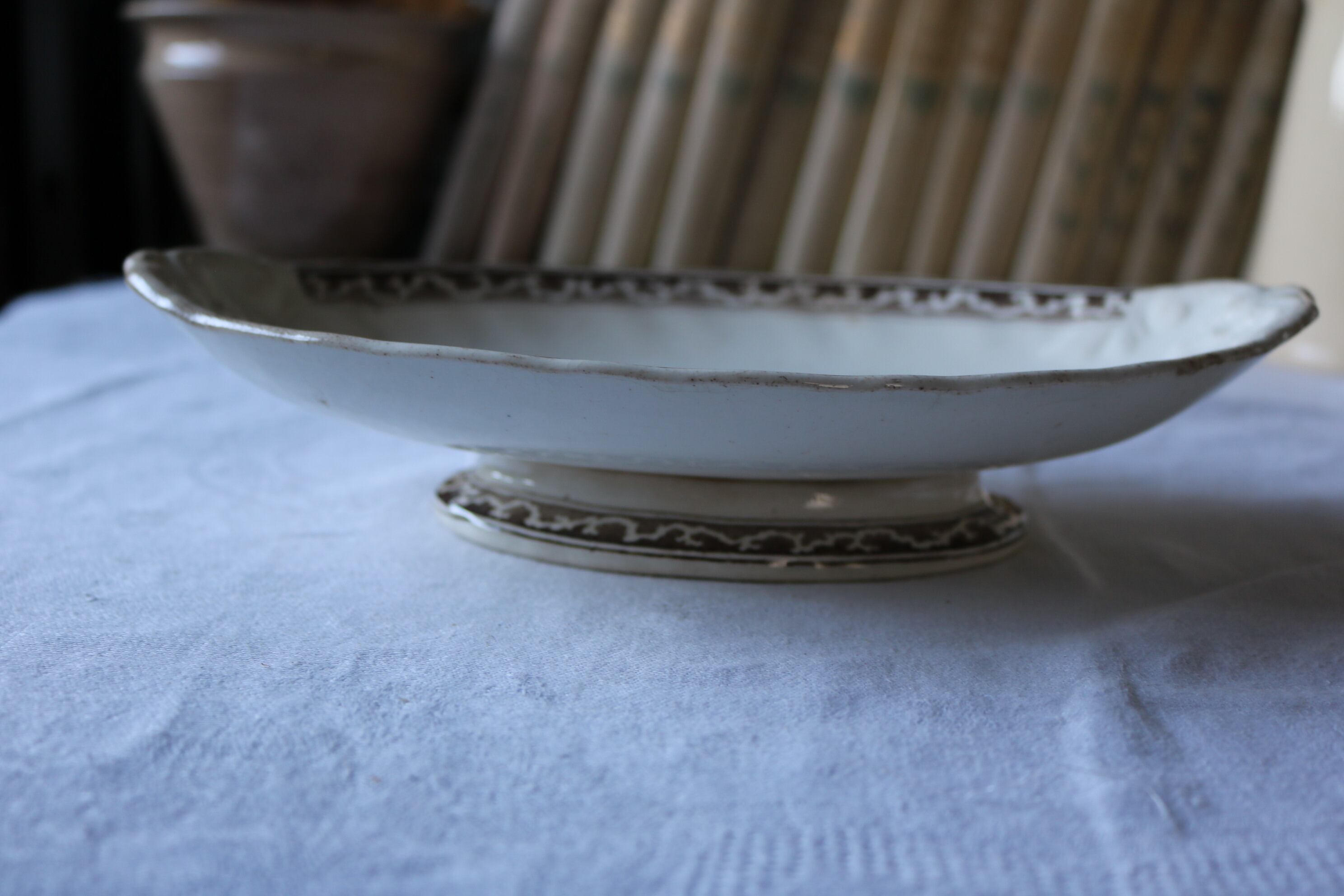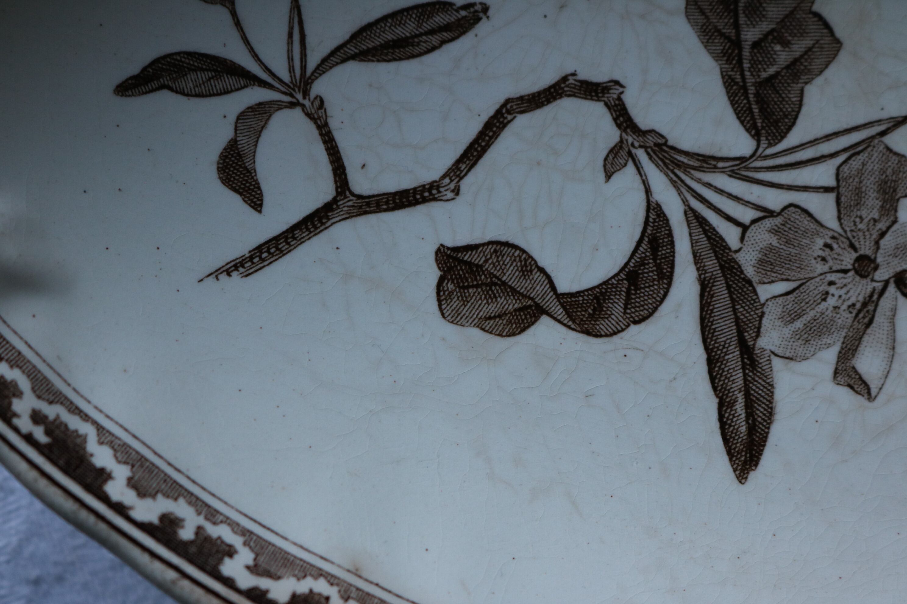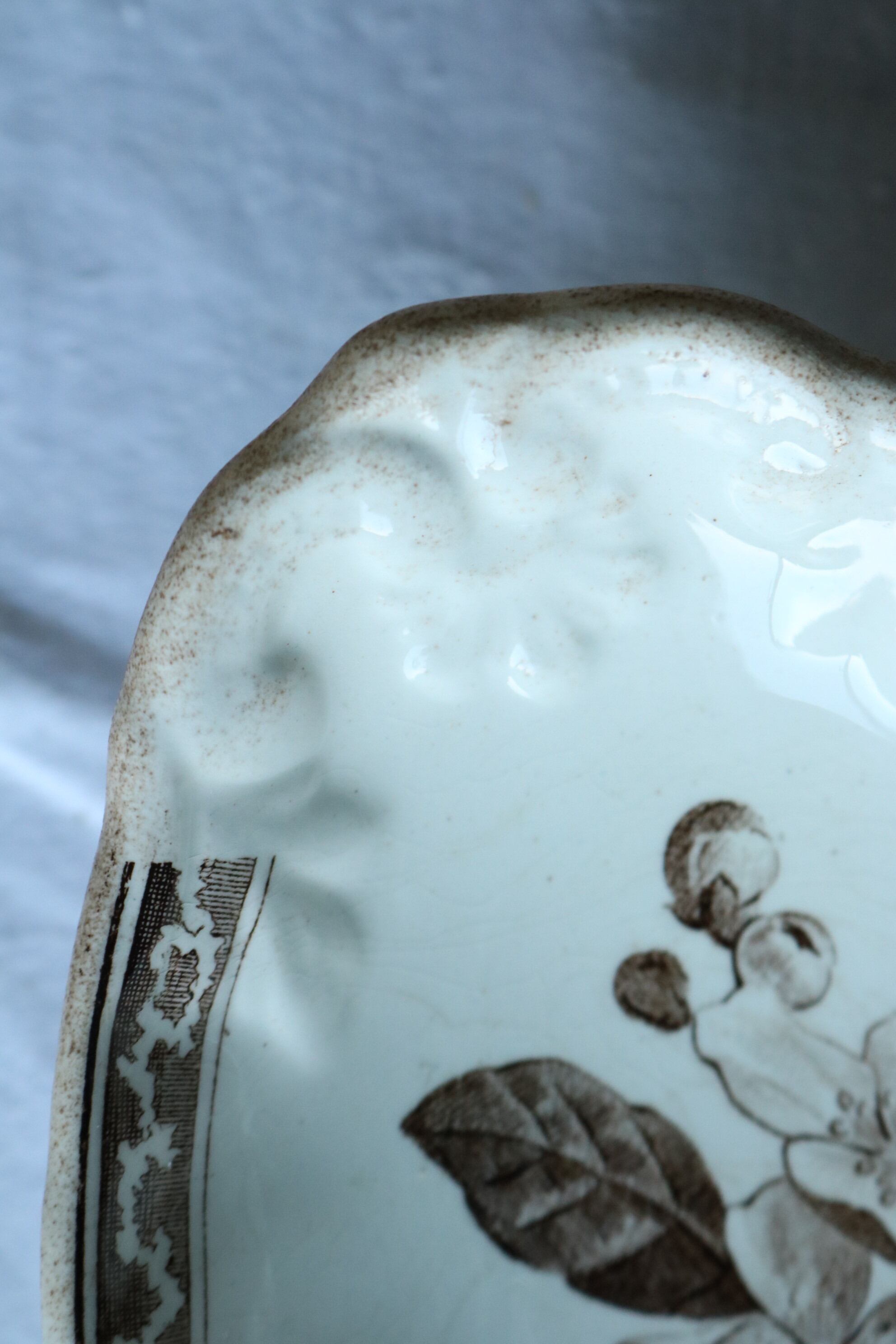 その他古いものなので、見落としや描ききれない経年による染み、貫入、カトラリー跡、小傷、絵柄の飛び、滲み、焼成時からの傷、釉薬のはげ等ある場合がございます。