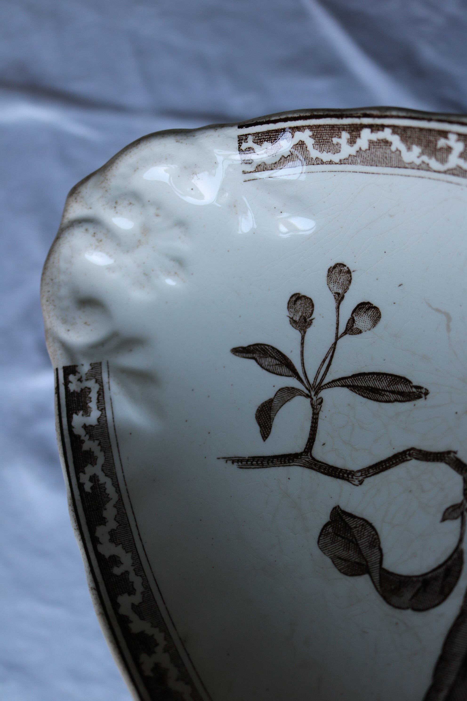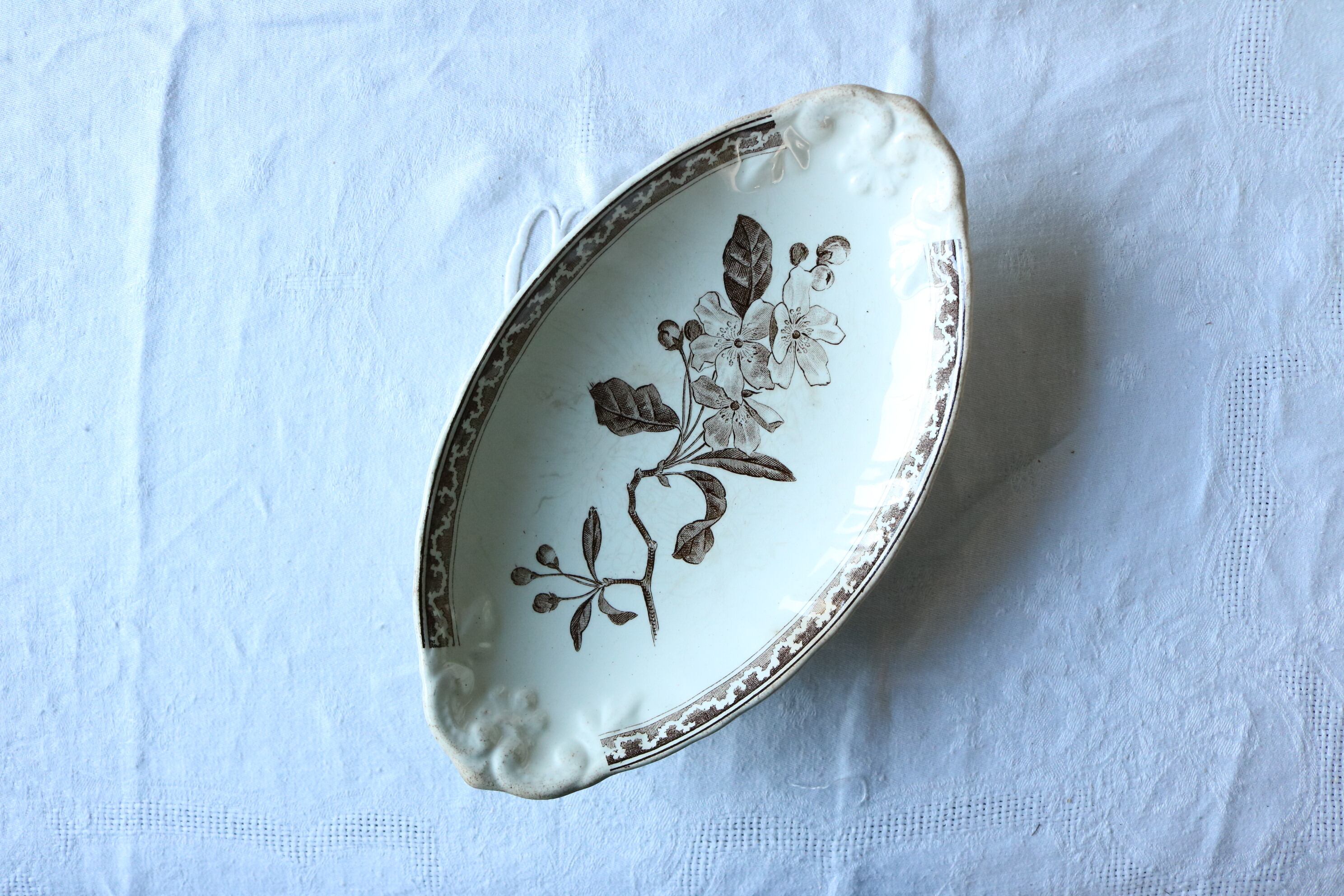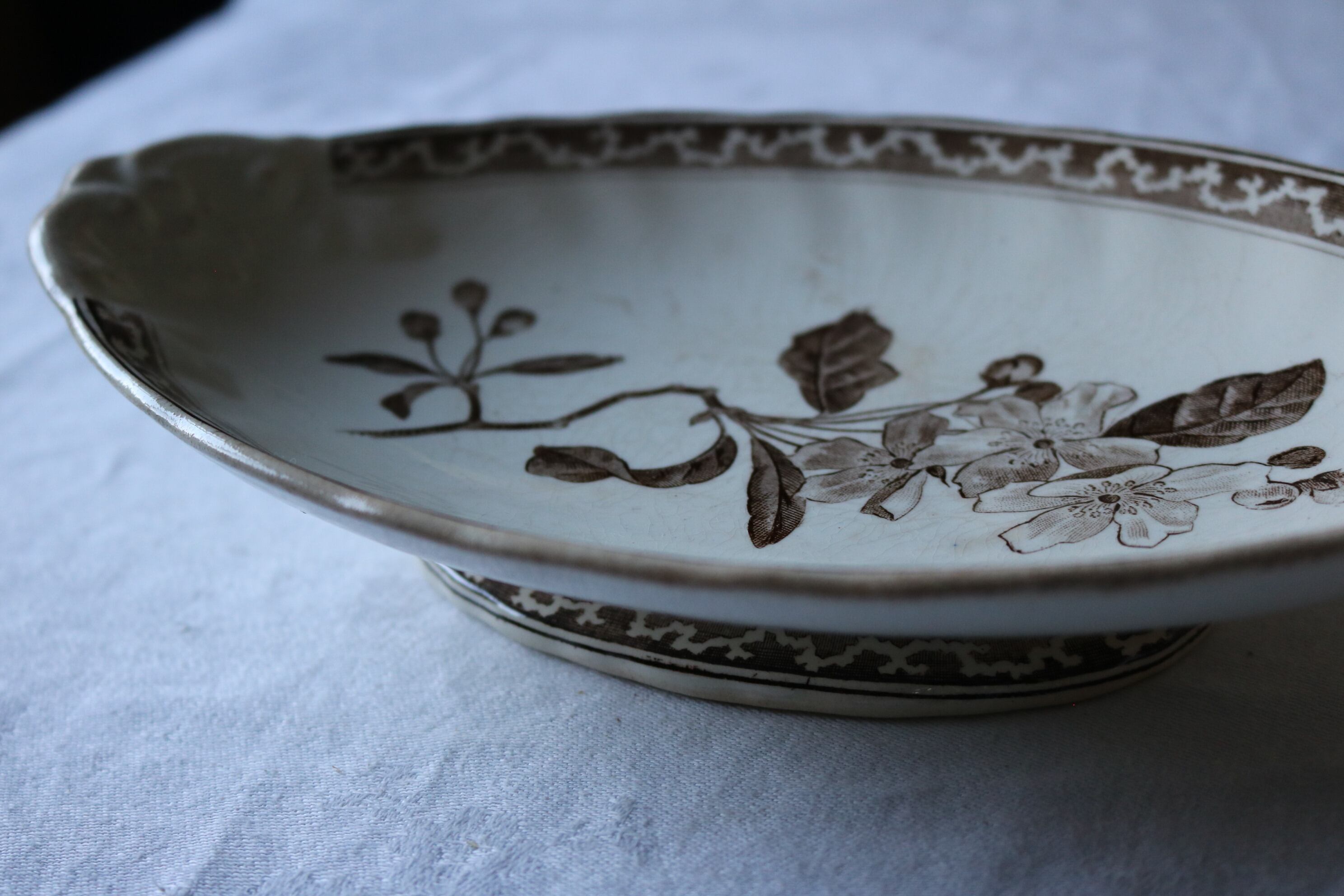 Creil et montereau 高台のラヴィエ ブラウン レリーフ りんごの花フランス ラヴィエ アンティーク