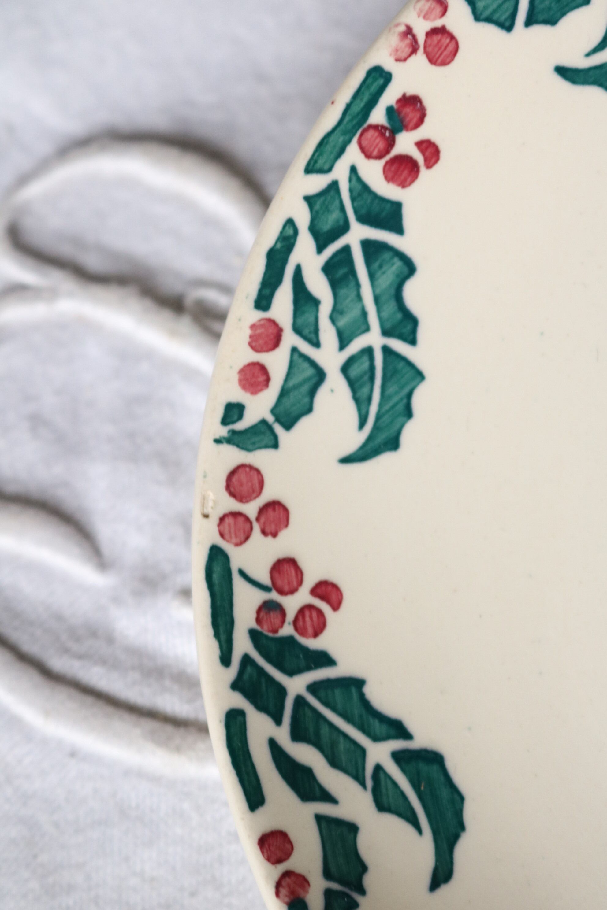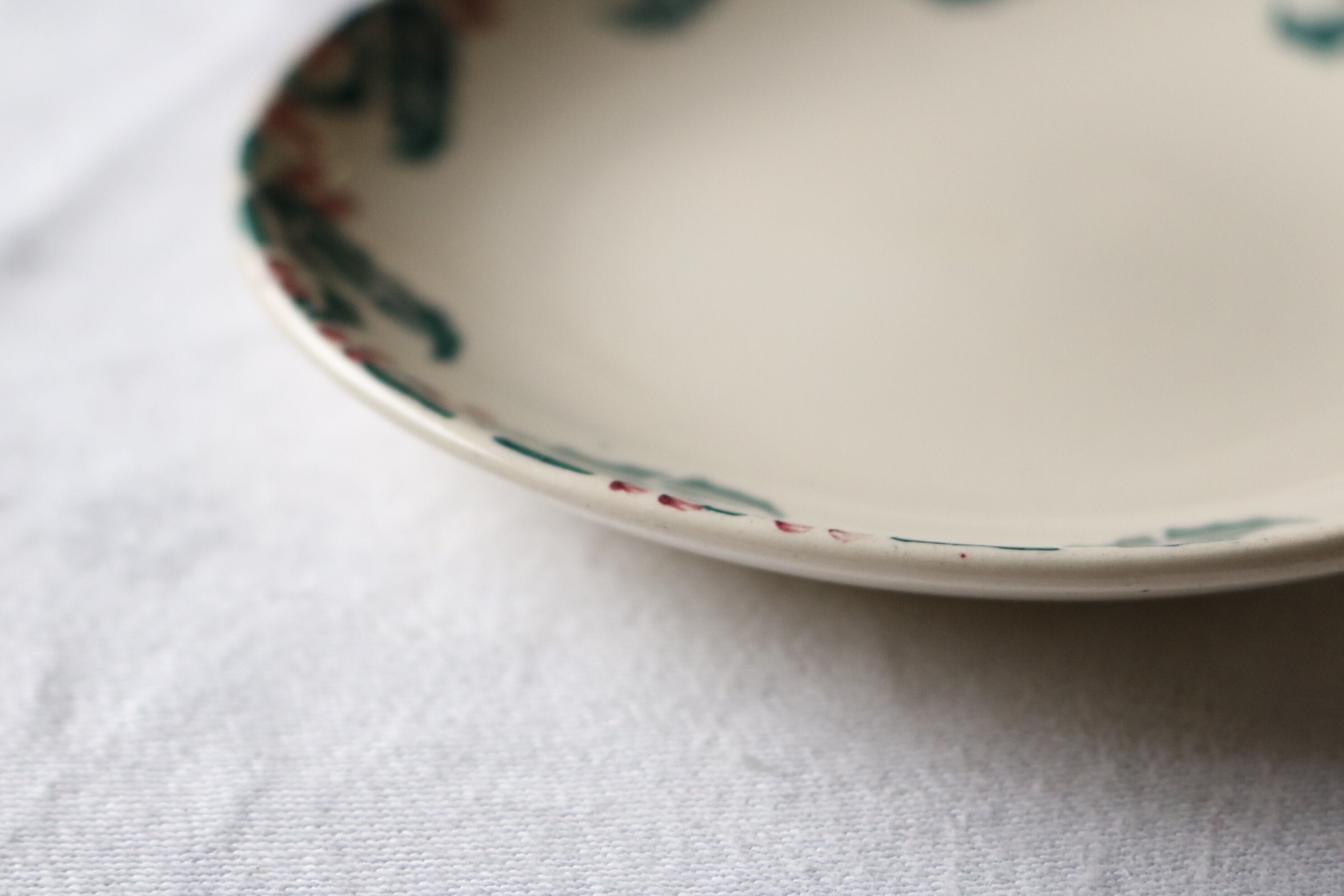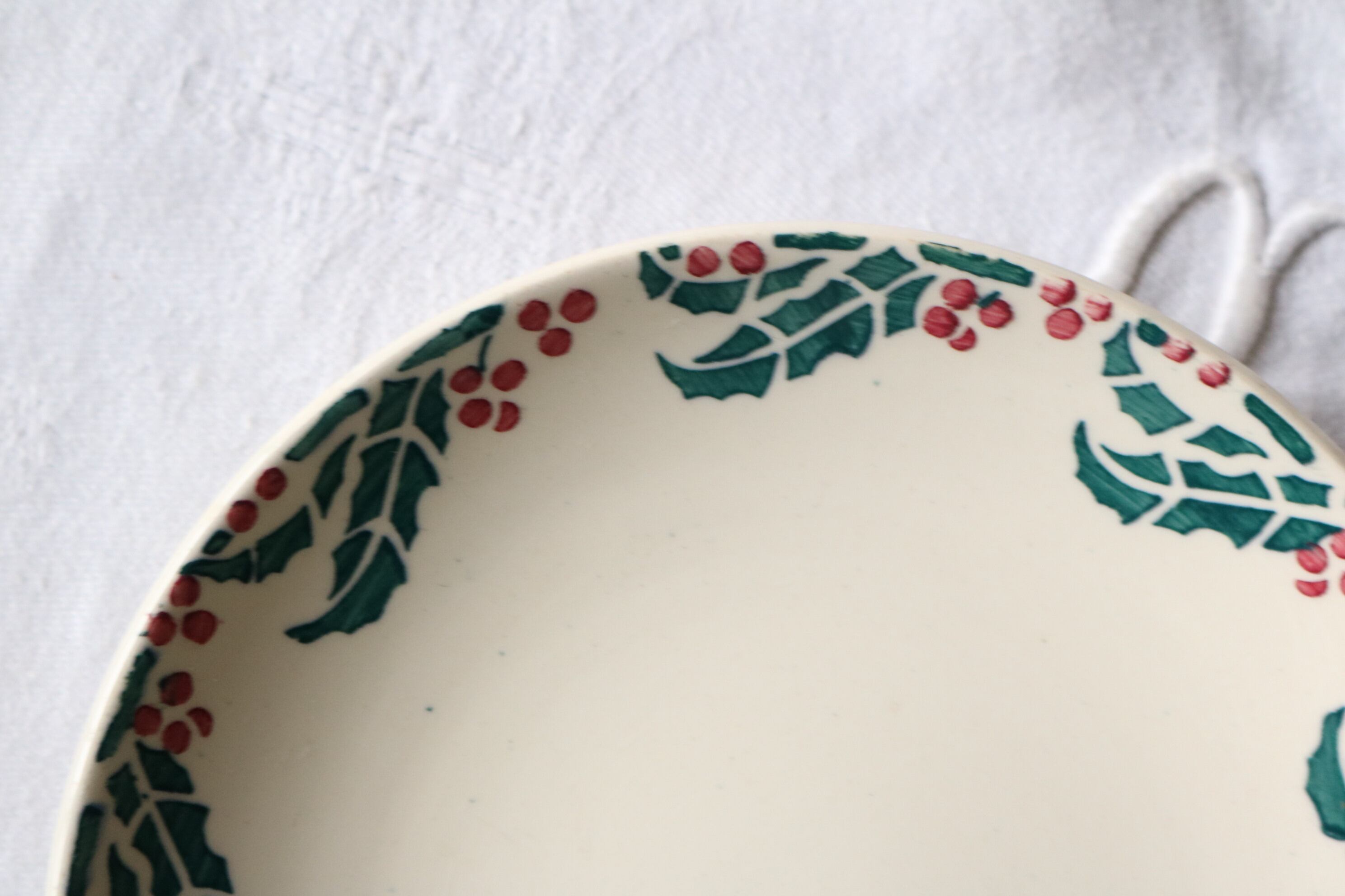 Sarreguemines 柊 小皿 豆皿 a ノエル ステンシル クリスマス フランス アンティーク