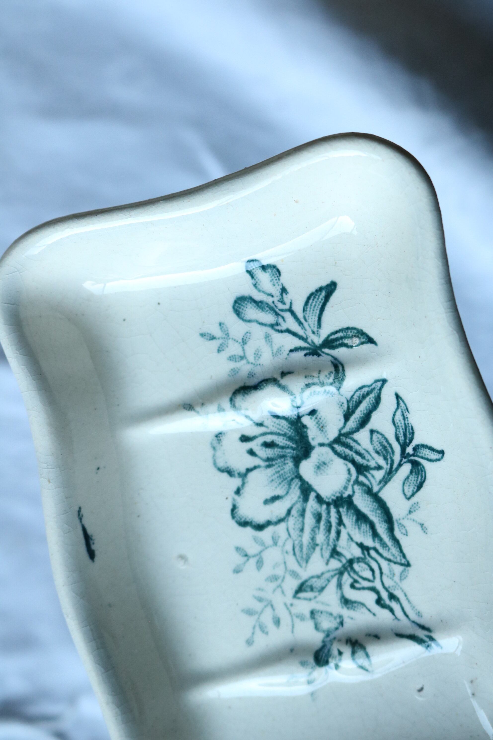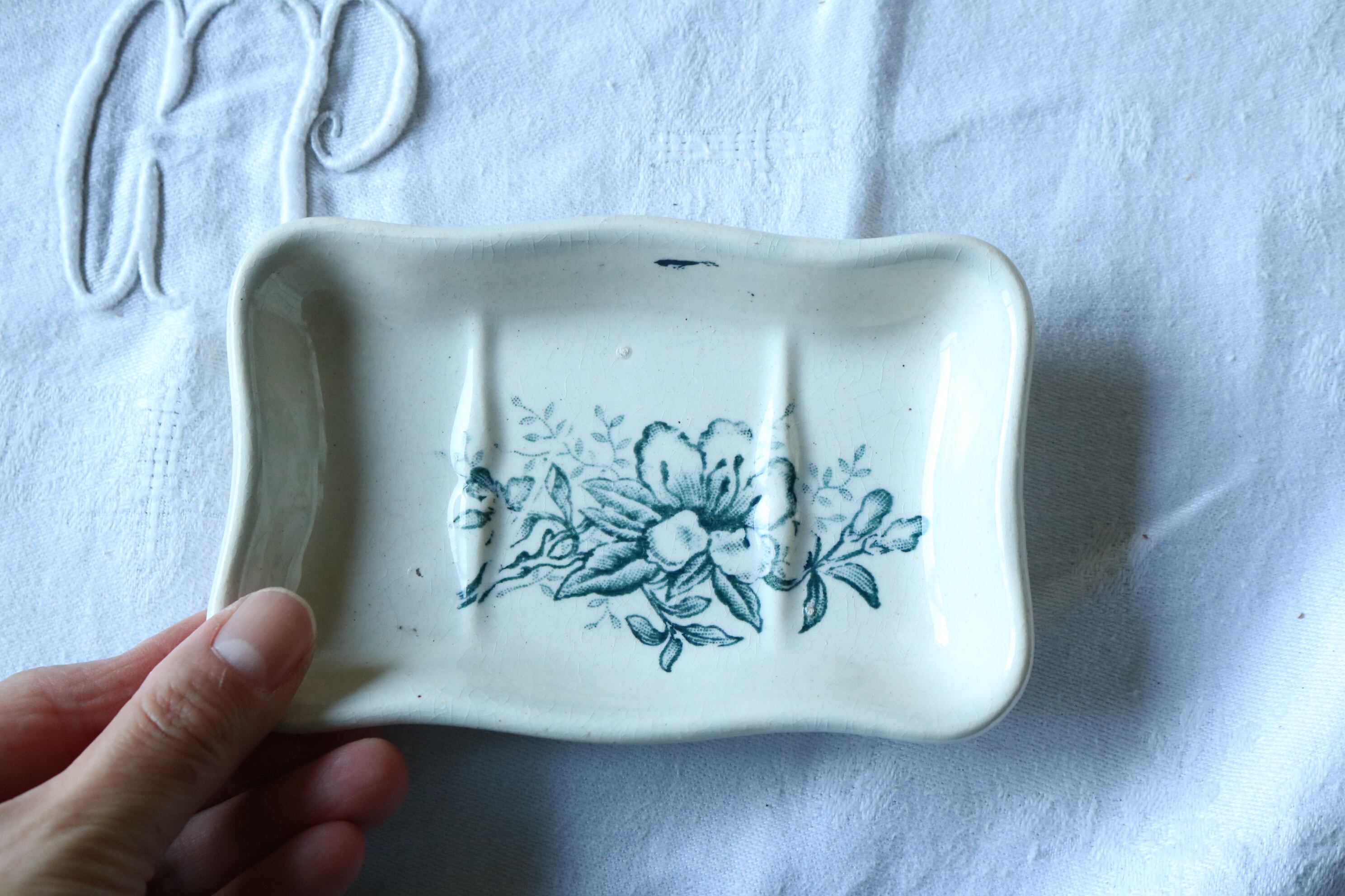 グリーン ブルーグリーン フランス 石鹸置き アンティーク