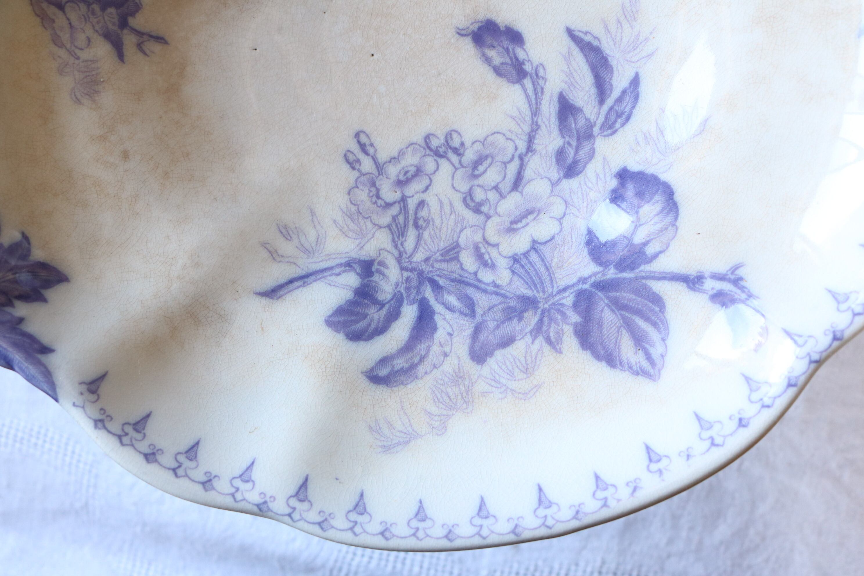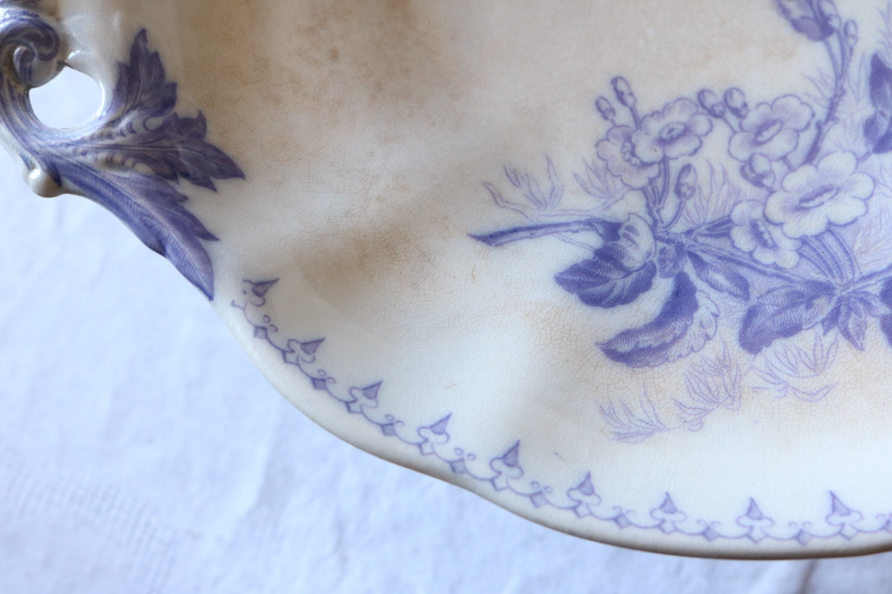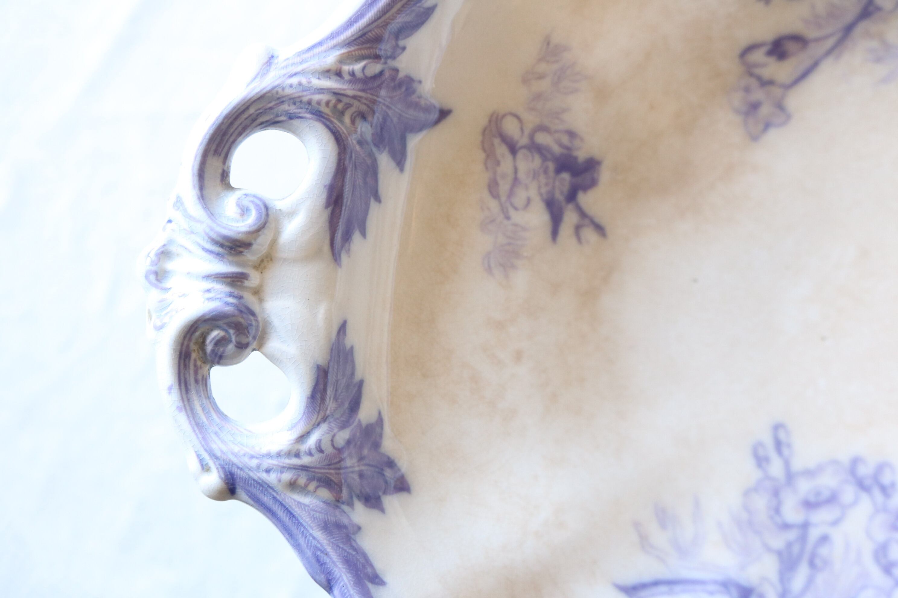 【希少】Sarreguemines 大きな コンポティエ レリーフ パープル ラベンダー フランス 高台 モーブ