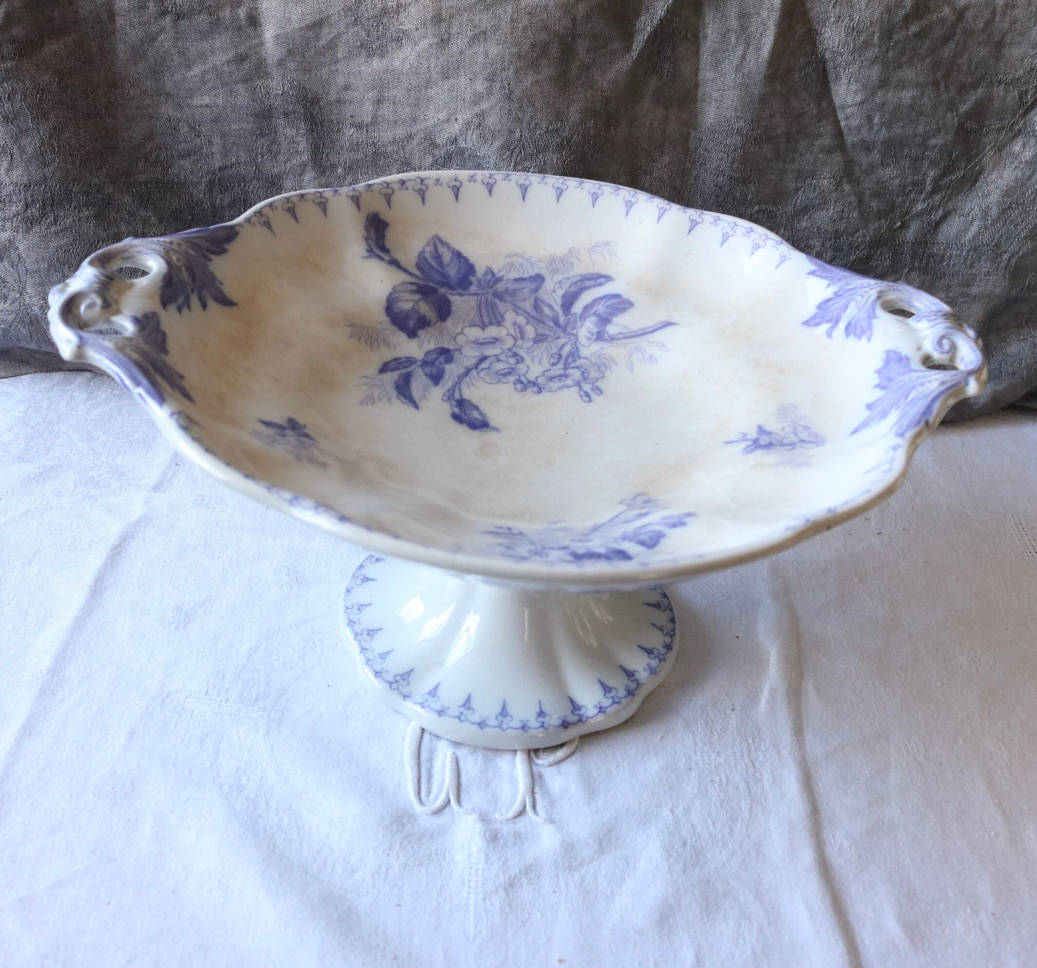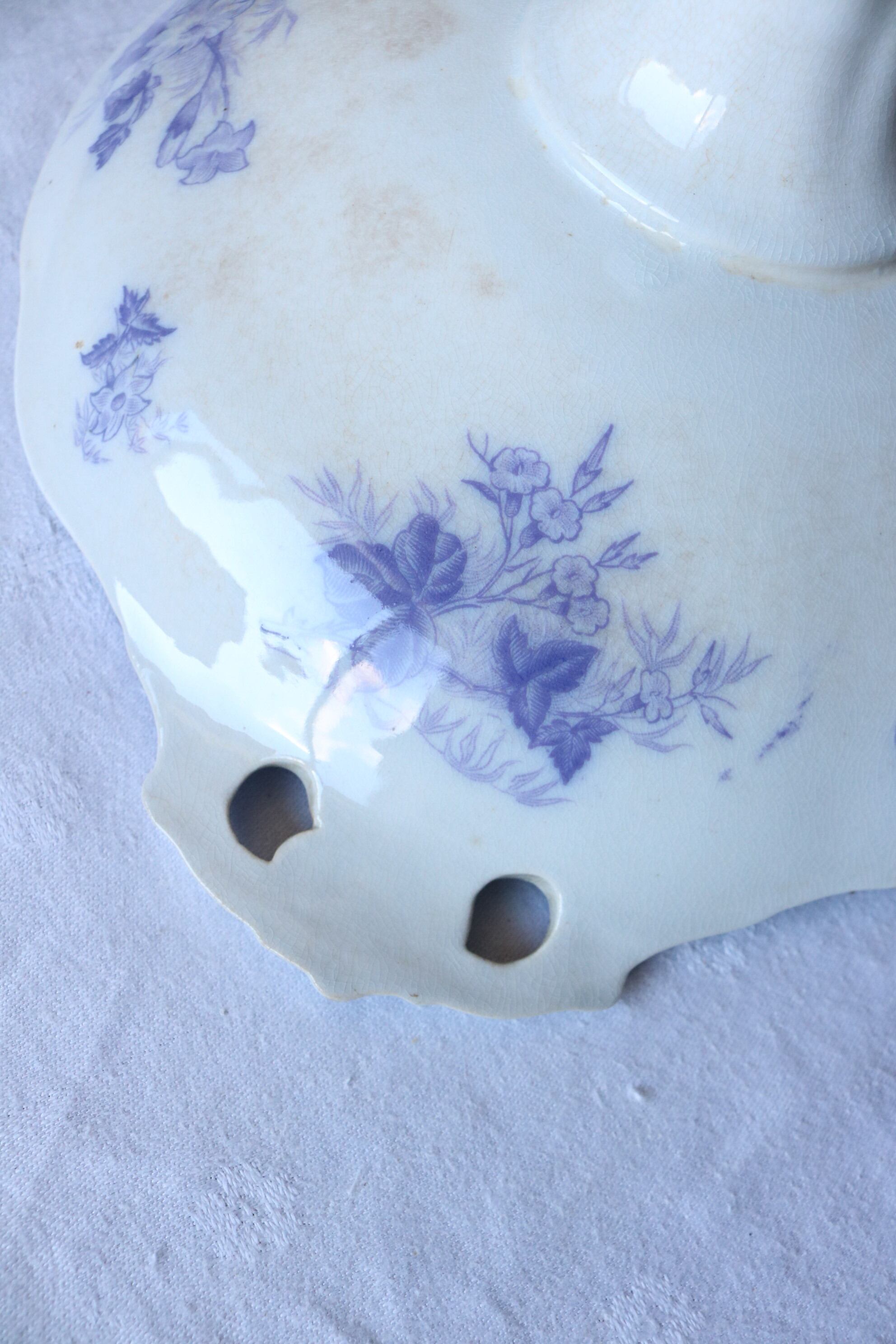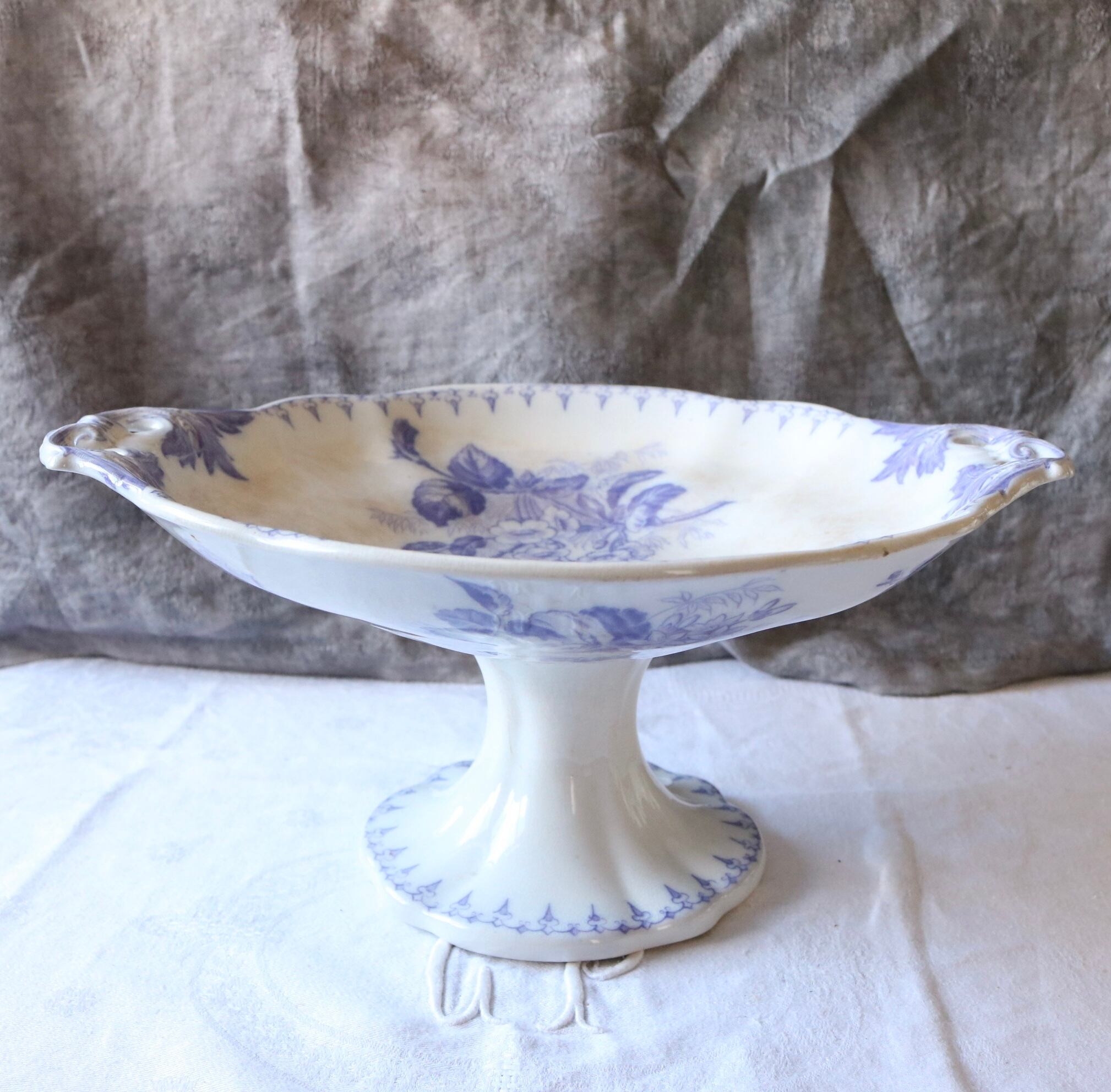 【希少】Sarreguemines 大きな コンポティエ レリーフ パープル ラベンダー フランス 高台 モーブ