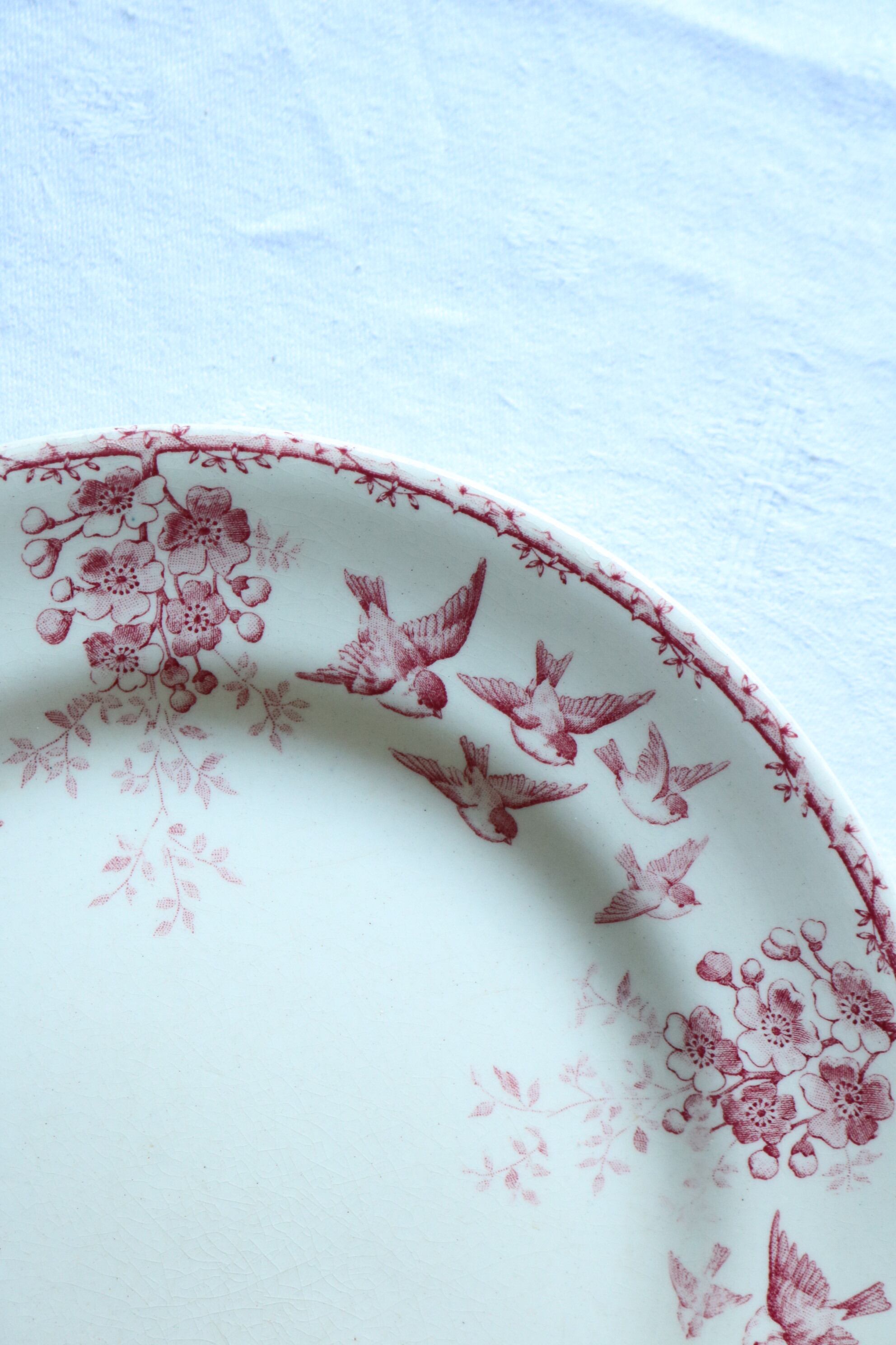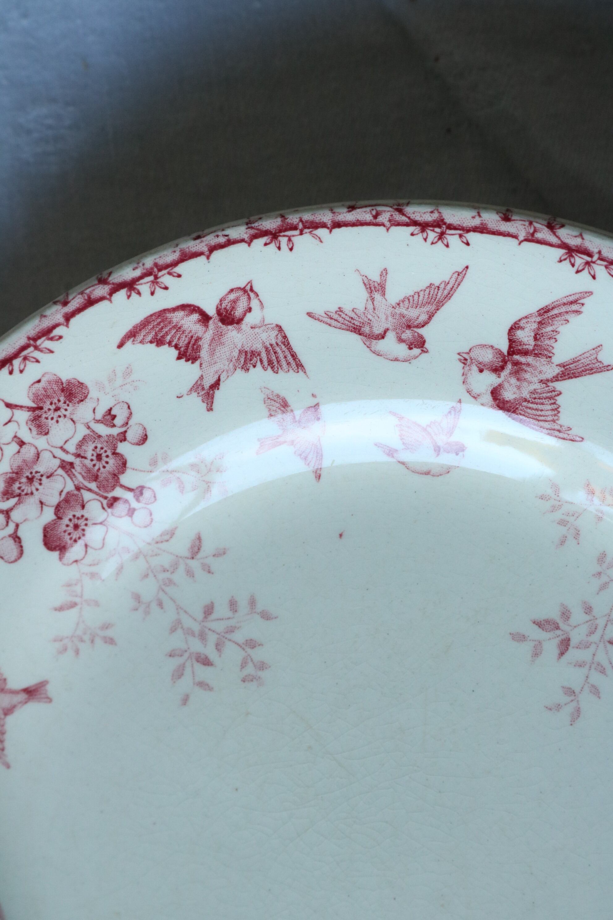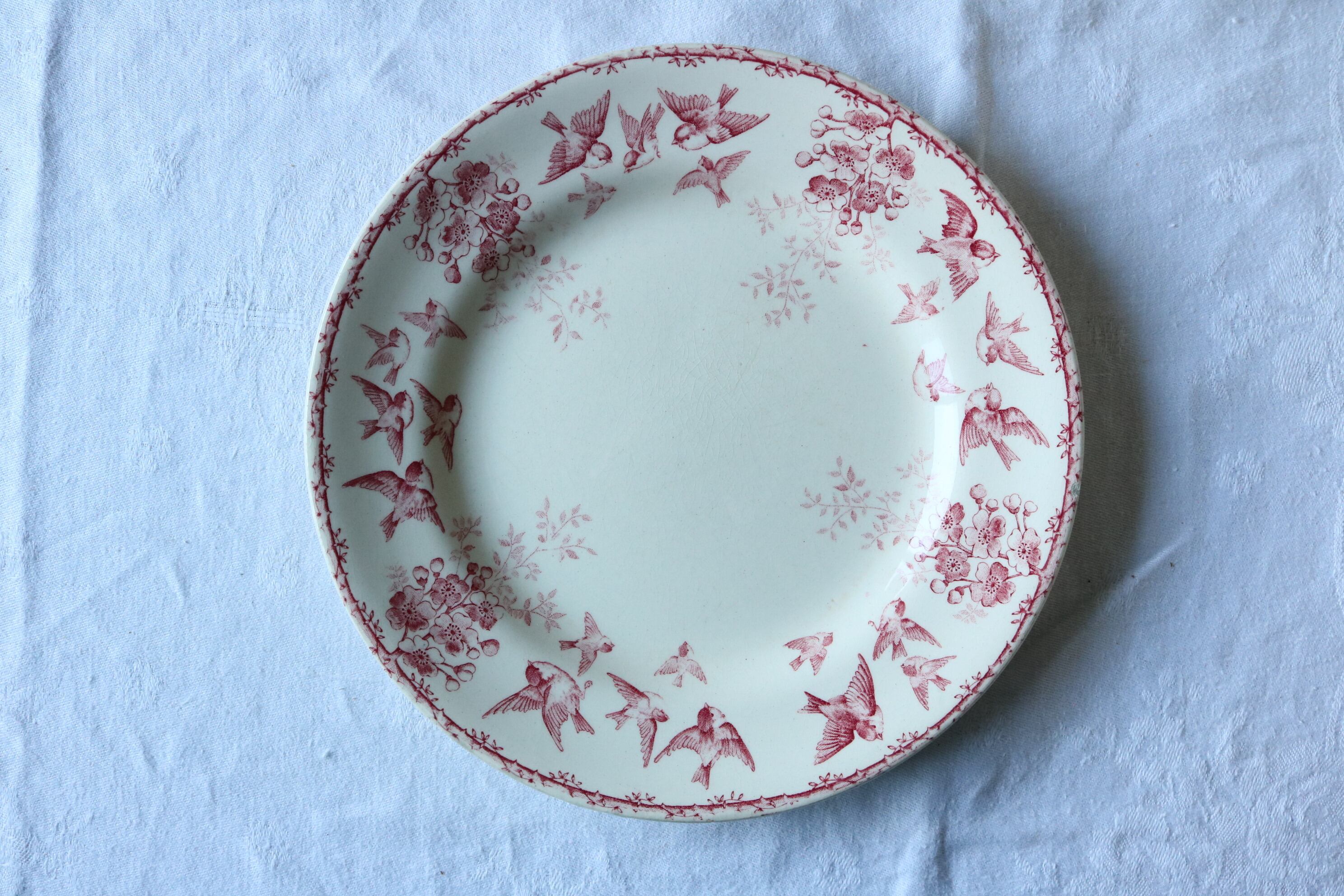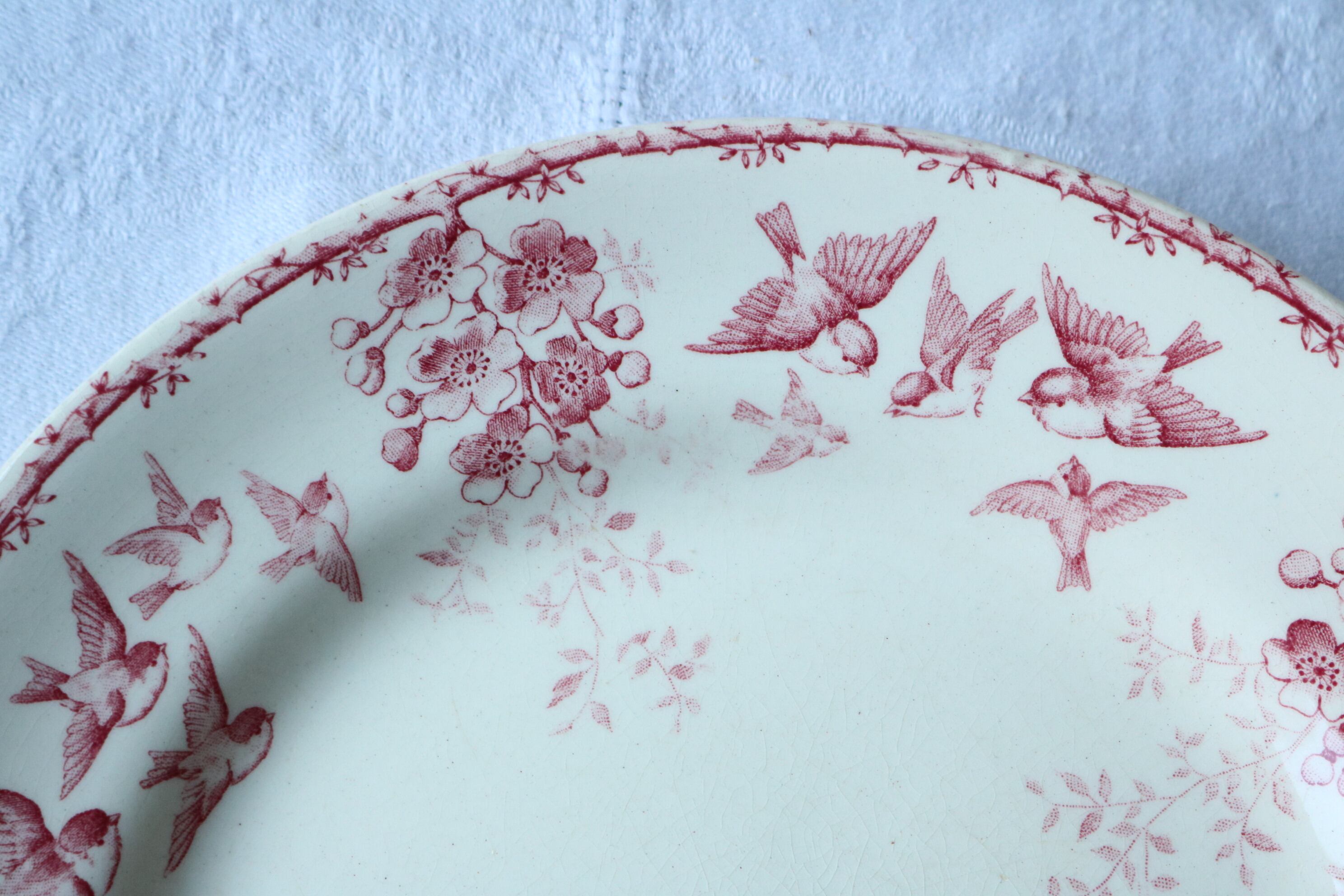 Choisy le roi プレートB 赤 ピンク フランス アンティーク 小鳥