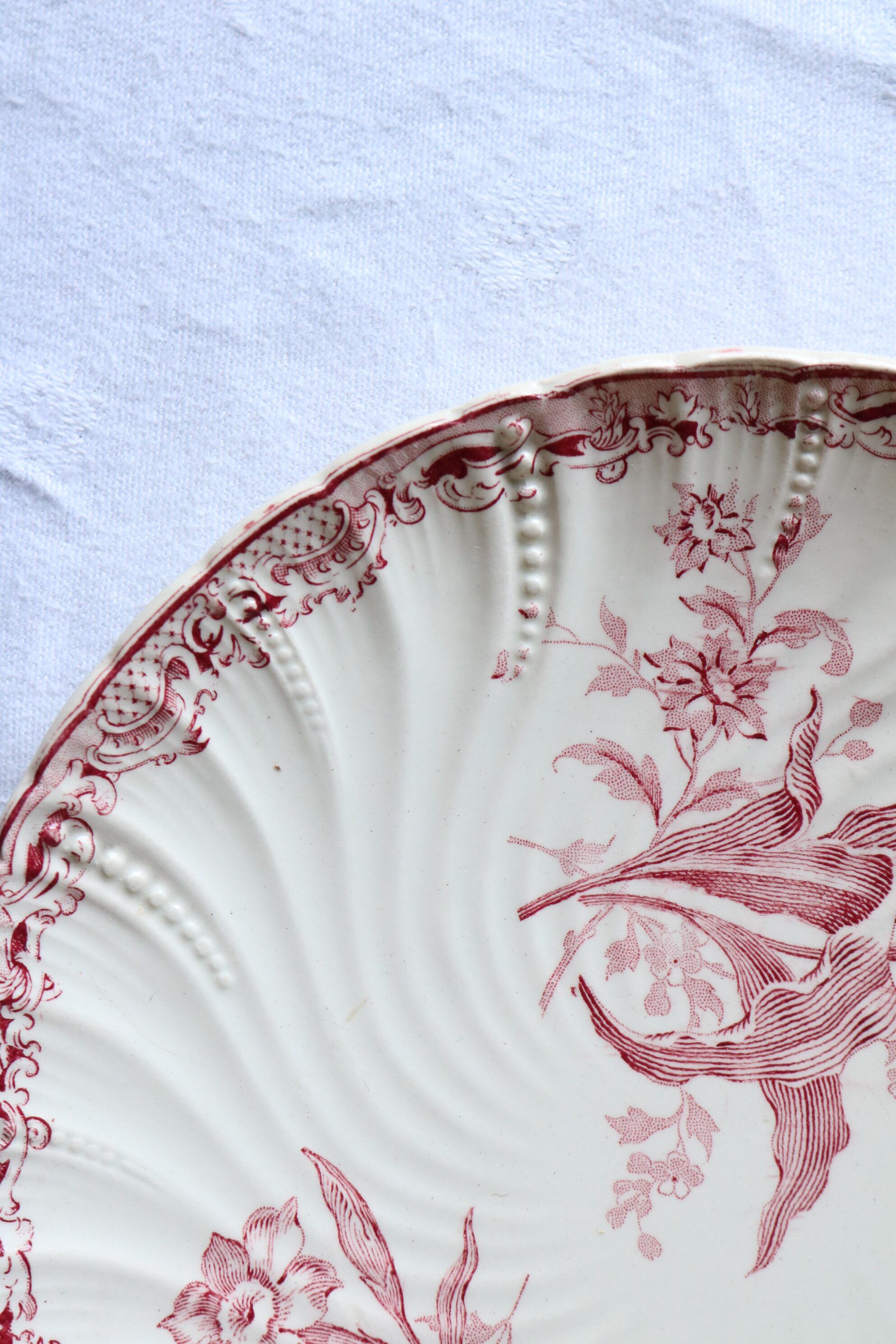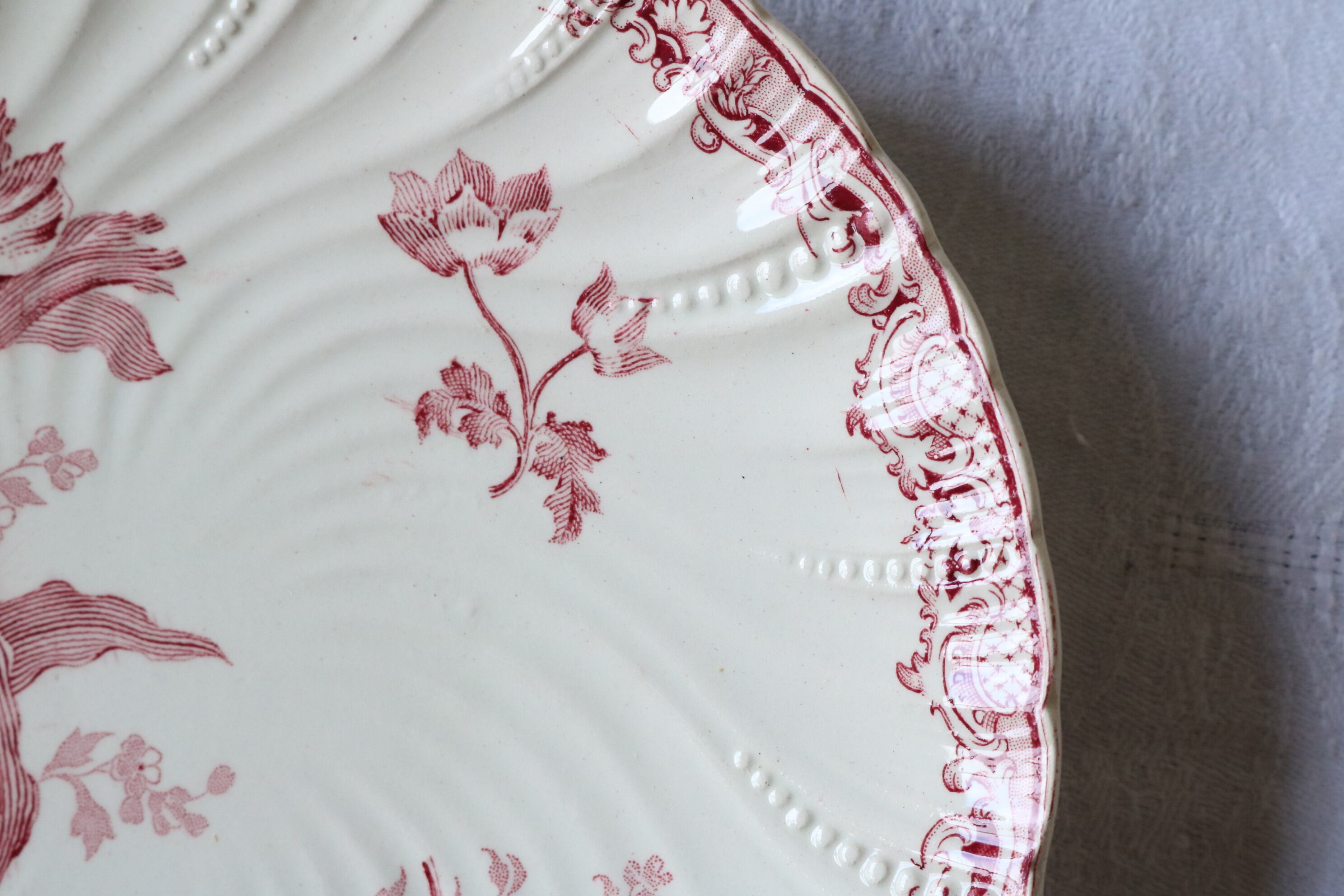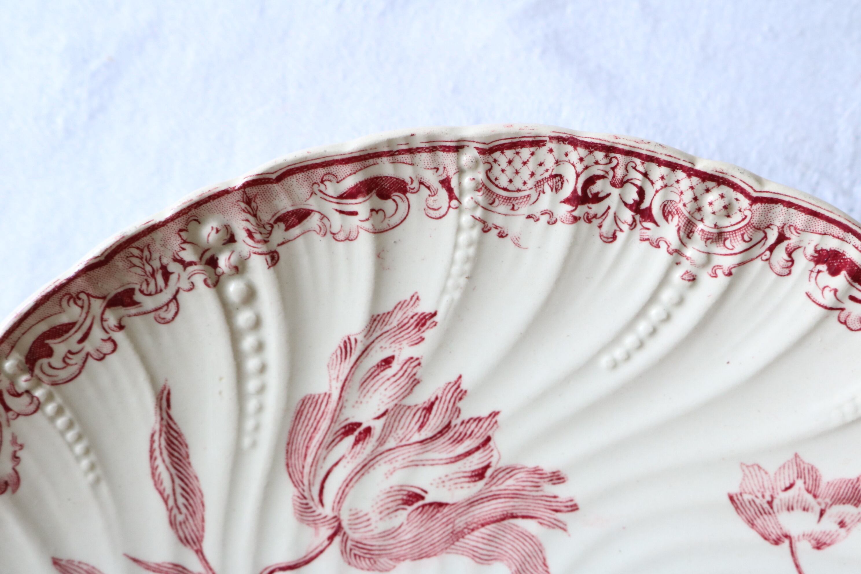 Sarreguemines レリーフ A デザート プレート fontanges チューリップ 赤 ピンク フランス アンティーク 小鳥