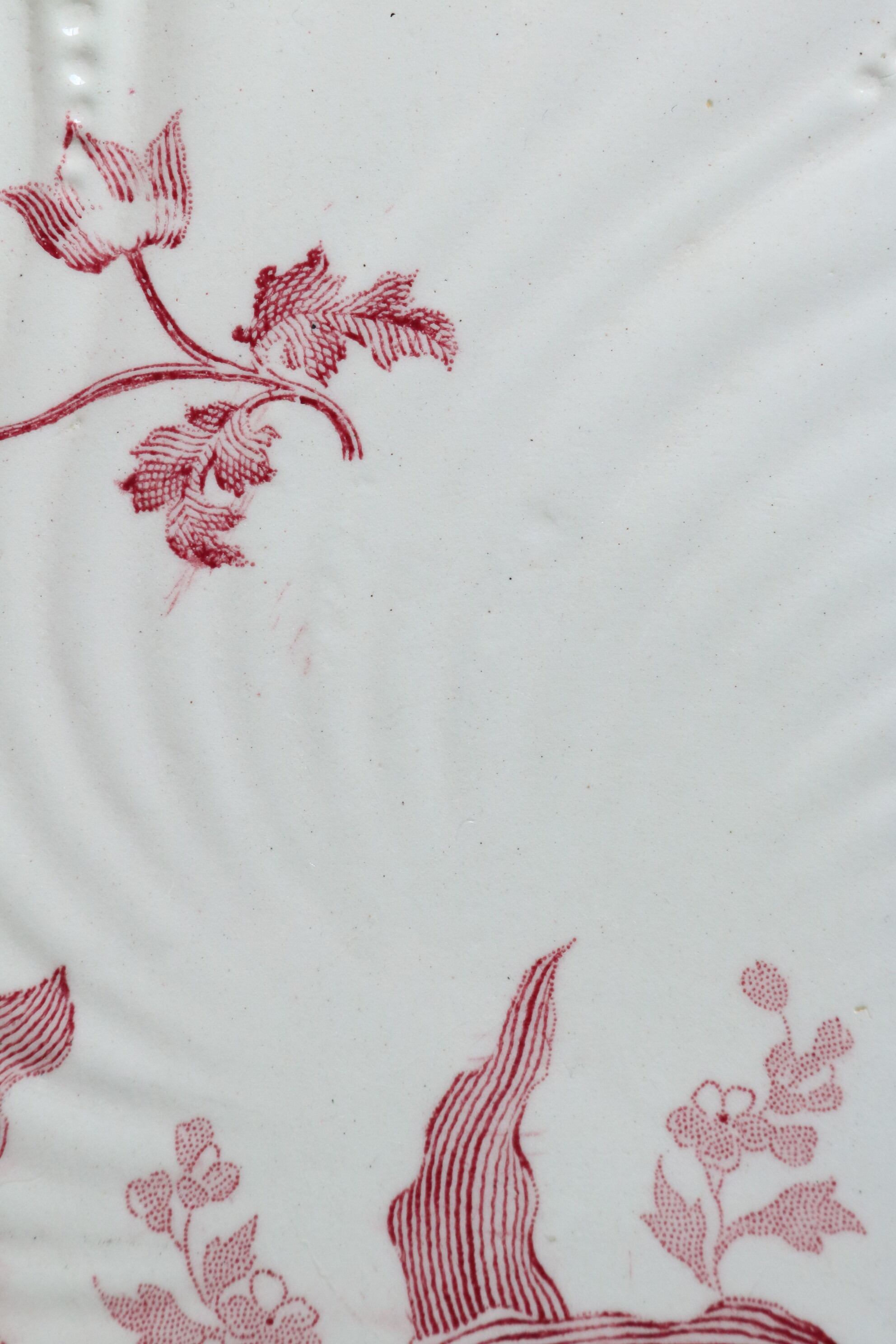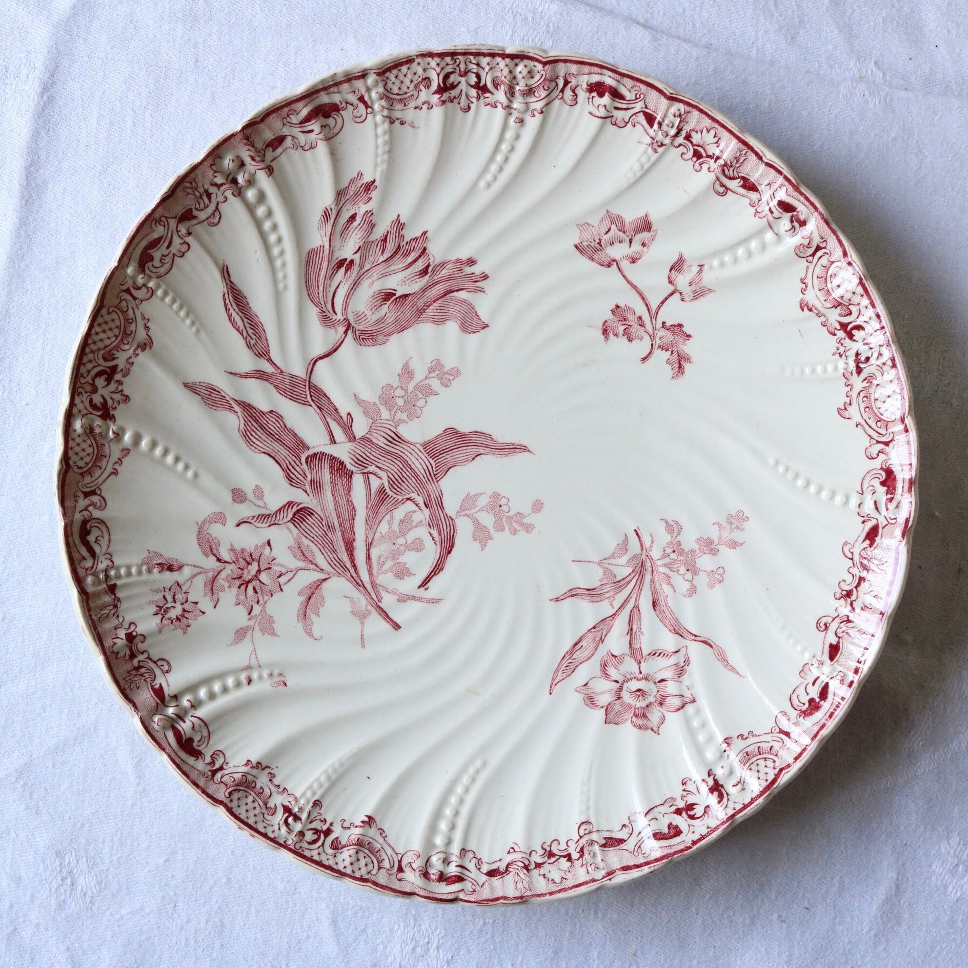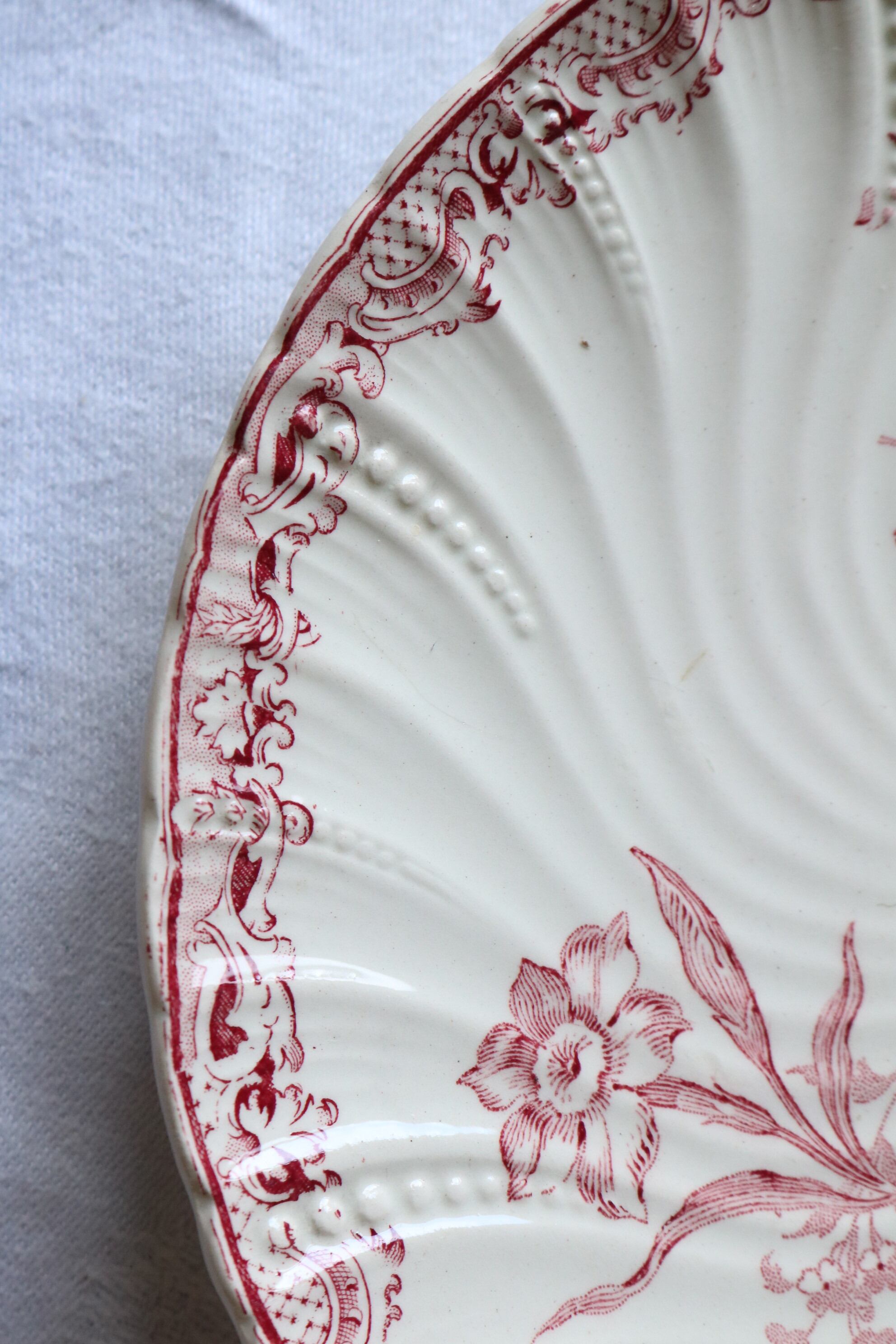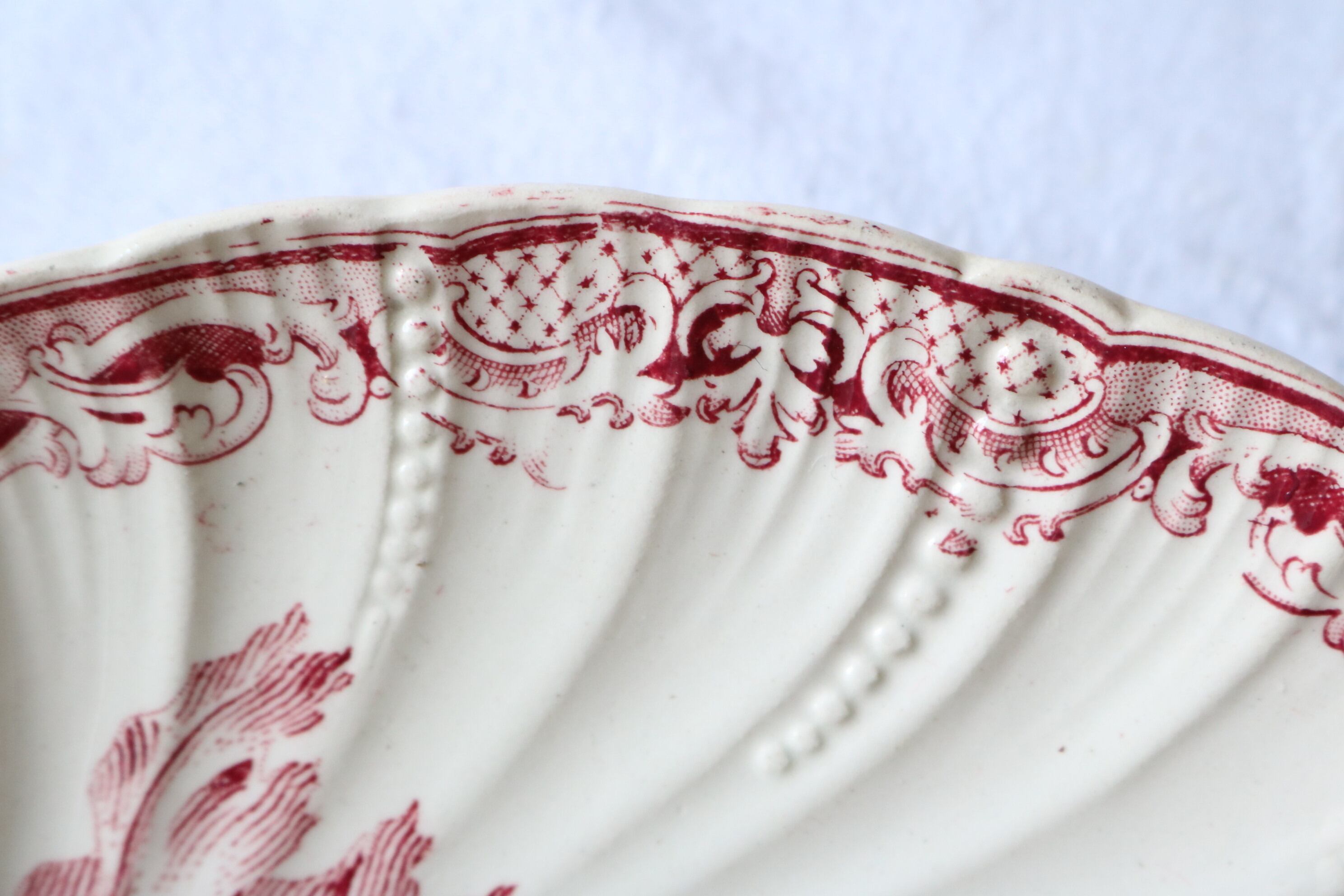 Sarreguemines レリーフ A デザート プレート fontanges チューリップ 赤 ピンク フランス アンティーク 小鳥