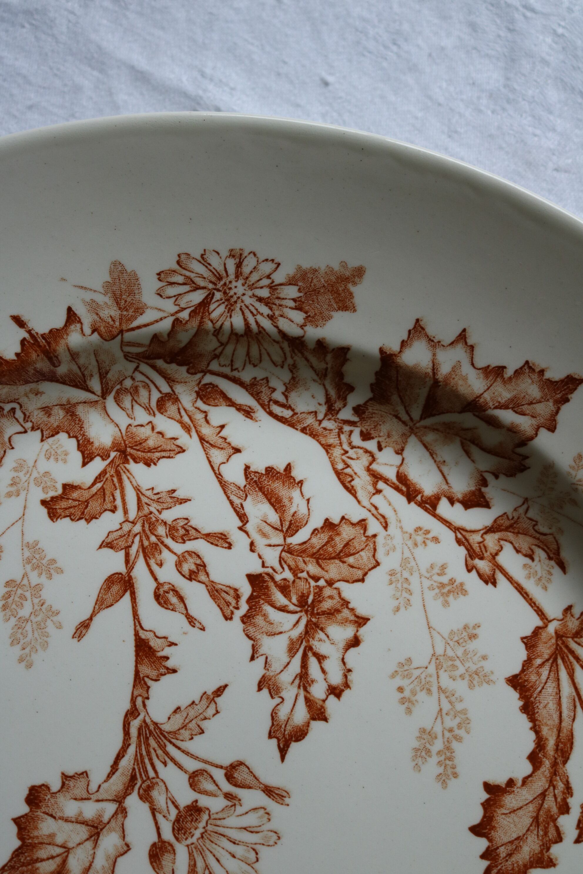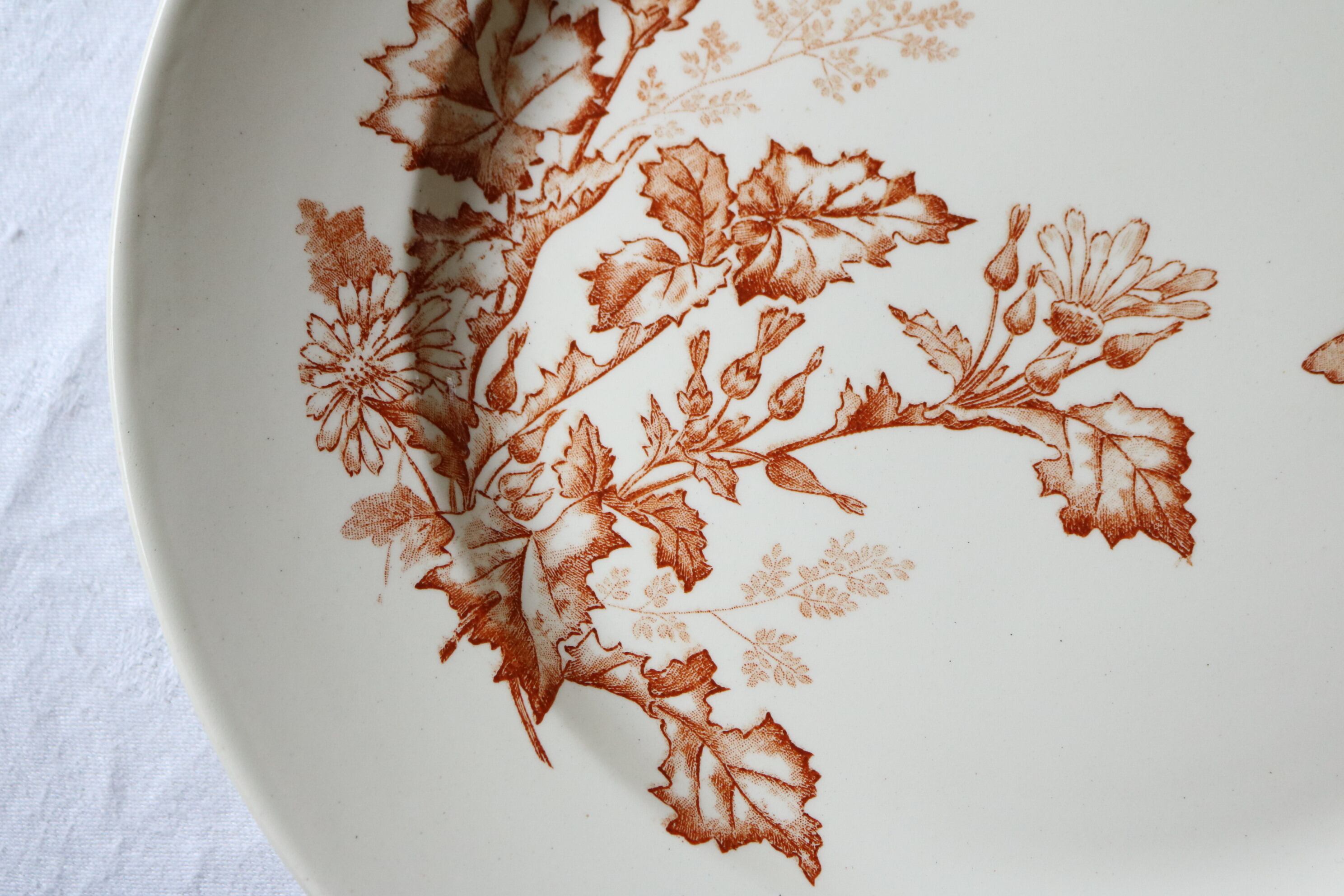 【大皿】Longwy ブラウン フランス アンティーク タンポポ ボタニカル