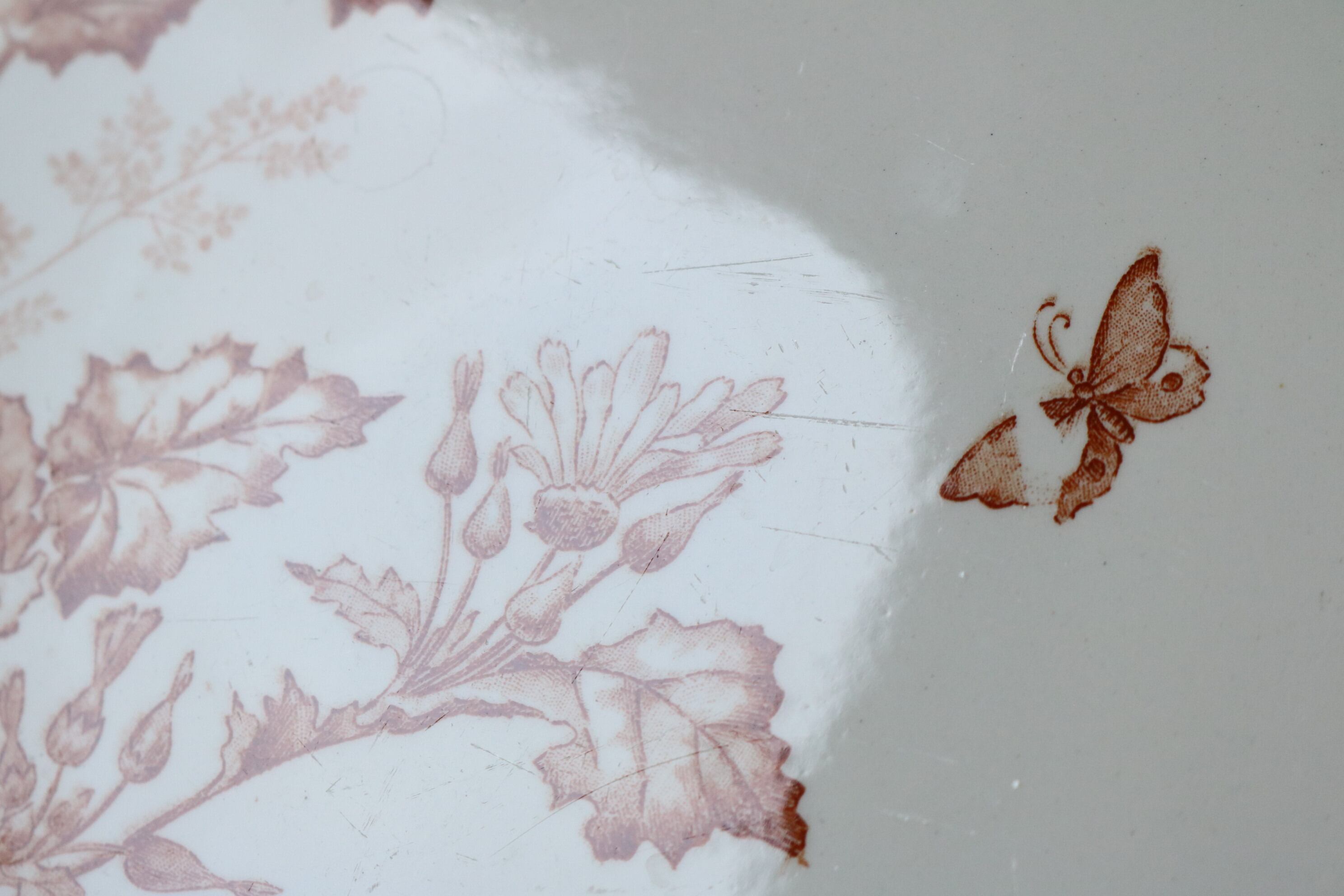 貫入、カトラリー跡、小傷、絵柄の飛びや滲み