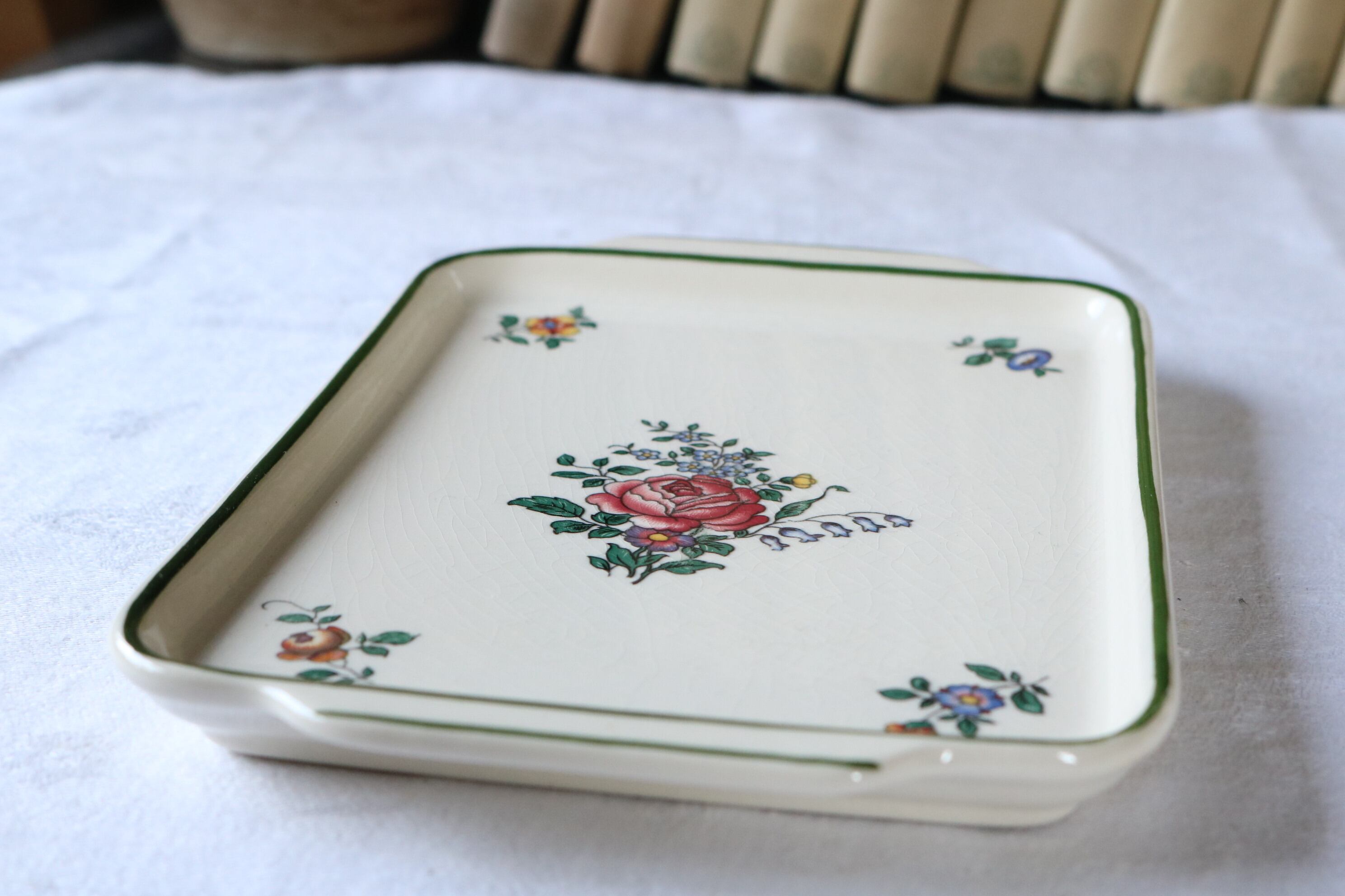 フランス ドイツ ヴィンテージ 薔薇 小さめ 四角い プレート