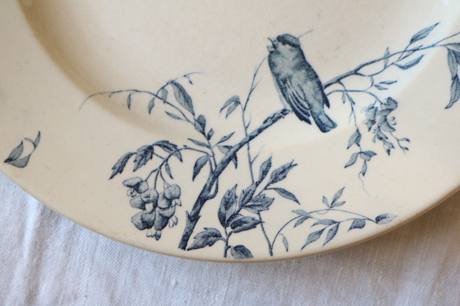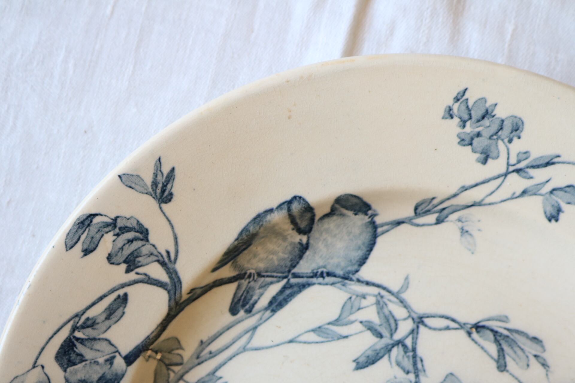 Choisy le roi 小鳥 藍色 プレート フランス アンティーク