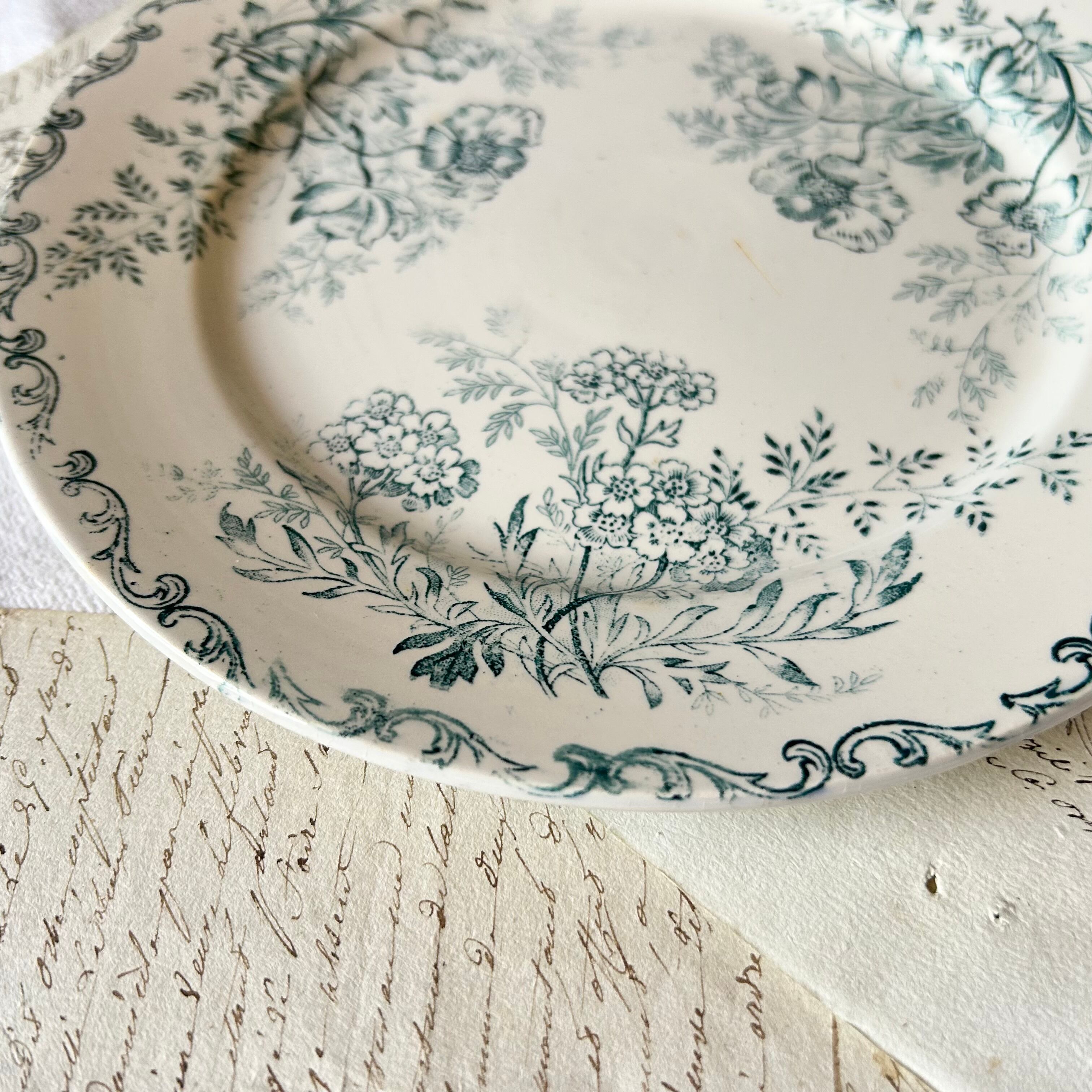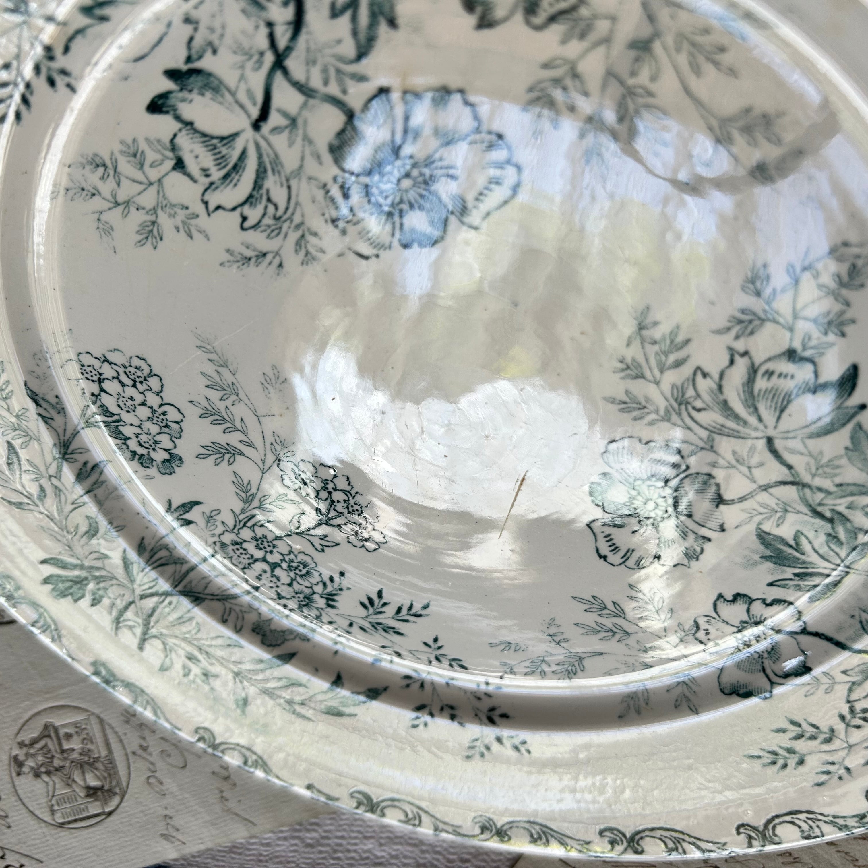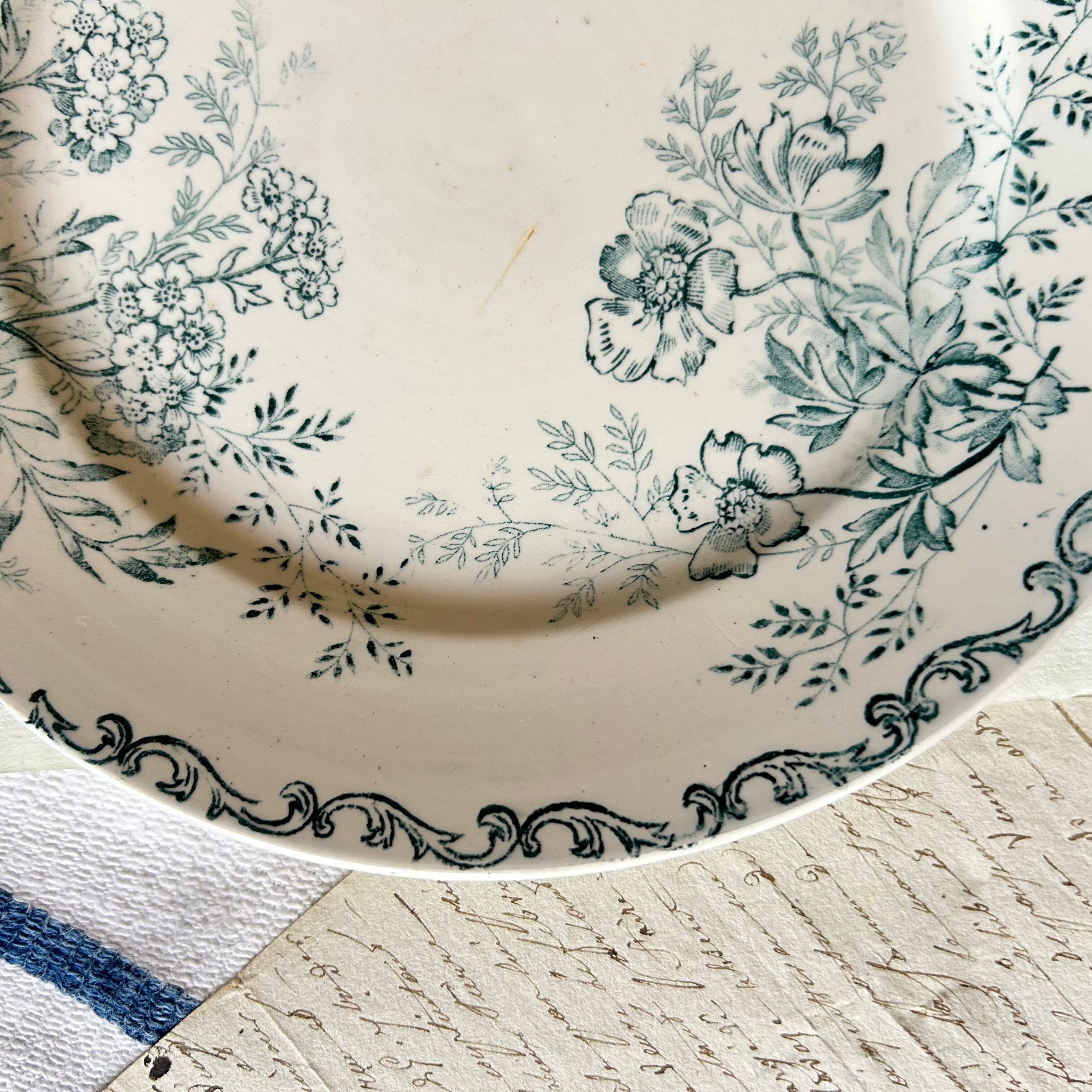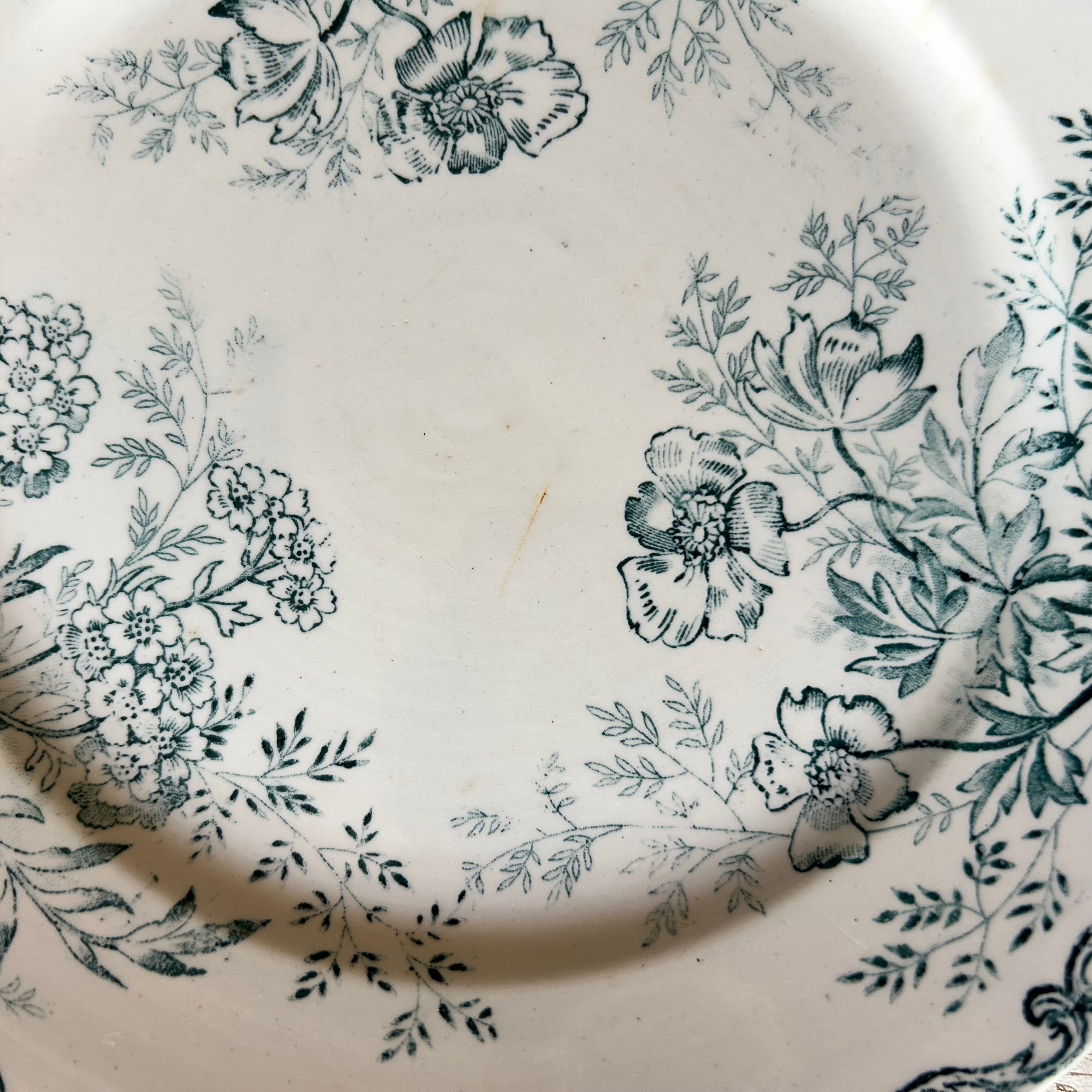 Sarreguemines ボタニカル ブルーグリーン フランス アンティーク プレート