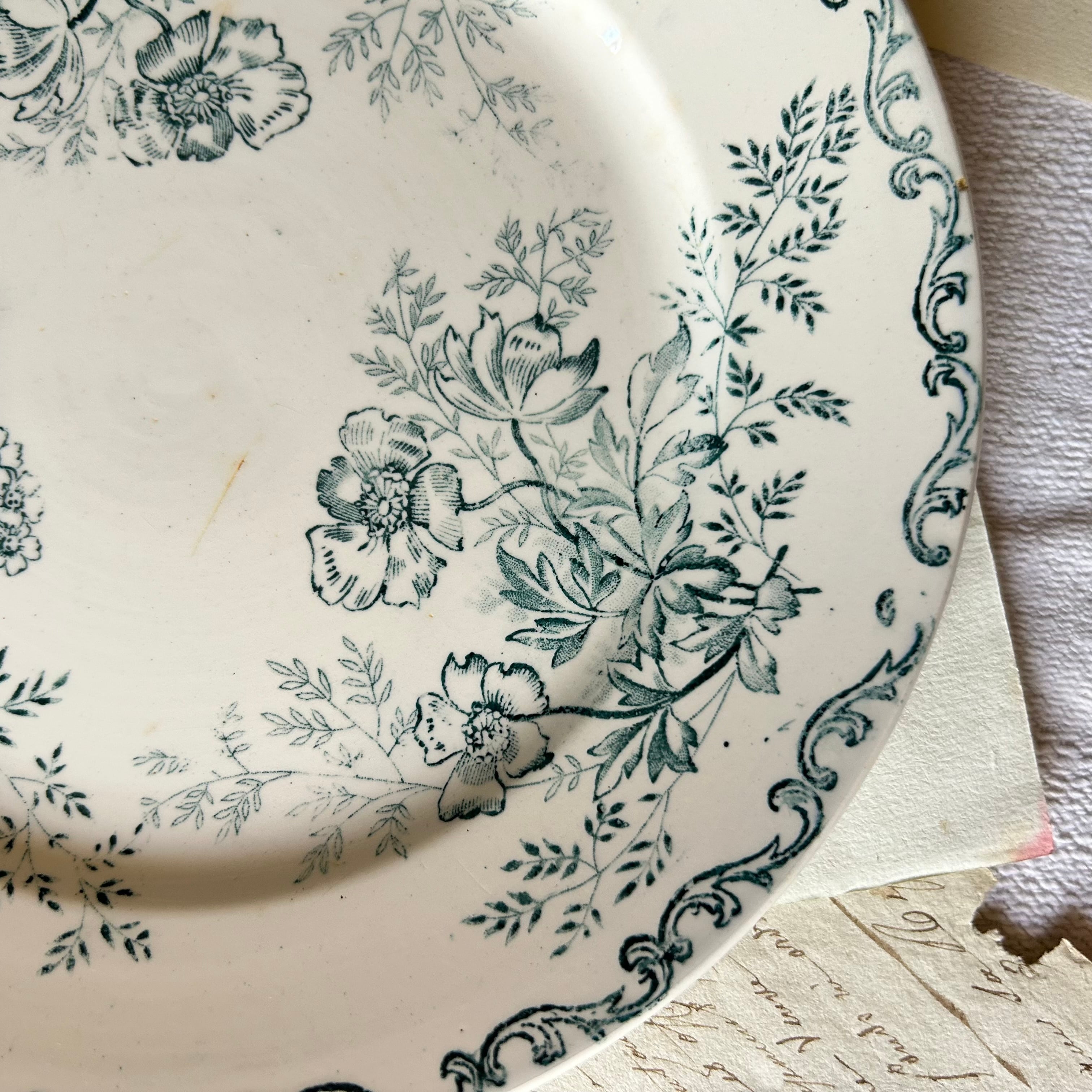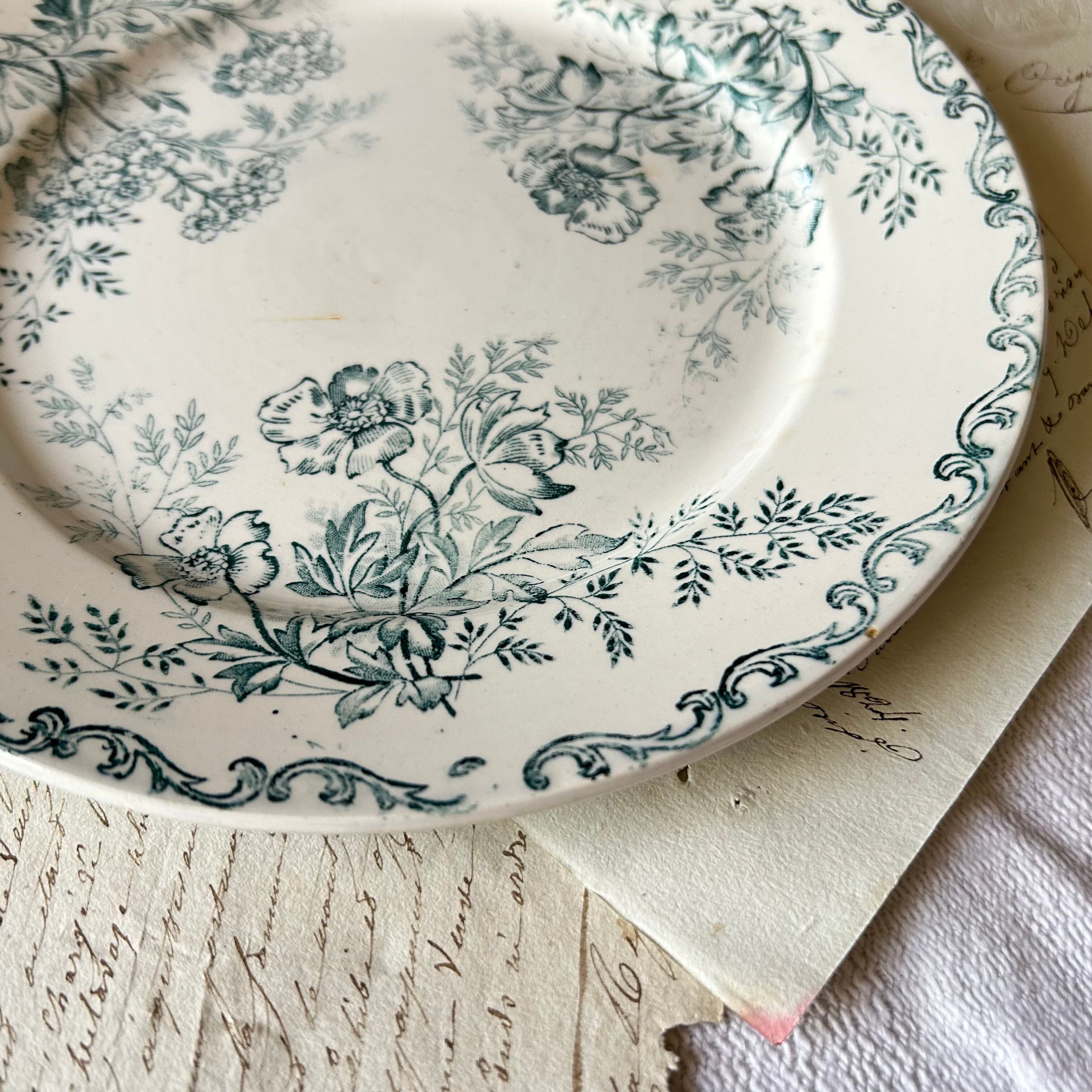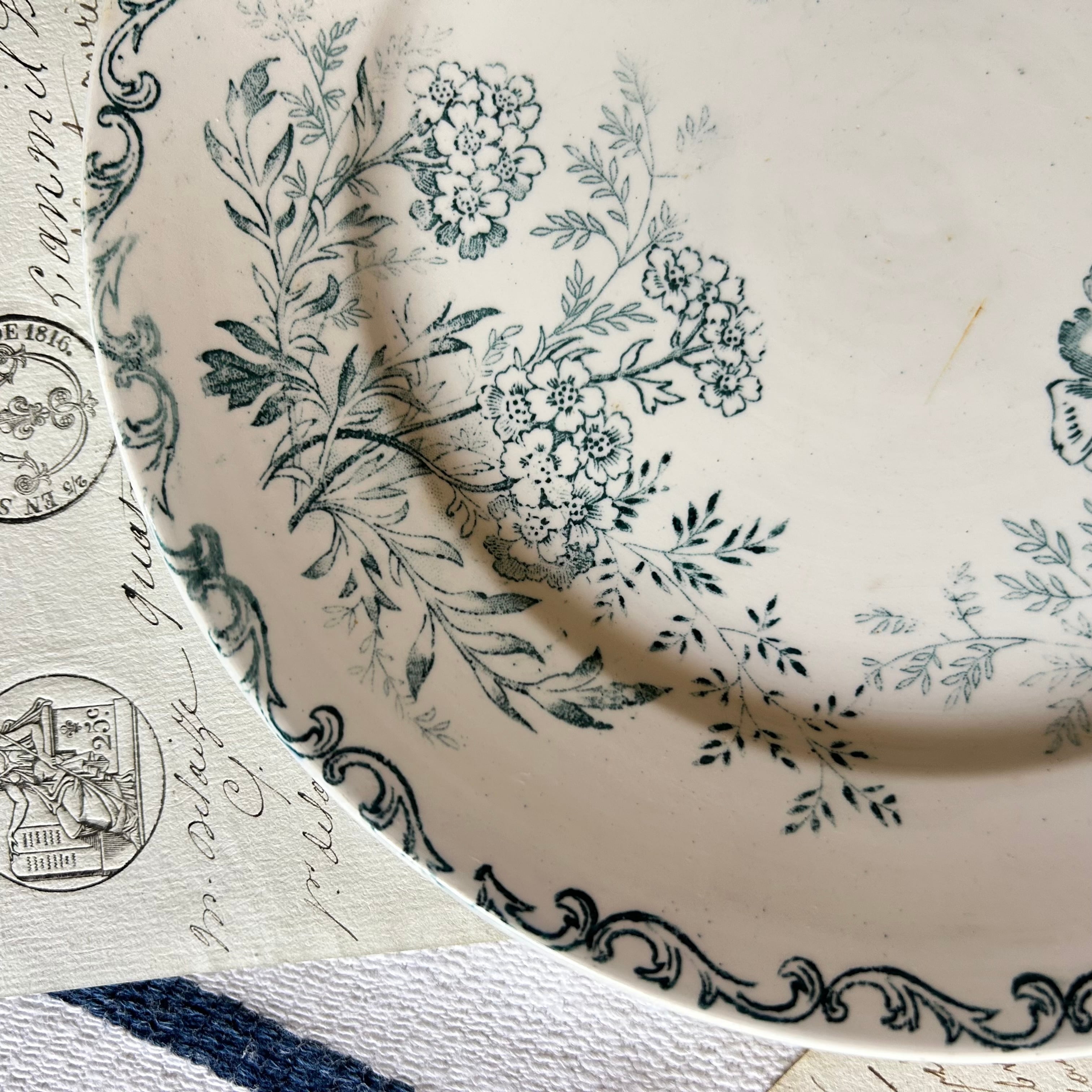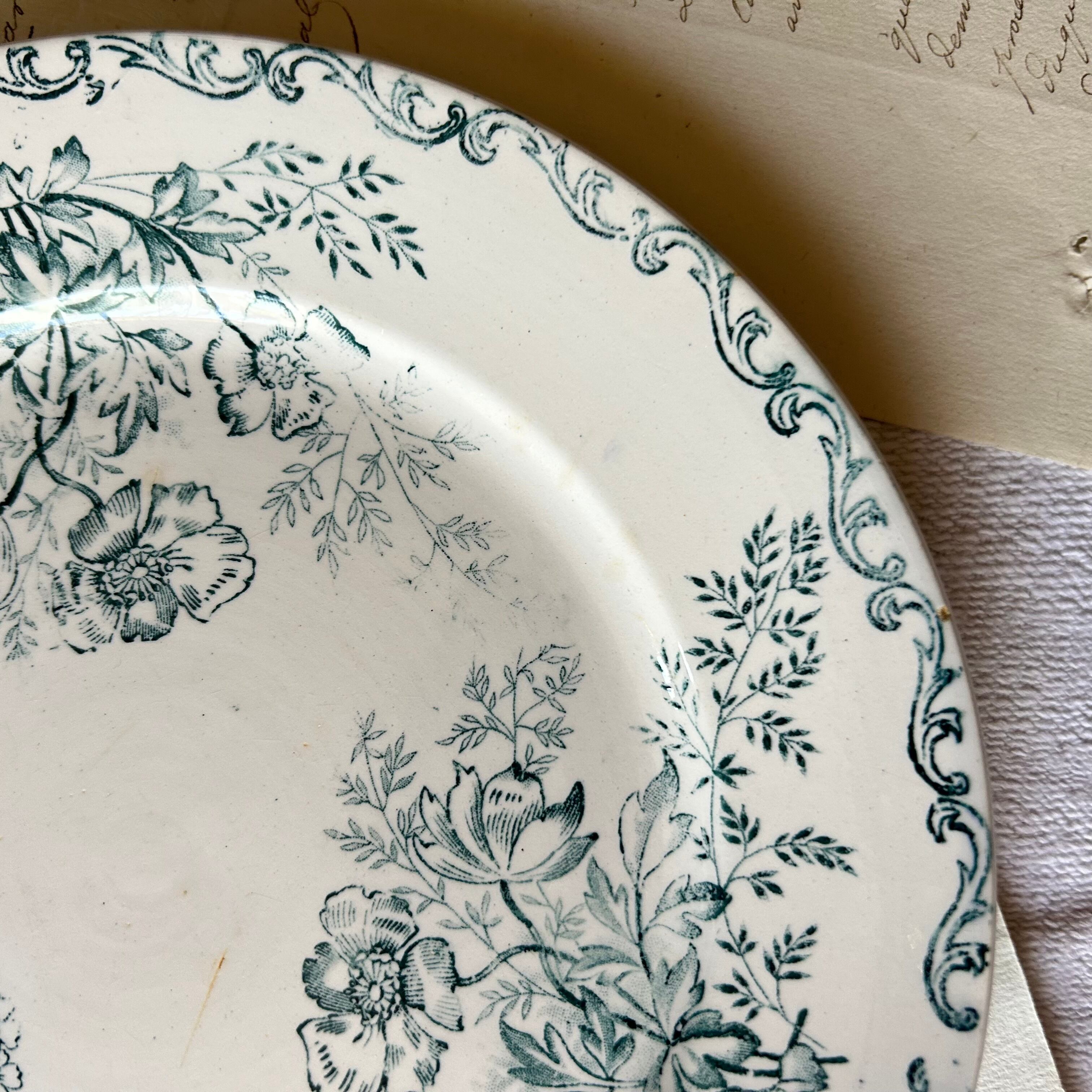 Sarreguemines ボタニカル ブルーグリーン フランス アンティーク プレート
