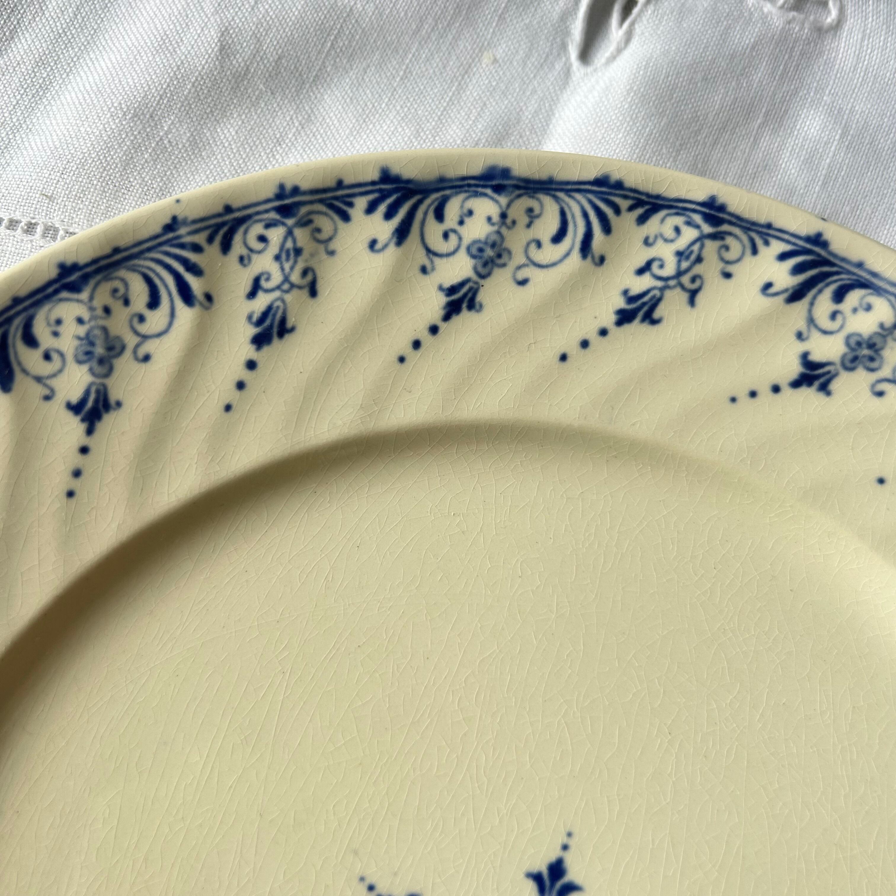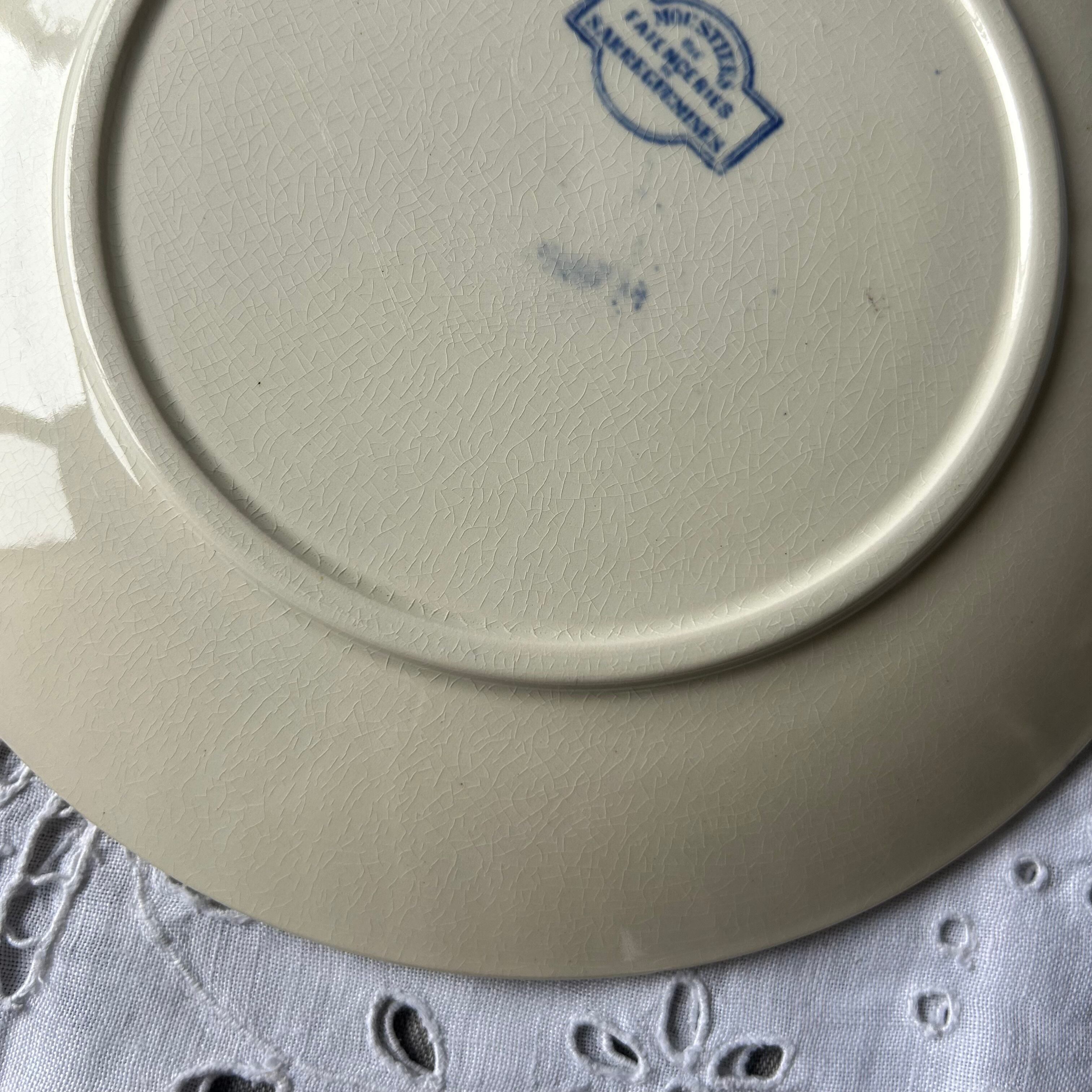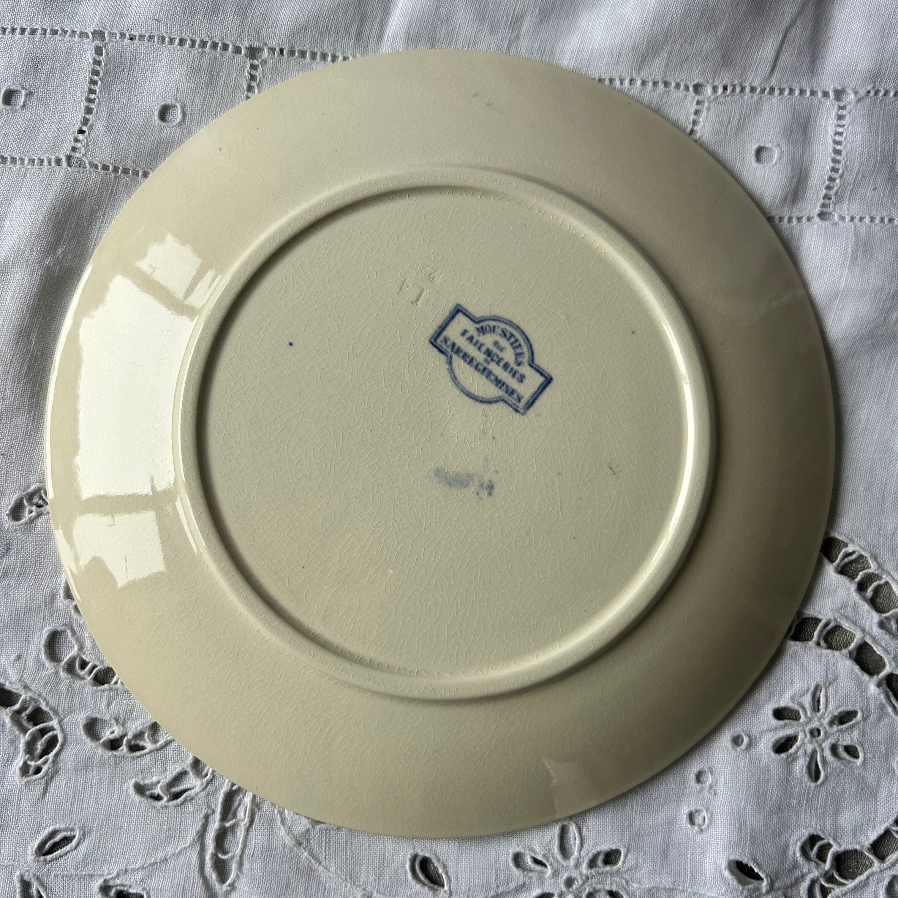 Sarreguemines ムスティエ moustier ブルー プレート フランス アンティーク ボタニカル