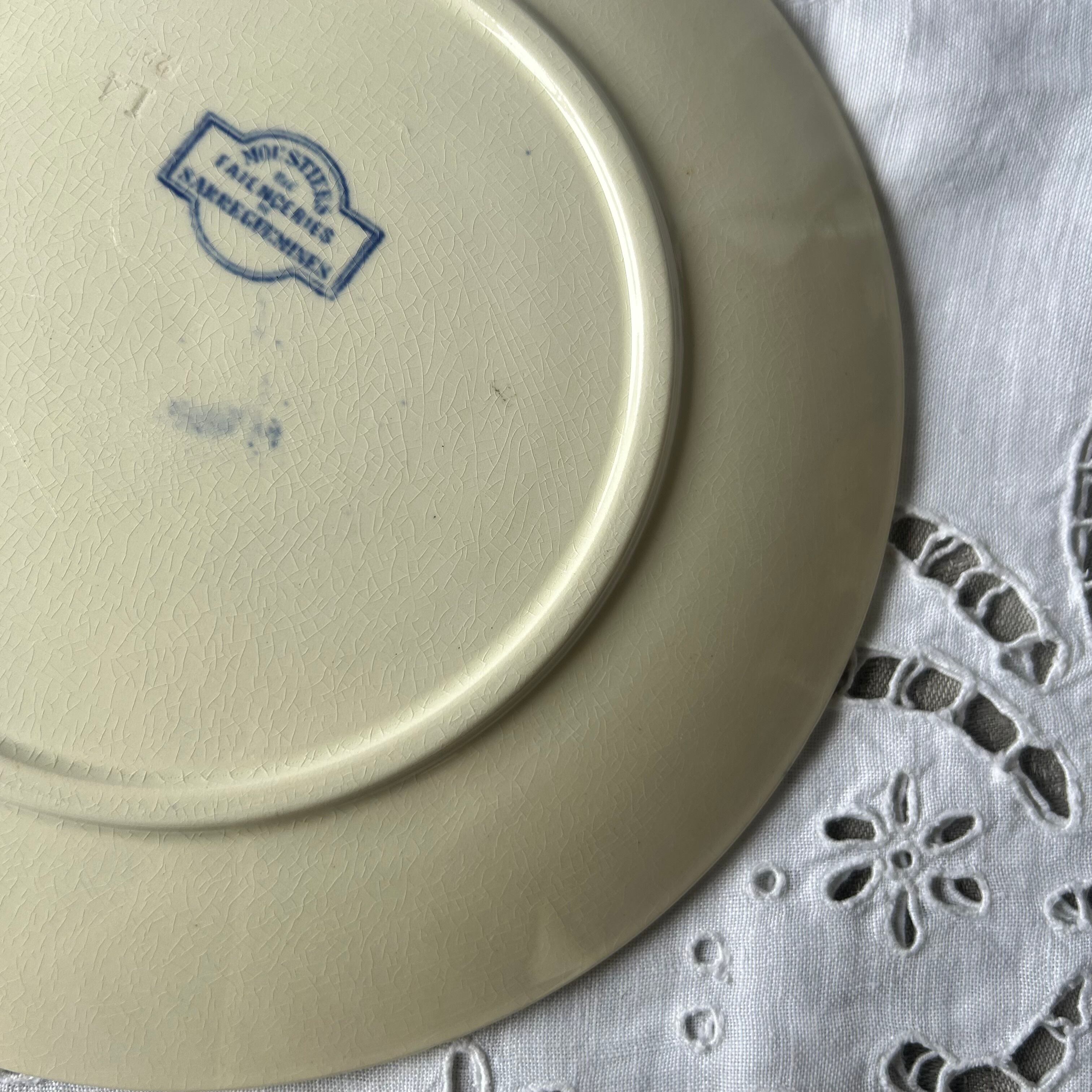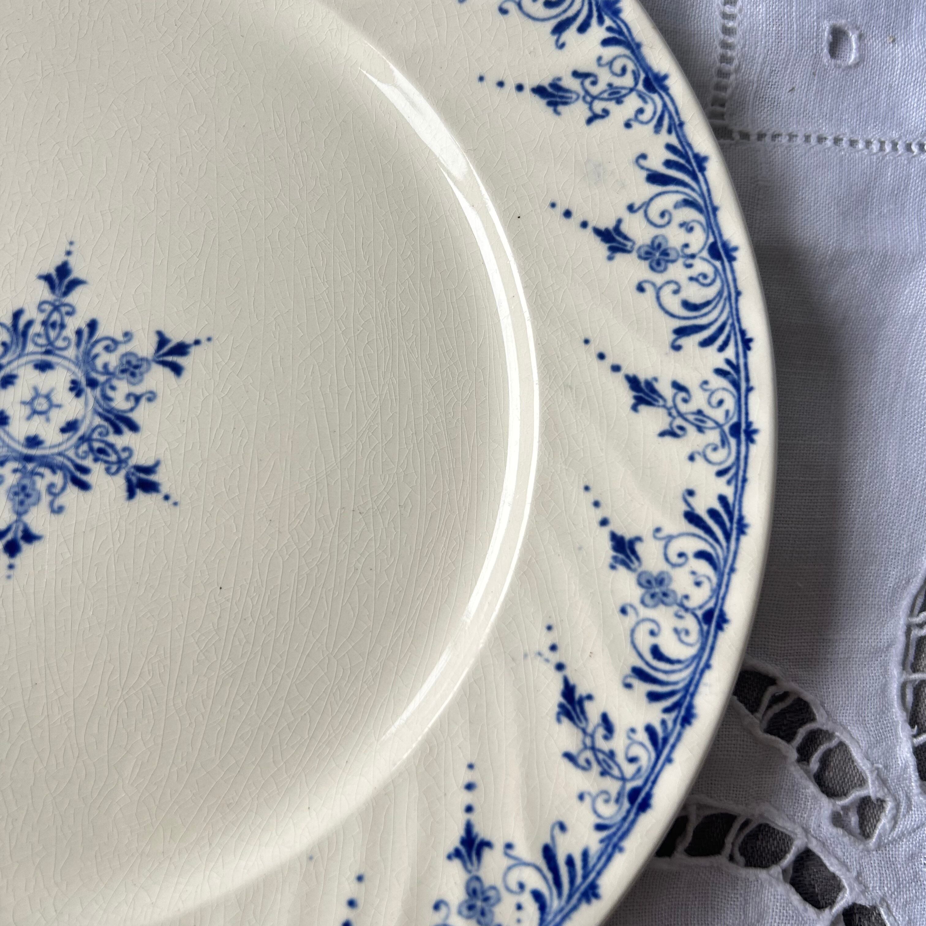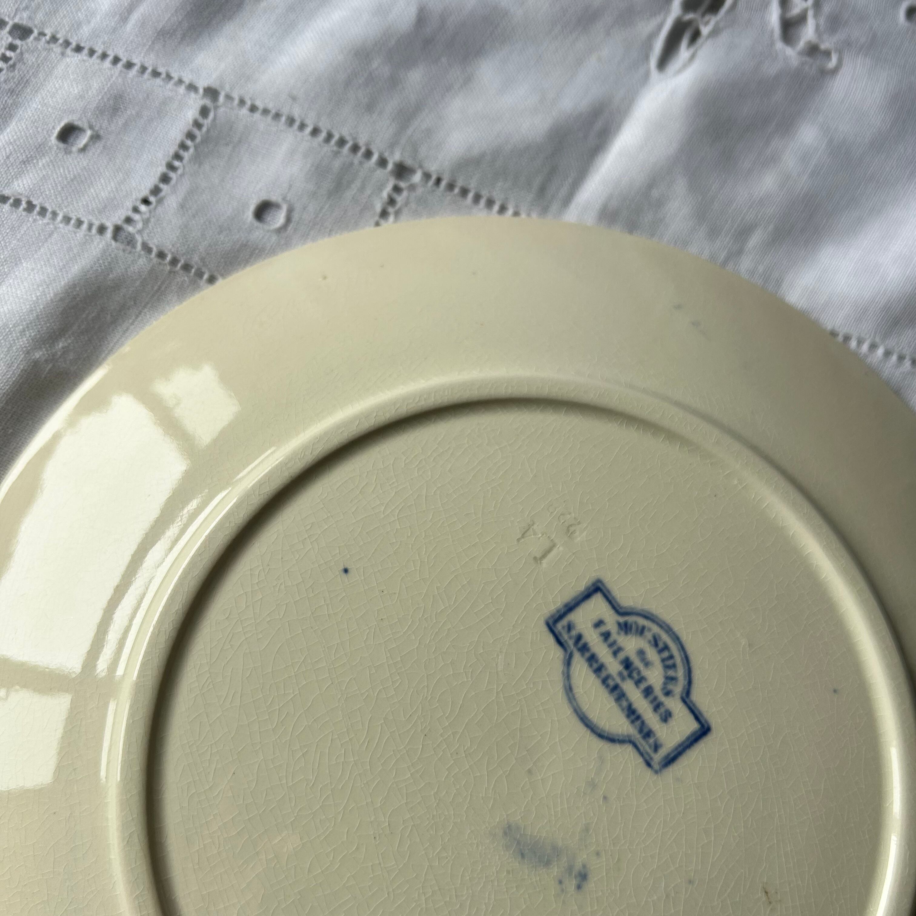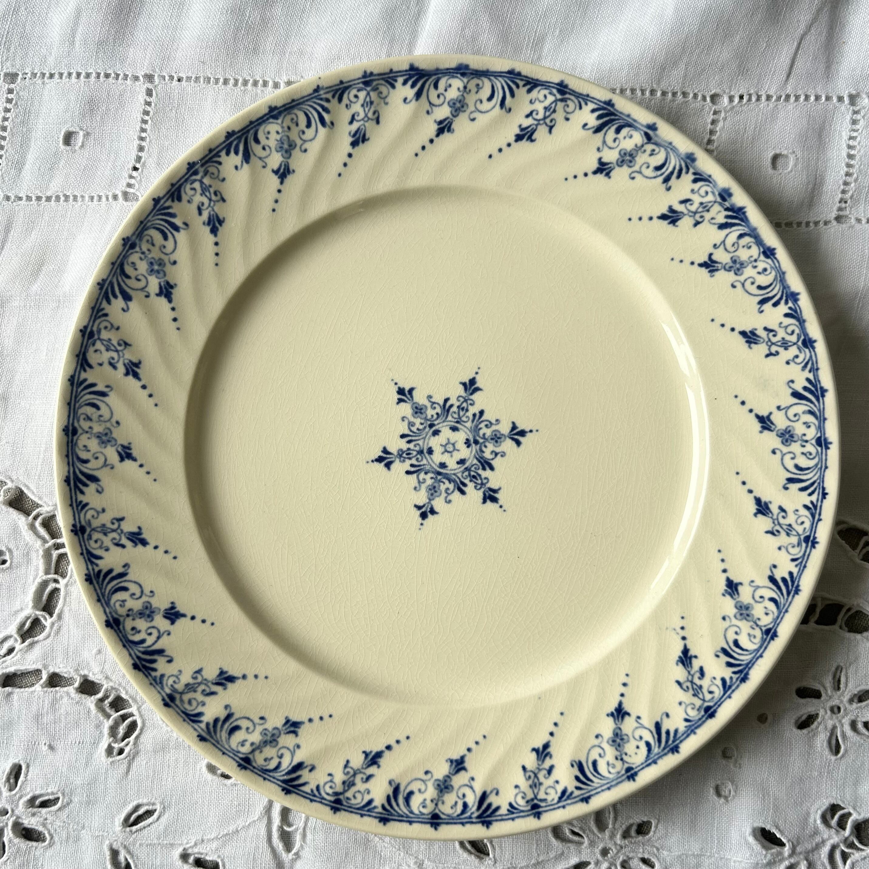 Sarreguemines ムスティエ moustier ブルー プレート フランス アンティーク ボタニカル