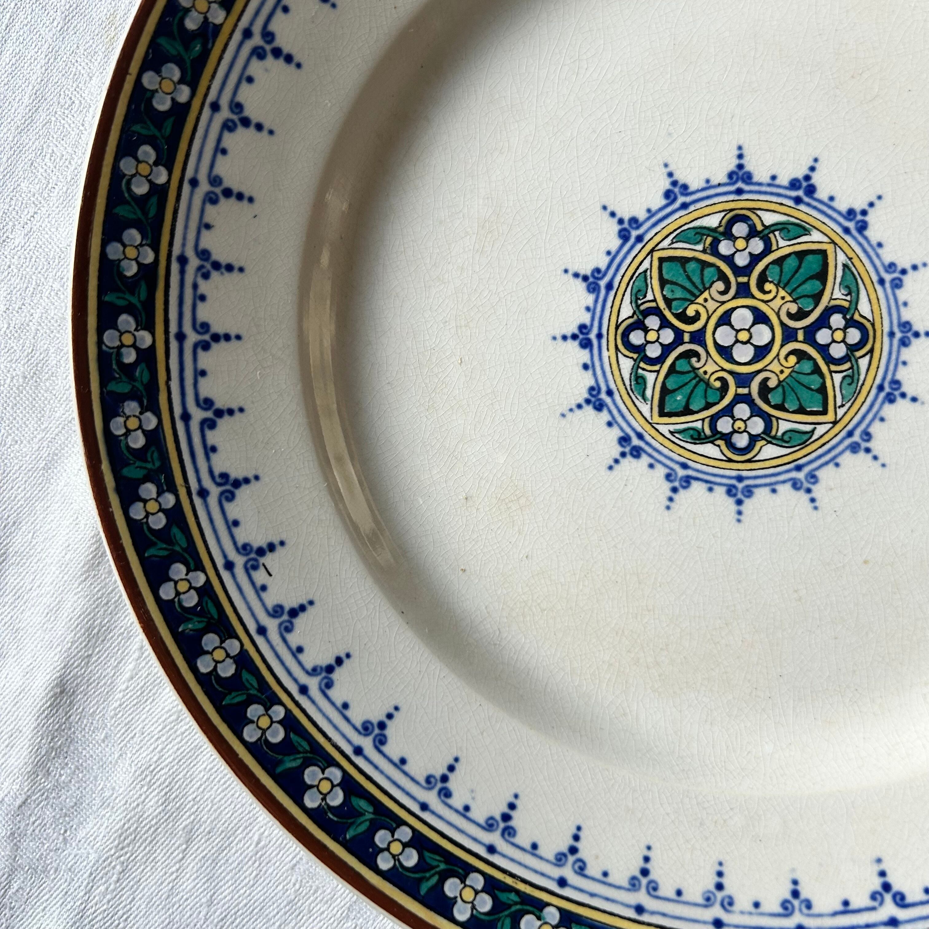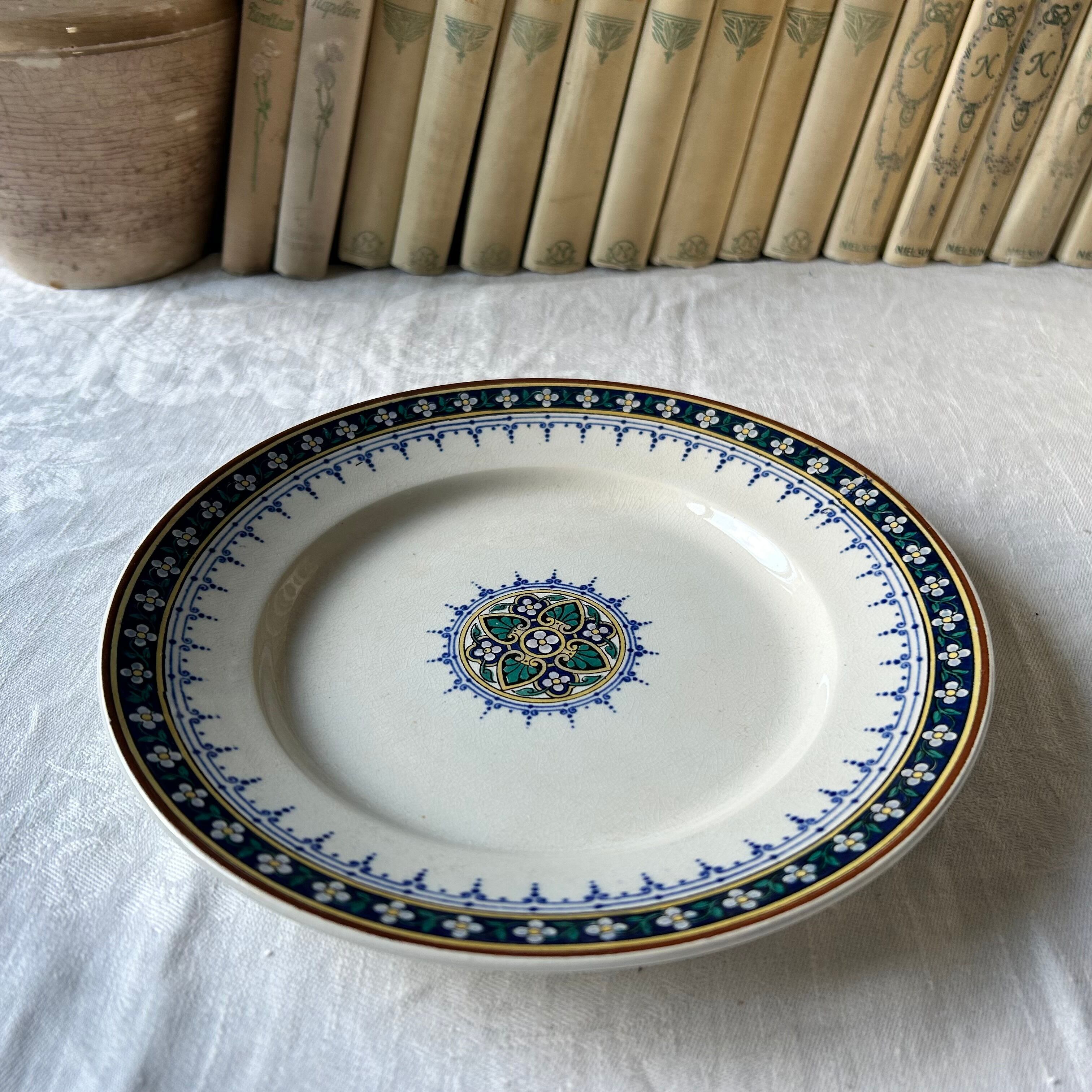 Sarreguemines 勿忘草 オリエンタルな プレート 多色刷り フランス アンティーク ボタニカル