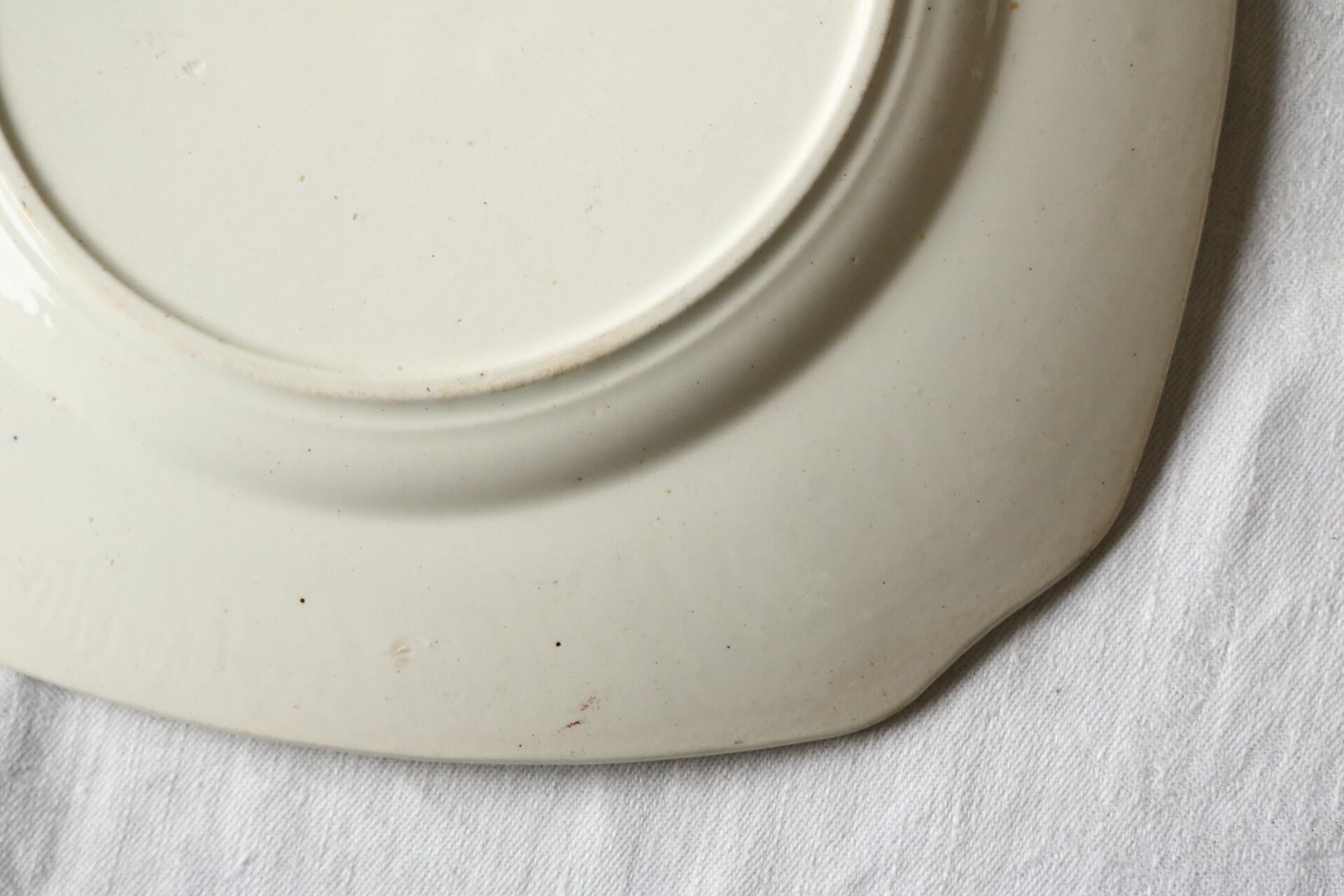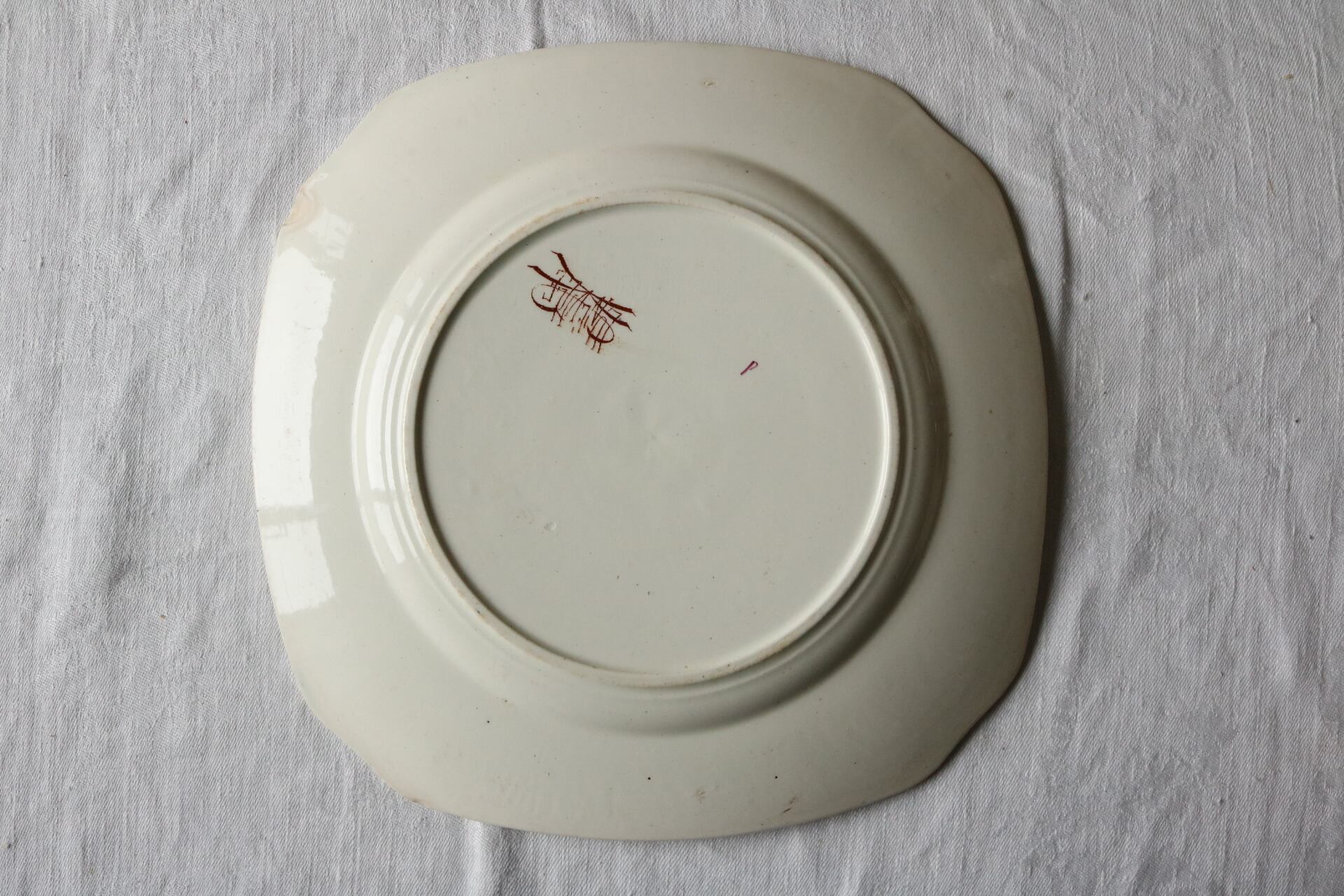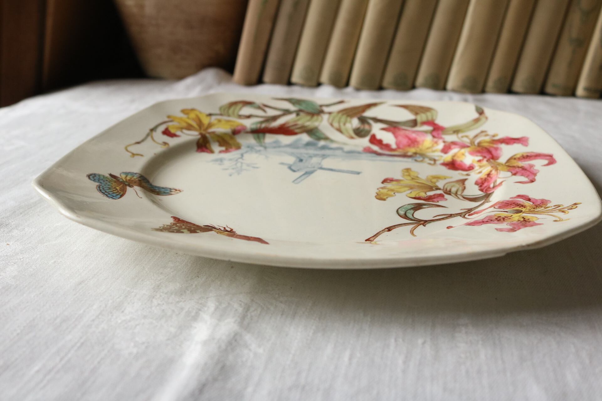 Luneville 多色刷り 欠けあり オクトゴナル 希少 四角いプレート 蝶々 フランス アンティーク プレート