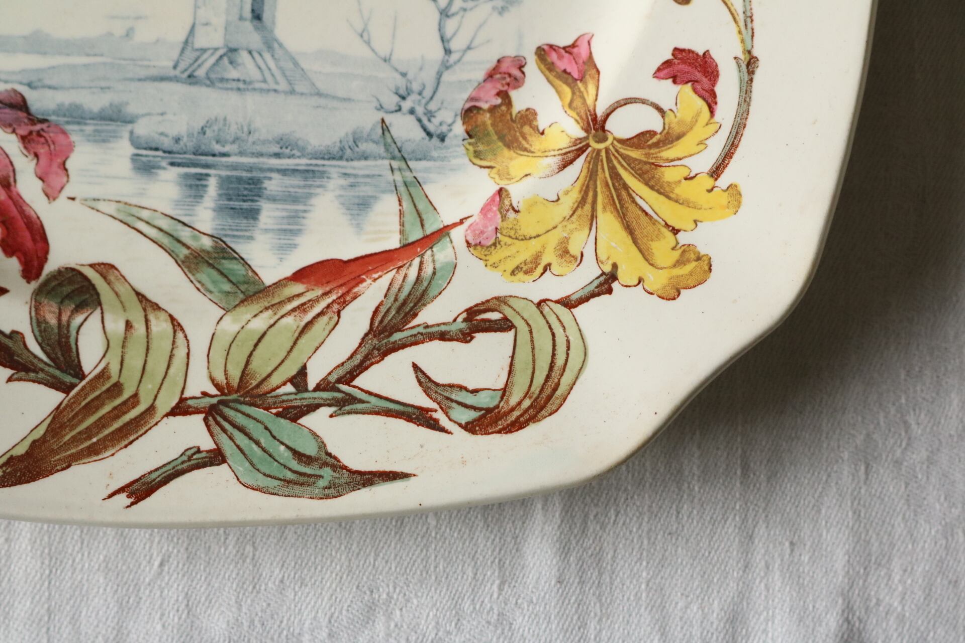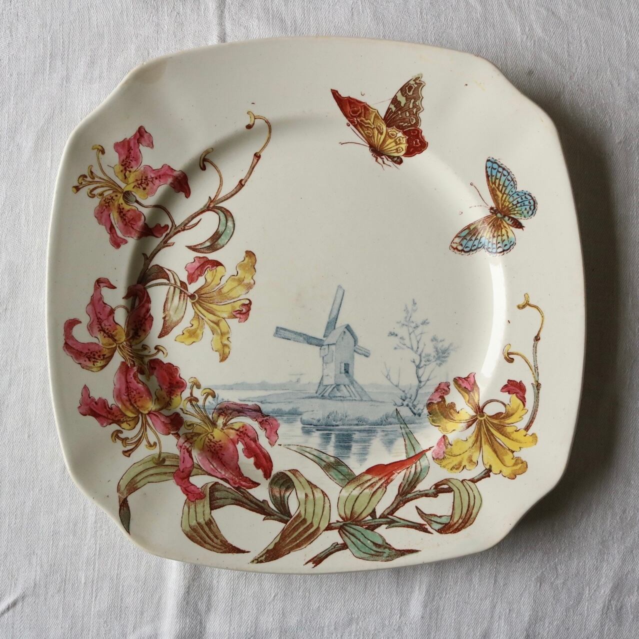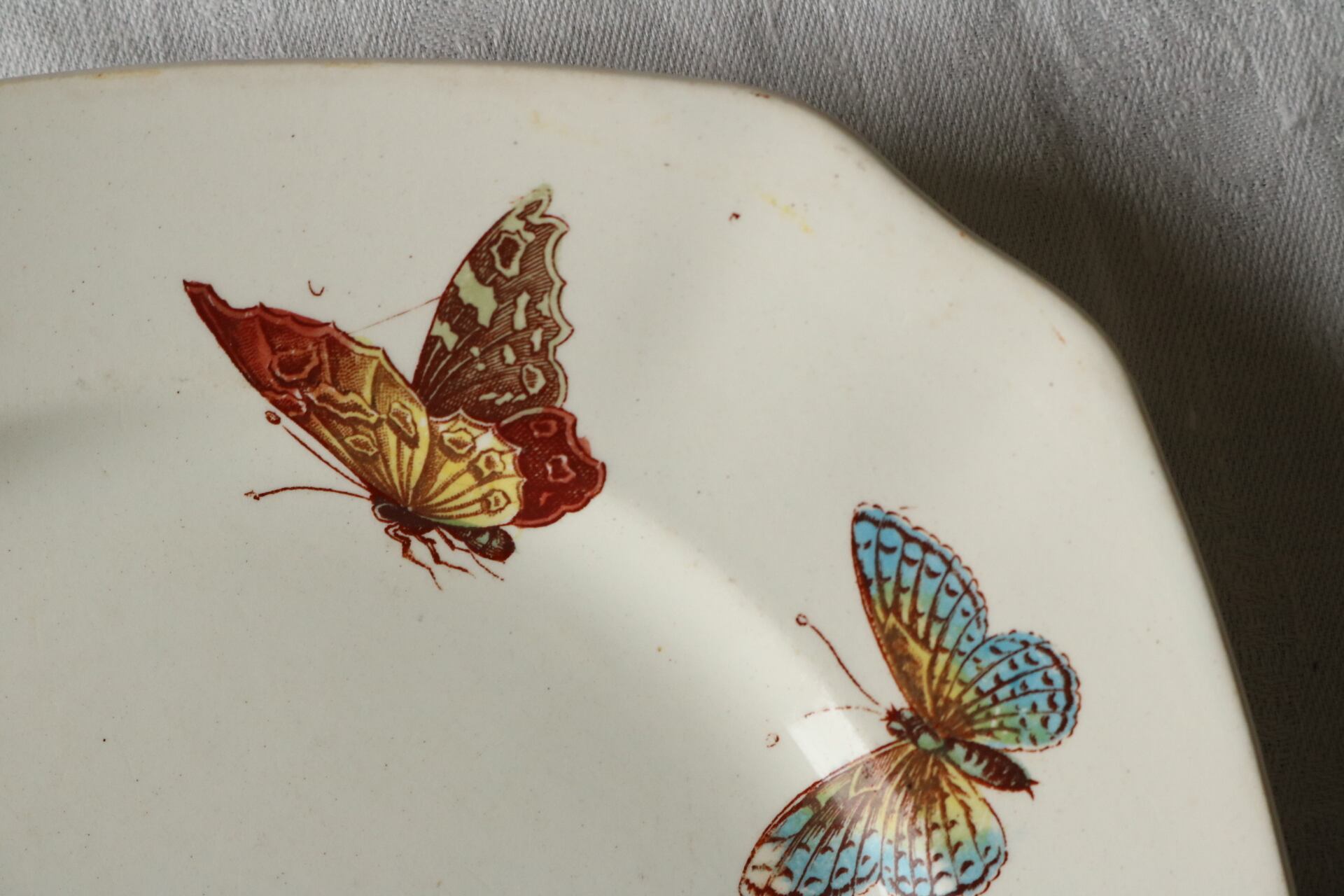 Luneville 多色刷り 欠けあり オクトゴナル 希少 四角いプレート 蝶々 フランス アンティーク プレート