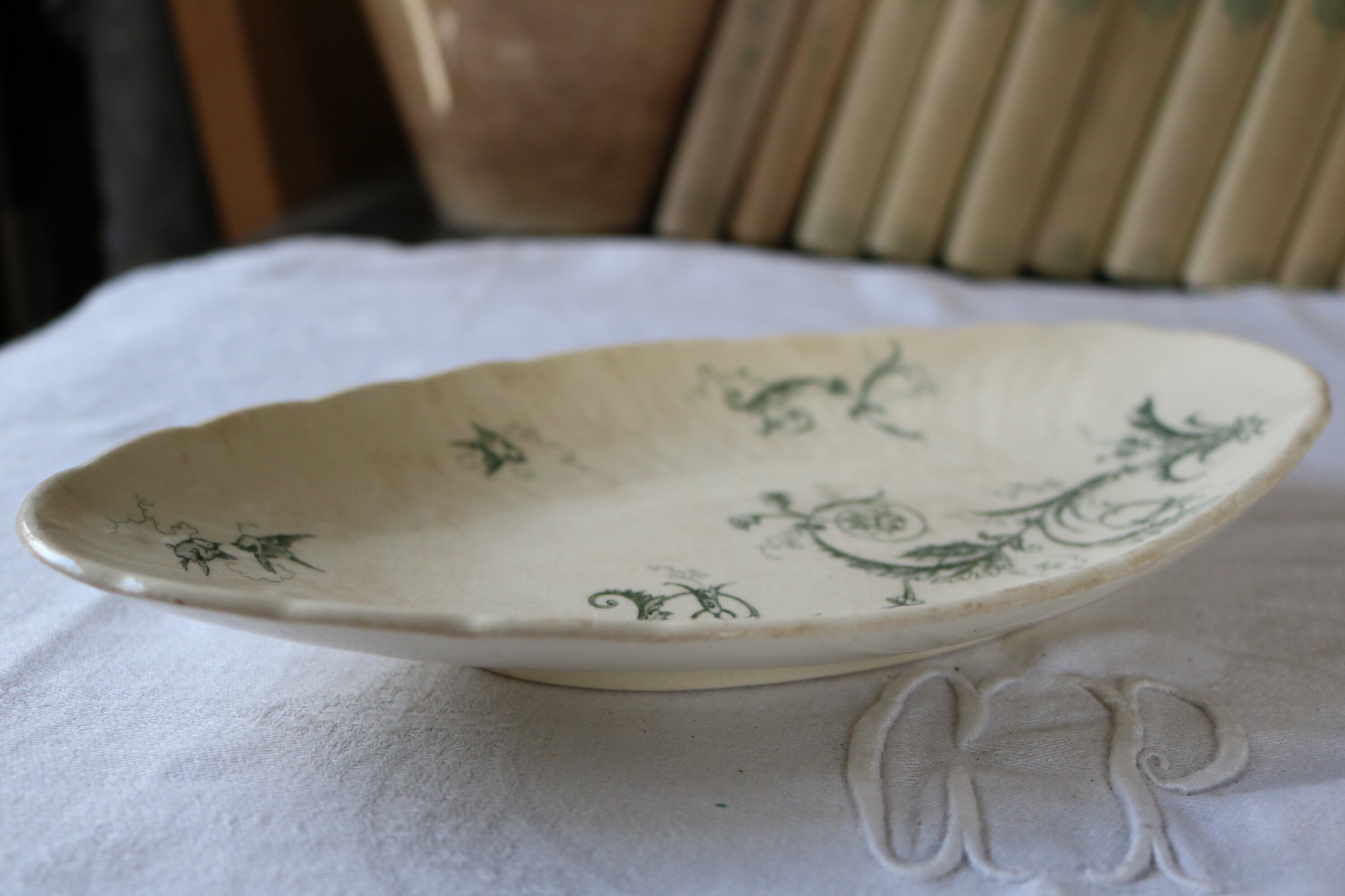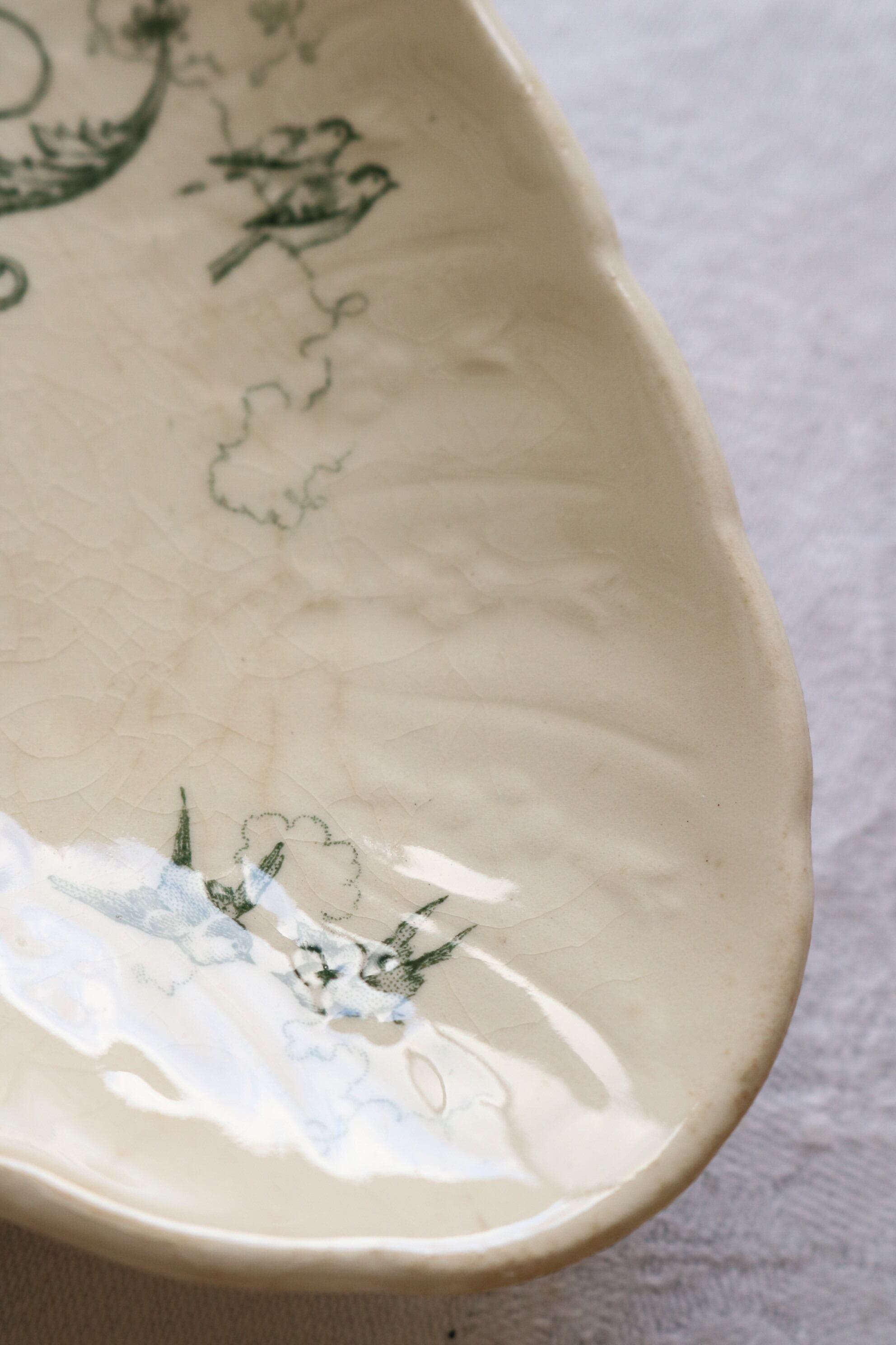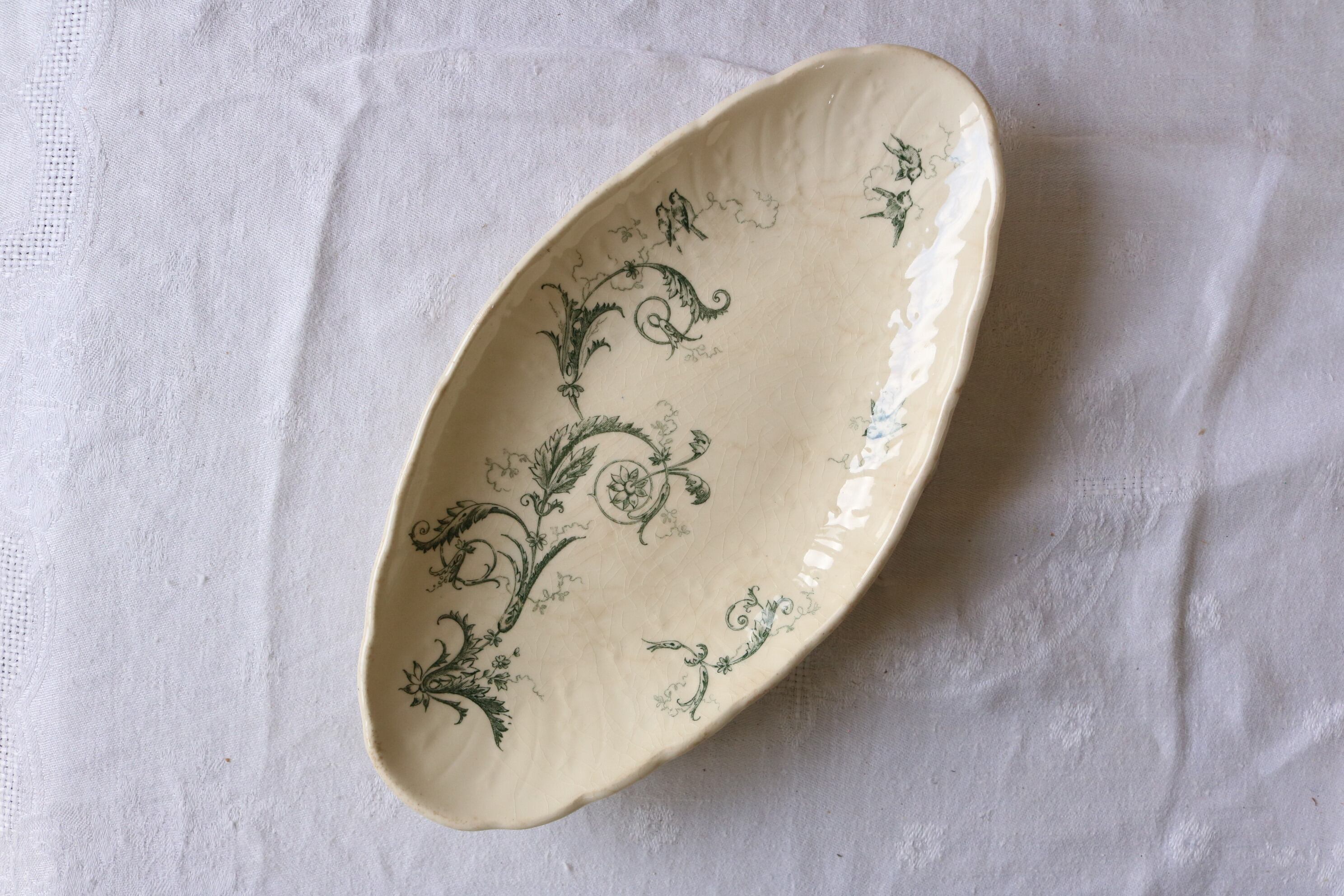 Gien 小鳥 ボタニカル レリーフ グリーン 枯れた雰囲気 ラヴィエ フランス アンティーク