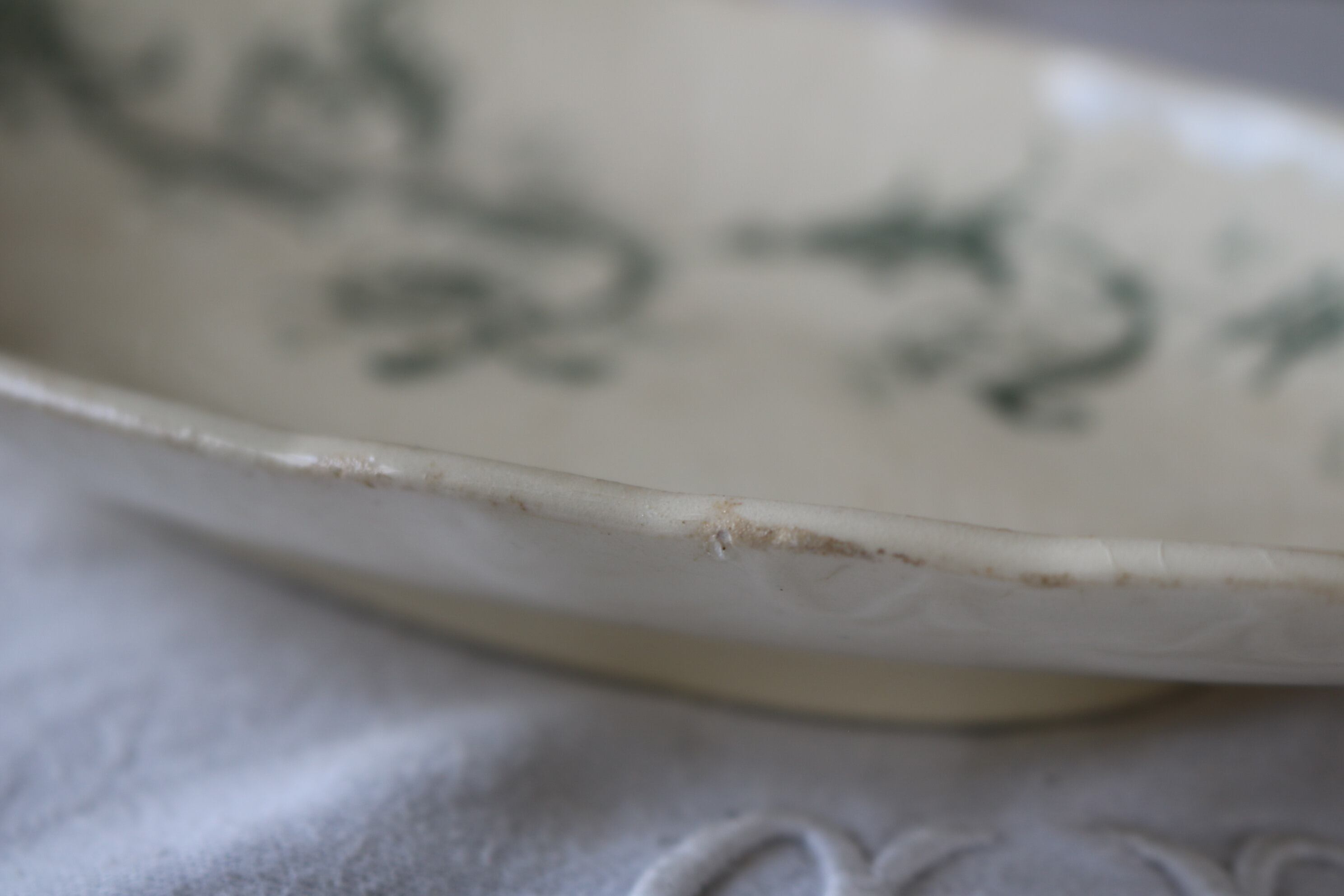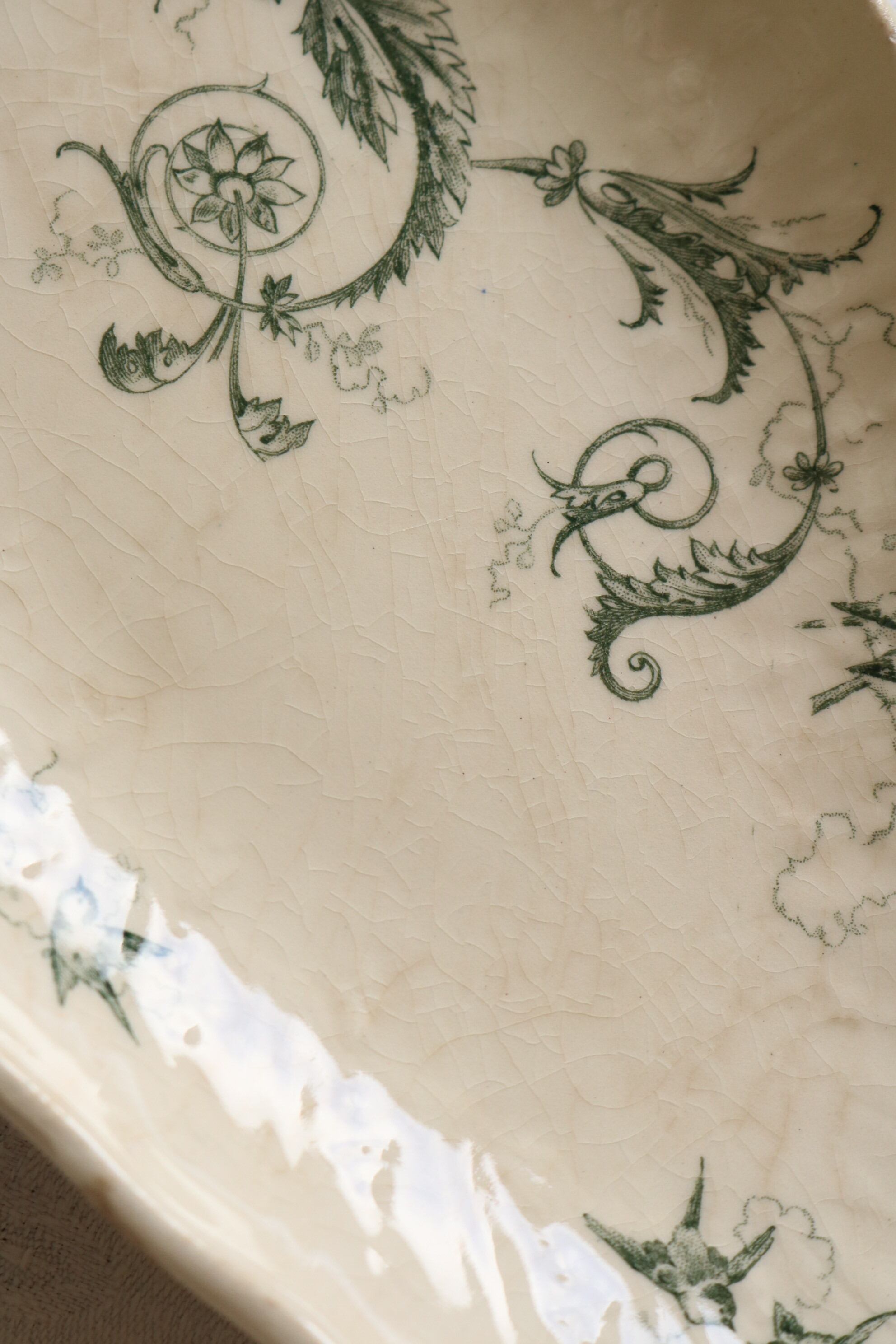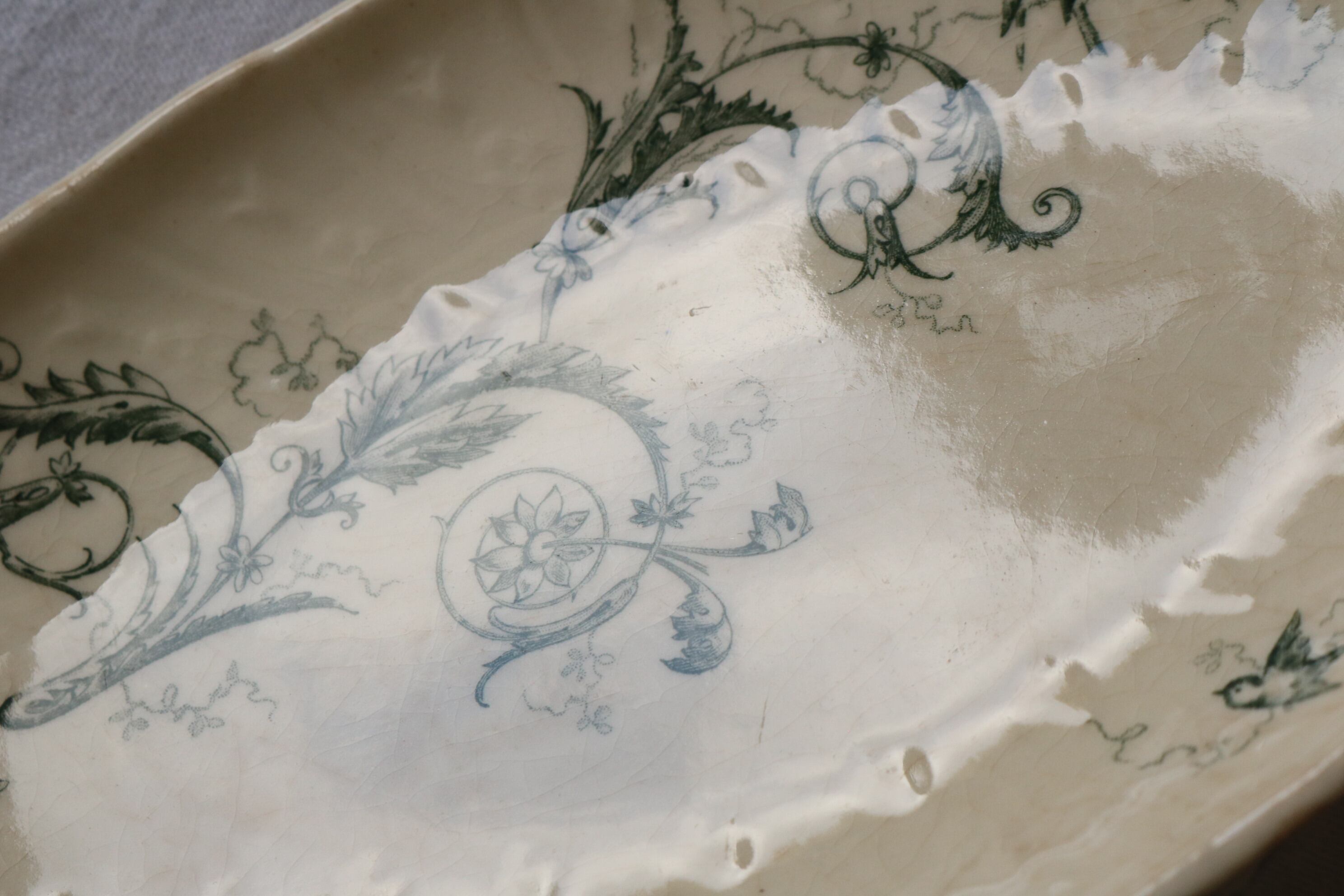 Gien 小鳥 ボタニカル レリーフ グリーン 枯れた雰囲気 ラヴィエ フランス アンティーク