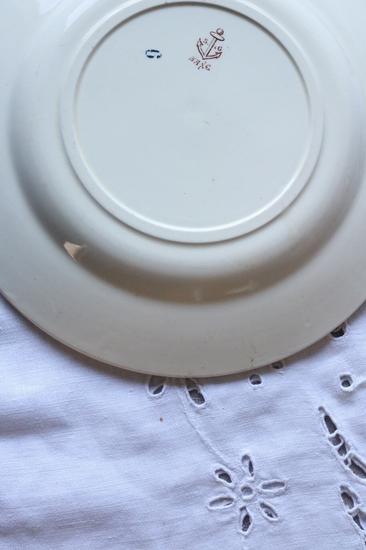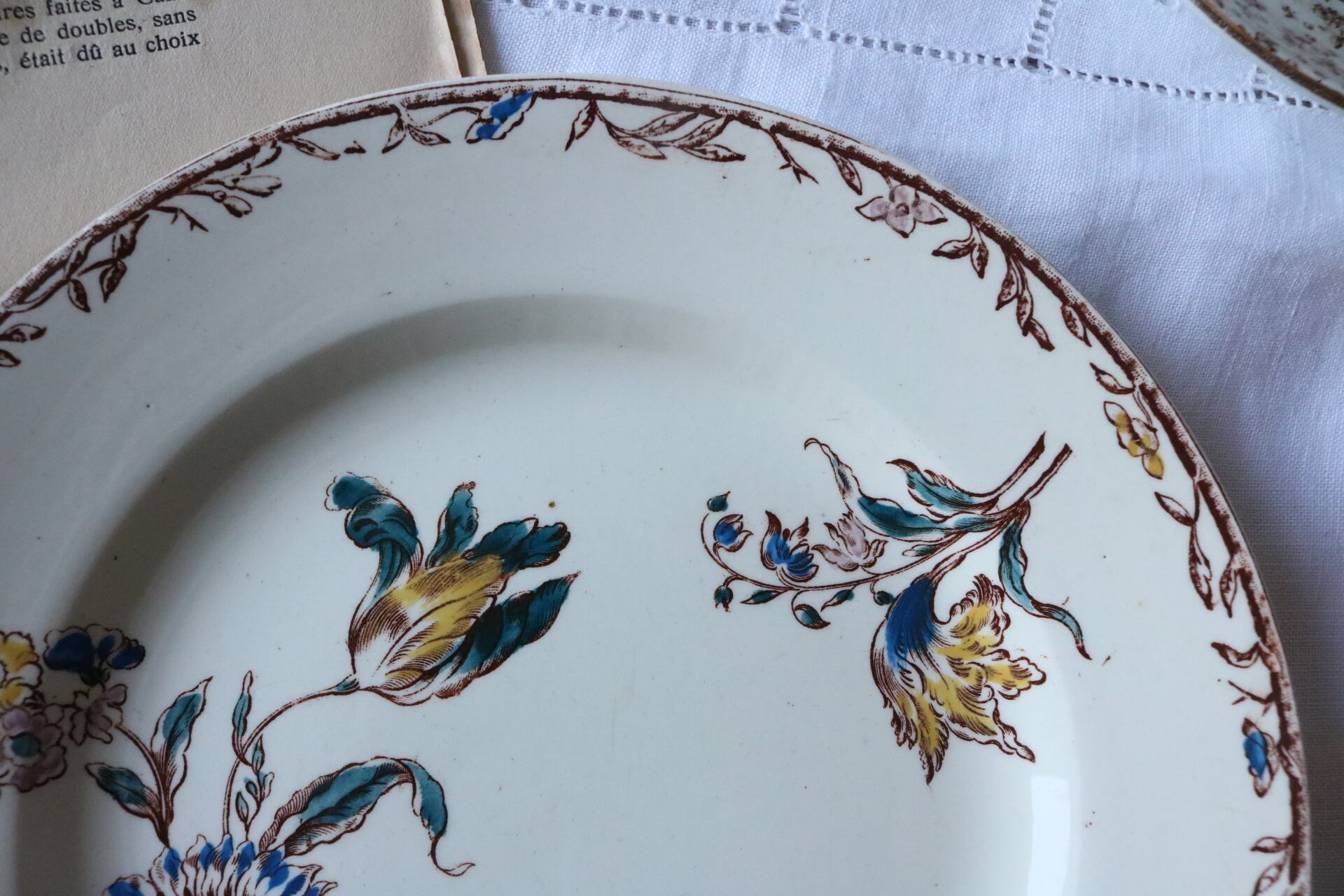 薔薇 チューリップ ボタニカル クレールフォンテーヌ a 多色刷り デザート プレート ブラウン フランス アンティーク