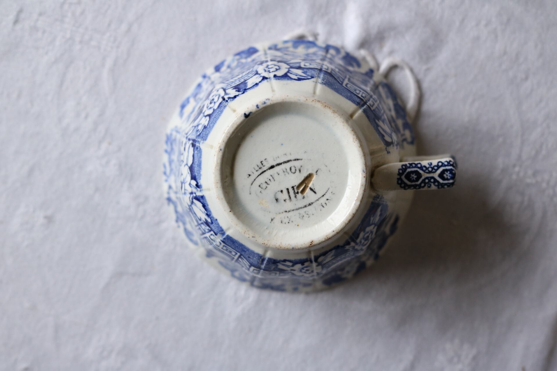 Gien ファイアンス フィーヌ ブルー カップ 12角形 ジャポニズム