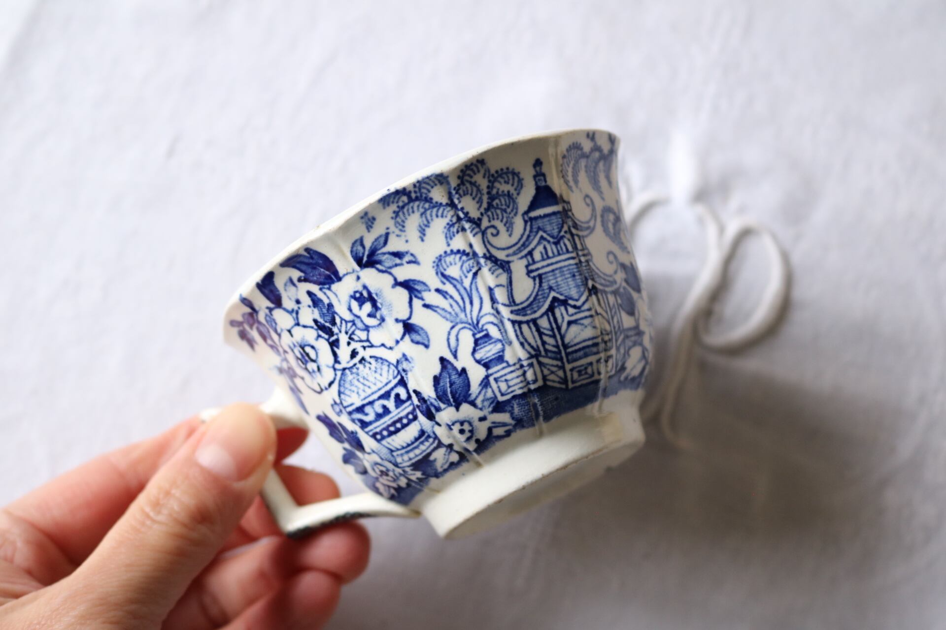 外部が12角になっており、落ち着いたブルーで描かれたシノワズリ柄、