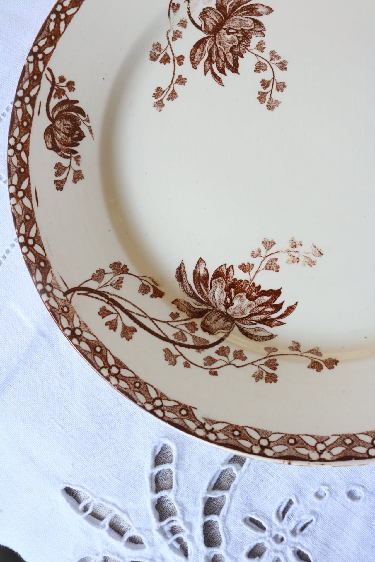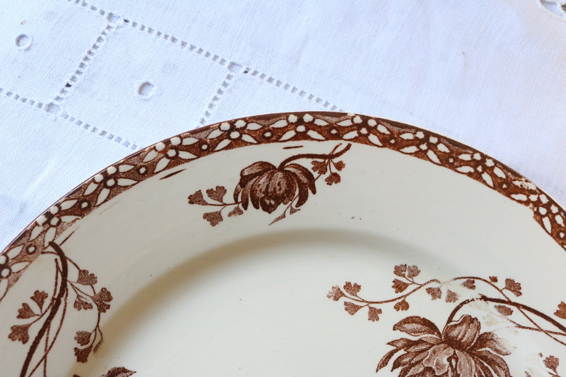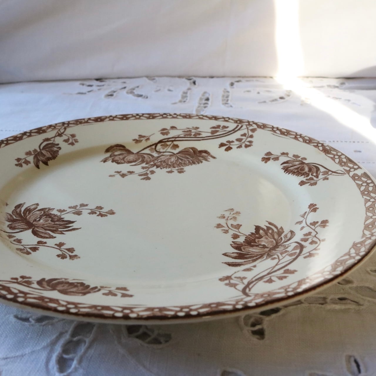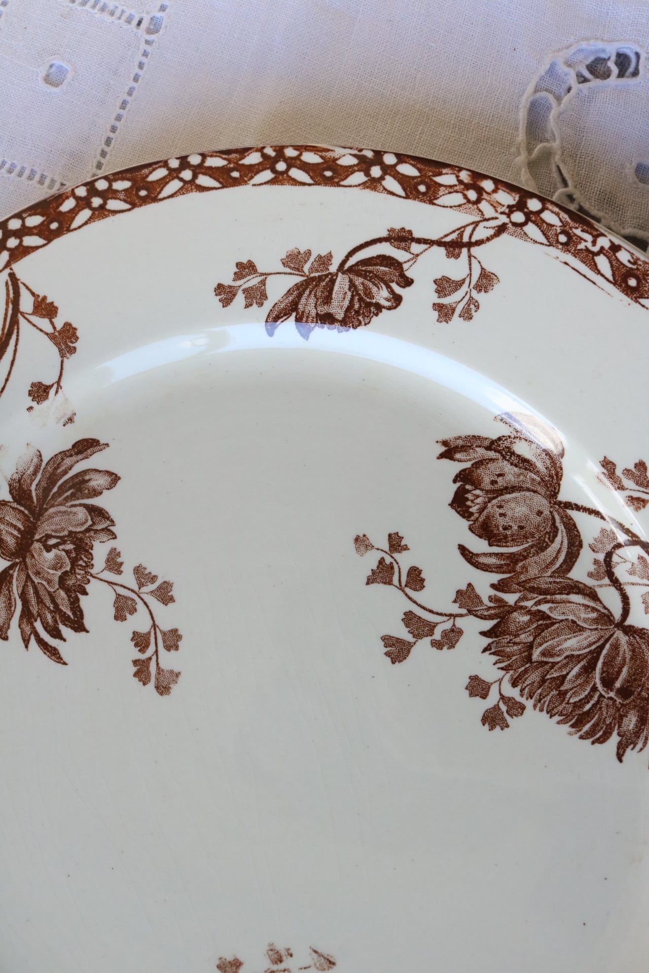 【美品】Sarreguemines ブラウン アールヌーボー ボタニカル フランス アンティーク