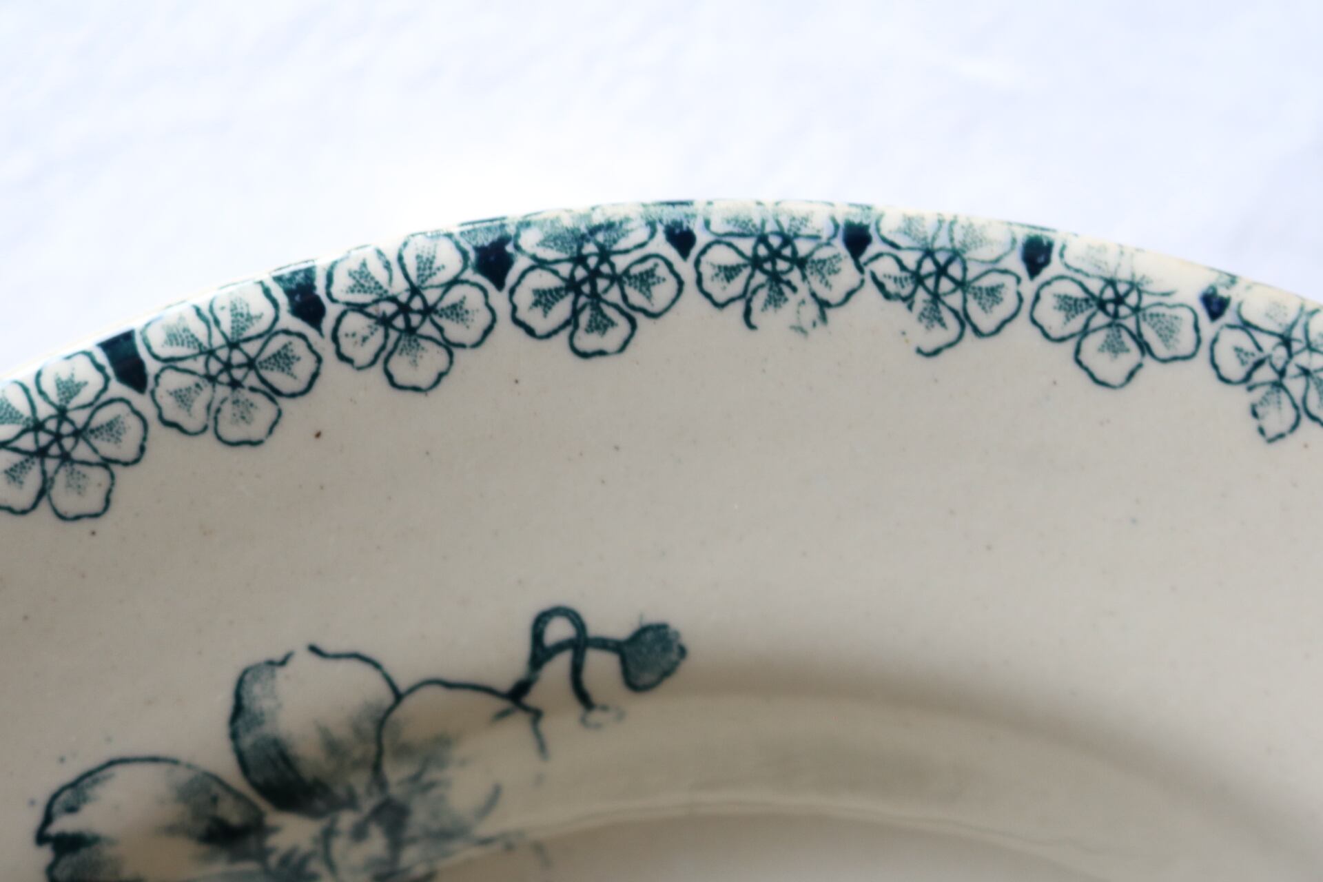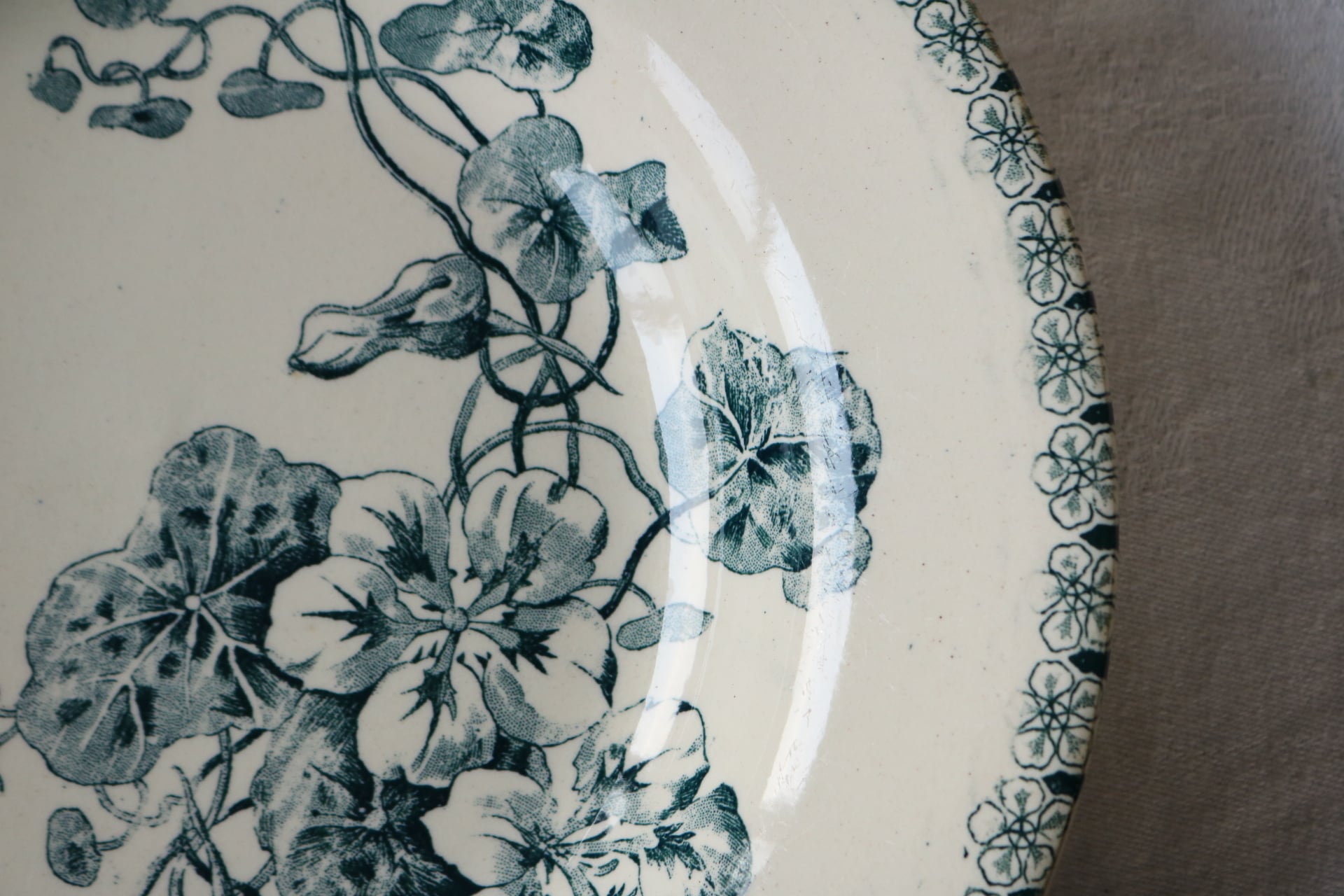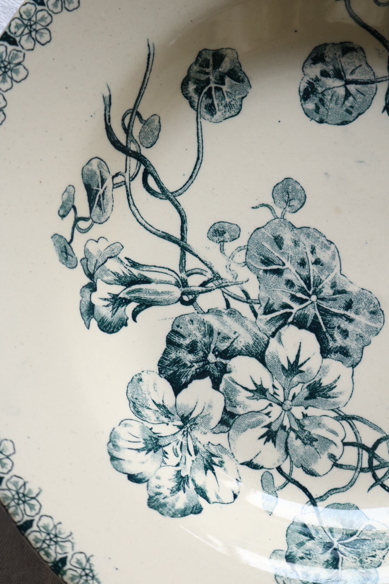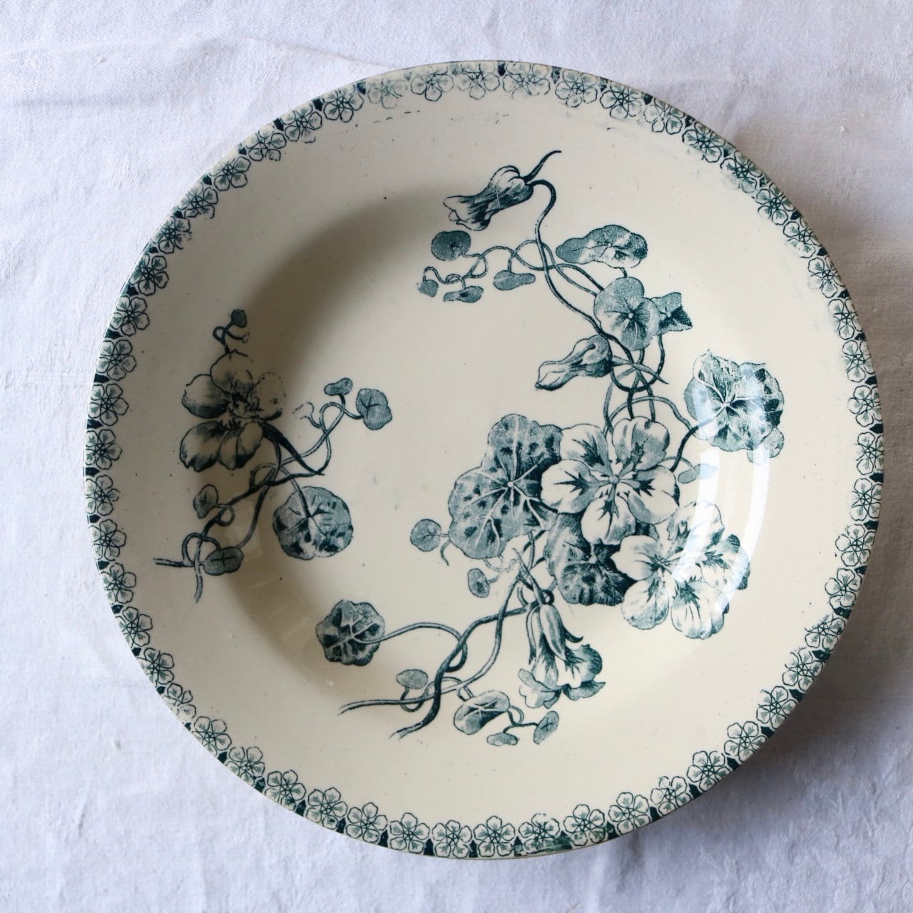 Gien ブルーグリーン 金蓮花 深皿 フランス アンティーク プレートA