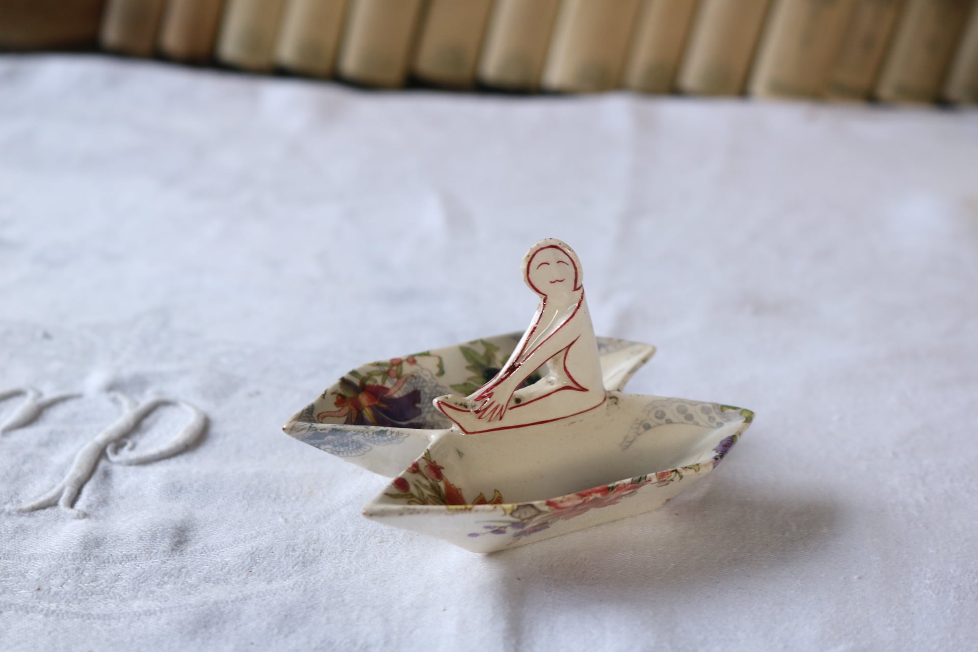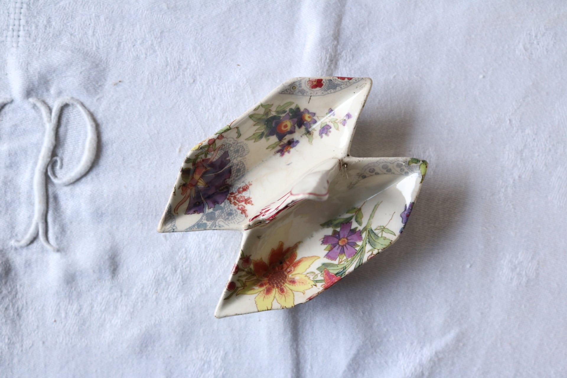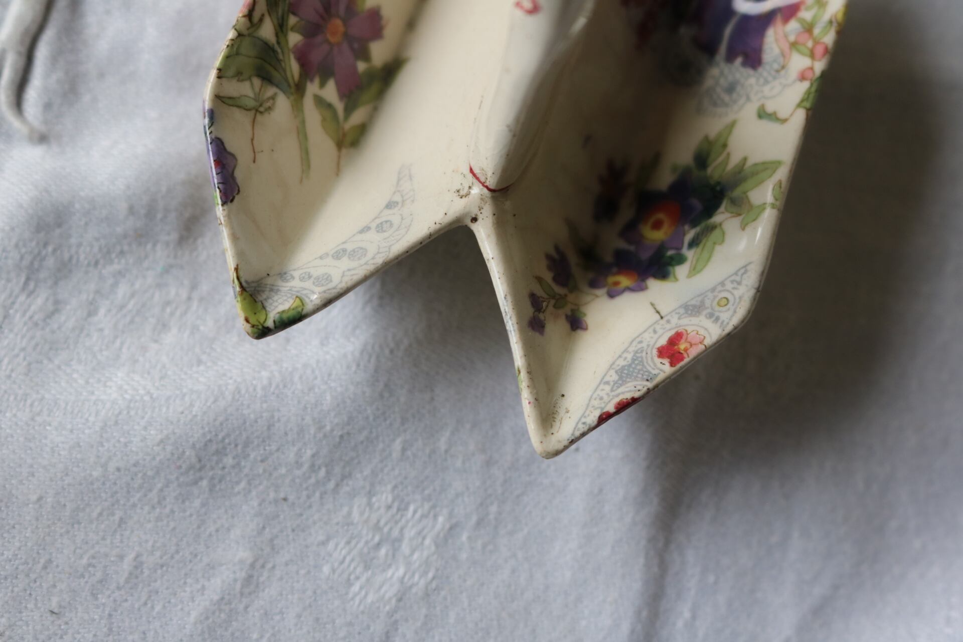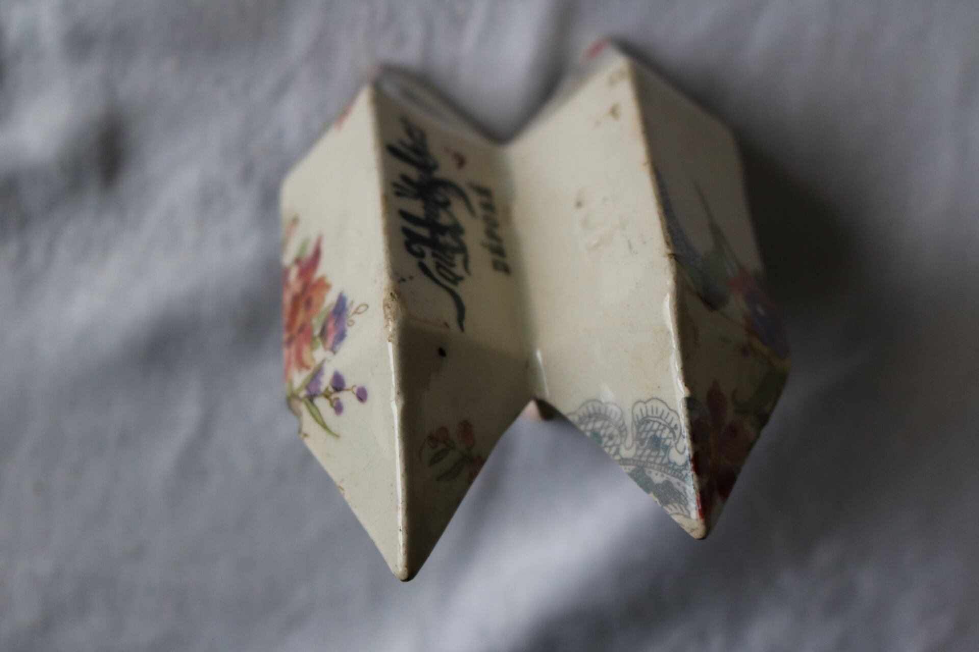【希少】【送料無料】sarreguemines レース 六角形 サリエール 調味料ケース フランス アンティーク 塩胡椒 多色刷り