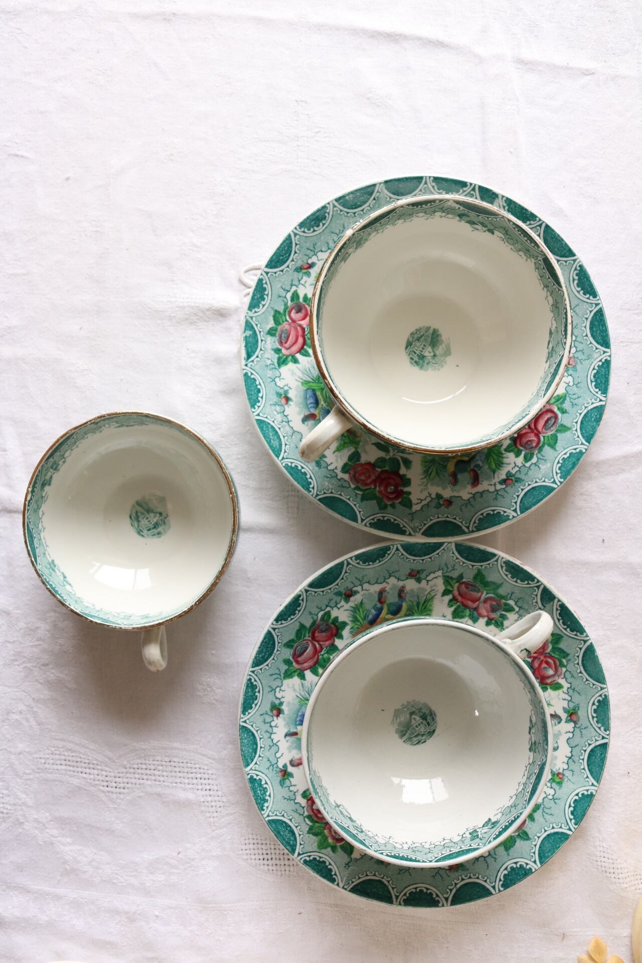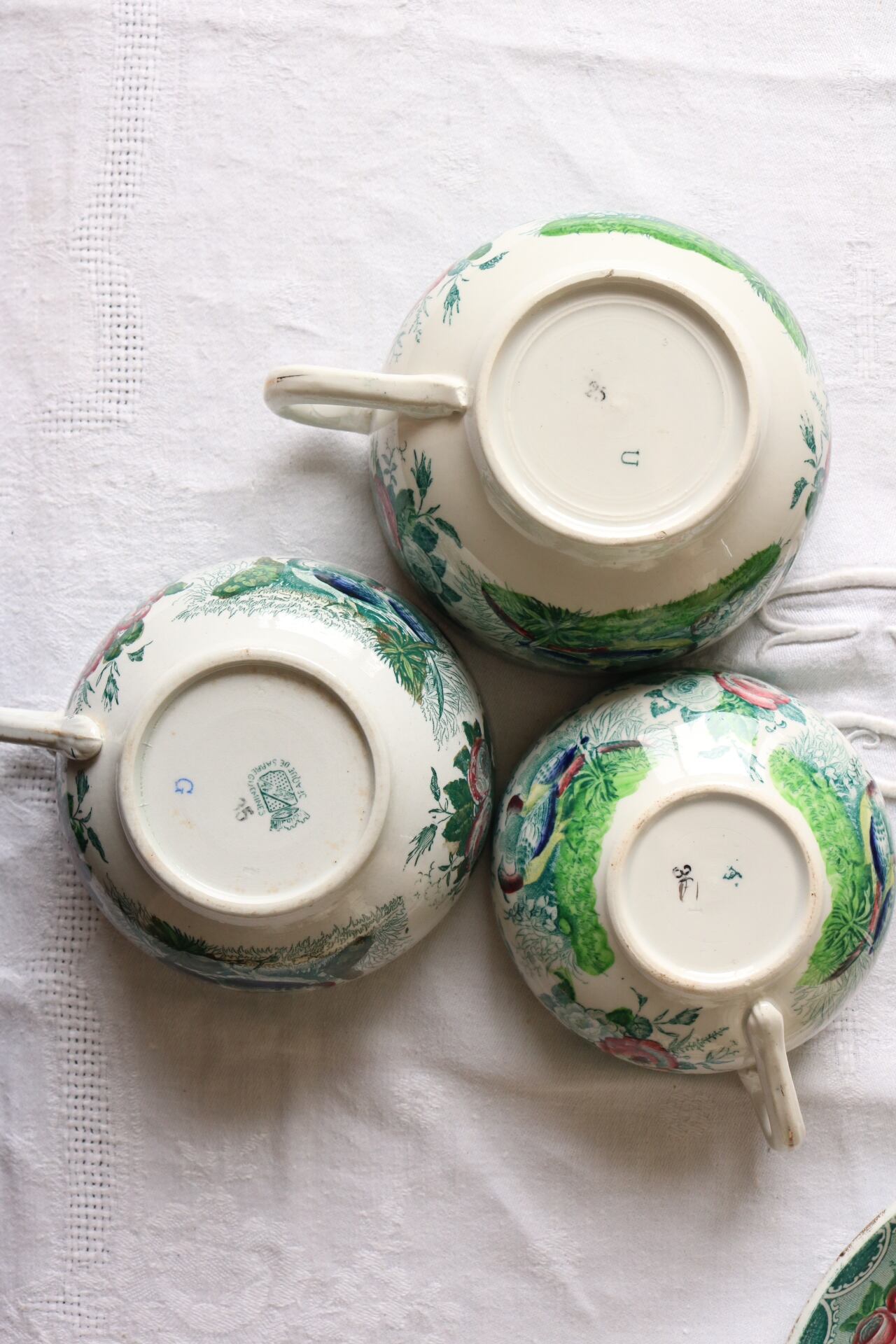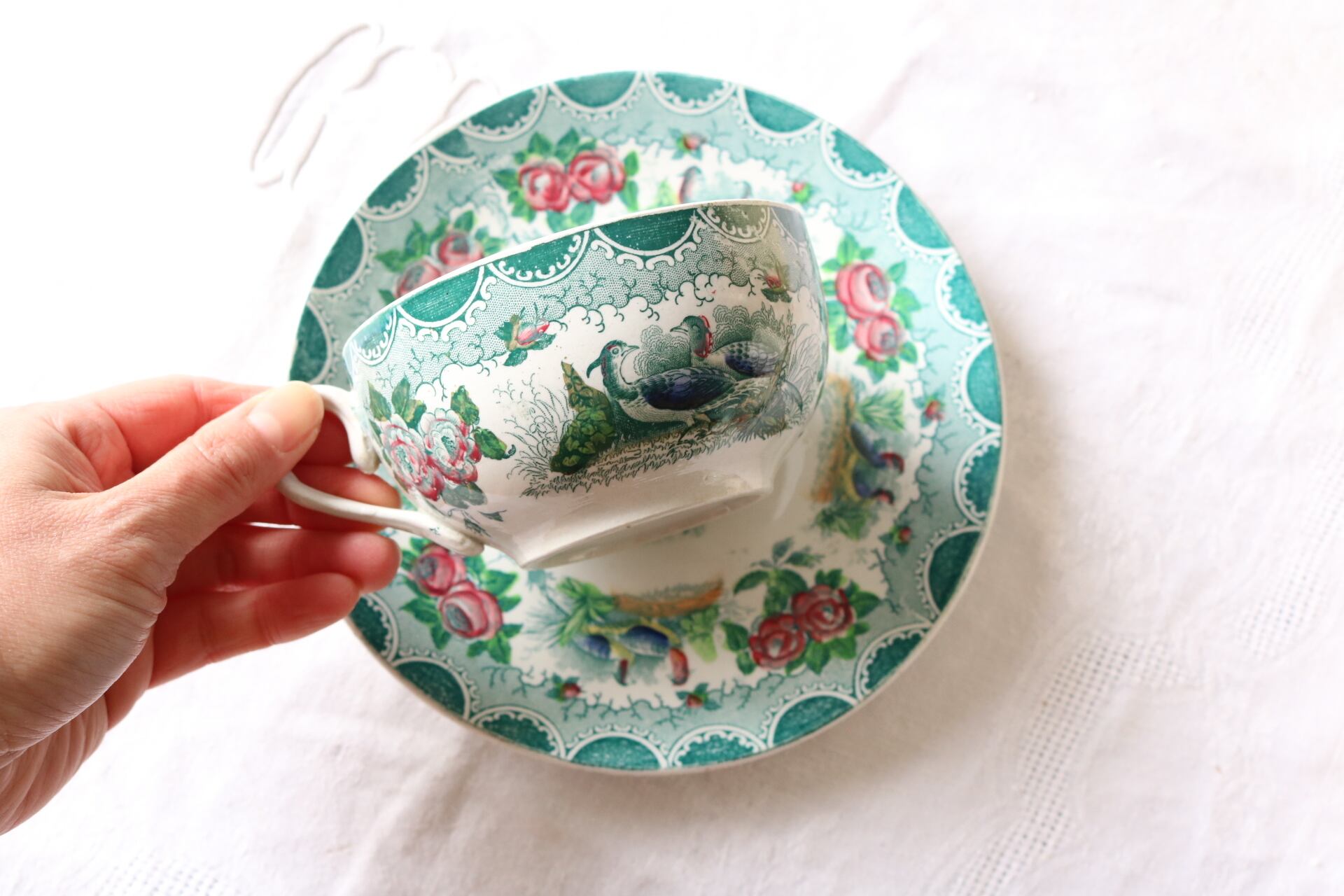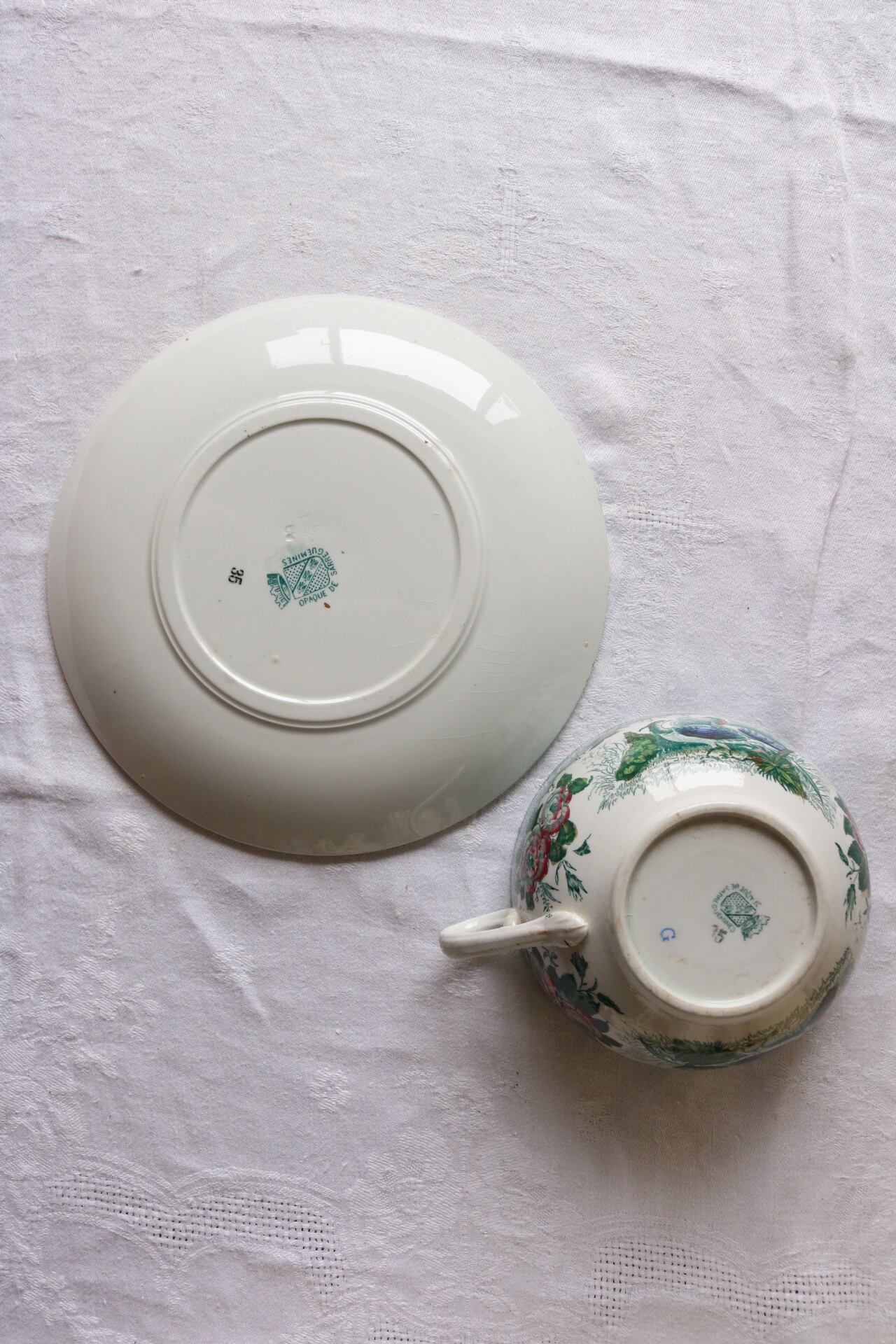 大きめ カップ Sarreguemines グリーン 多色 カモ ボタニカル カップ & ソーサー c&s