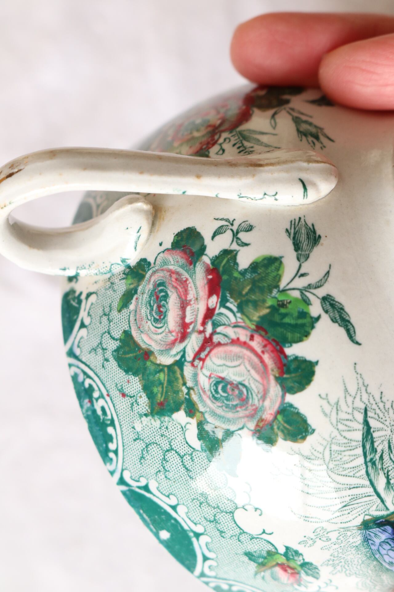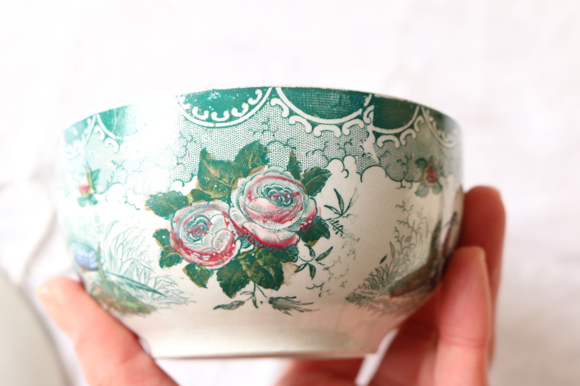 手作業で彩色された薔薇やカモがなんともいい雰囲気です。