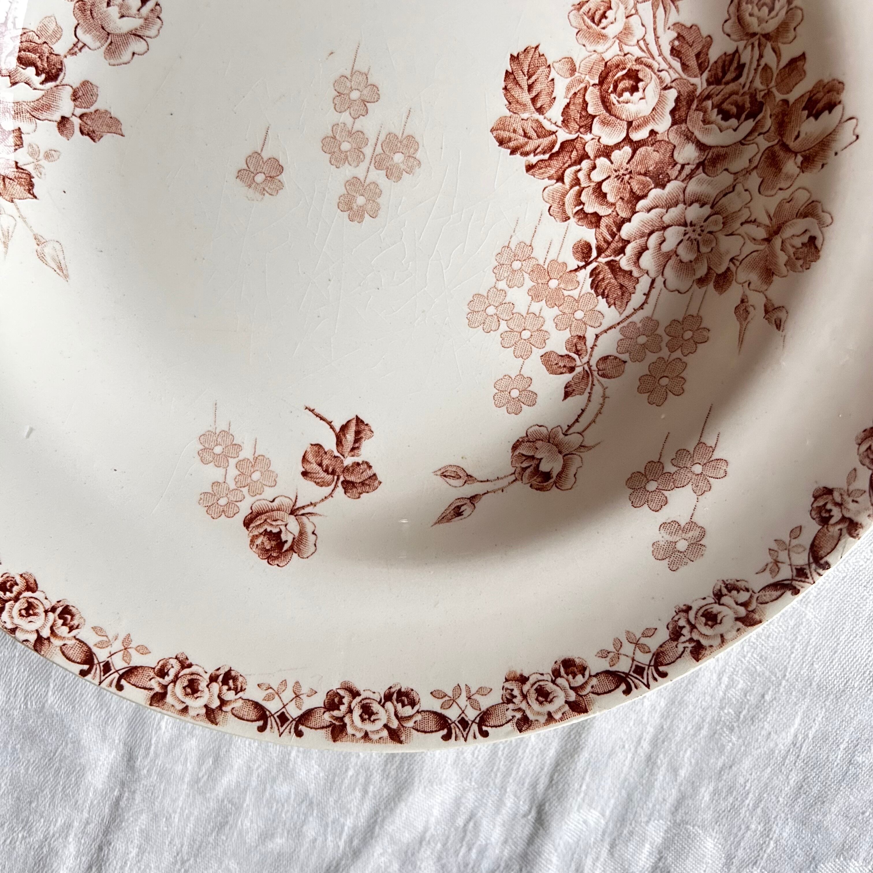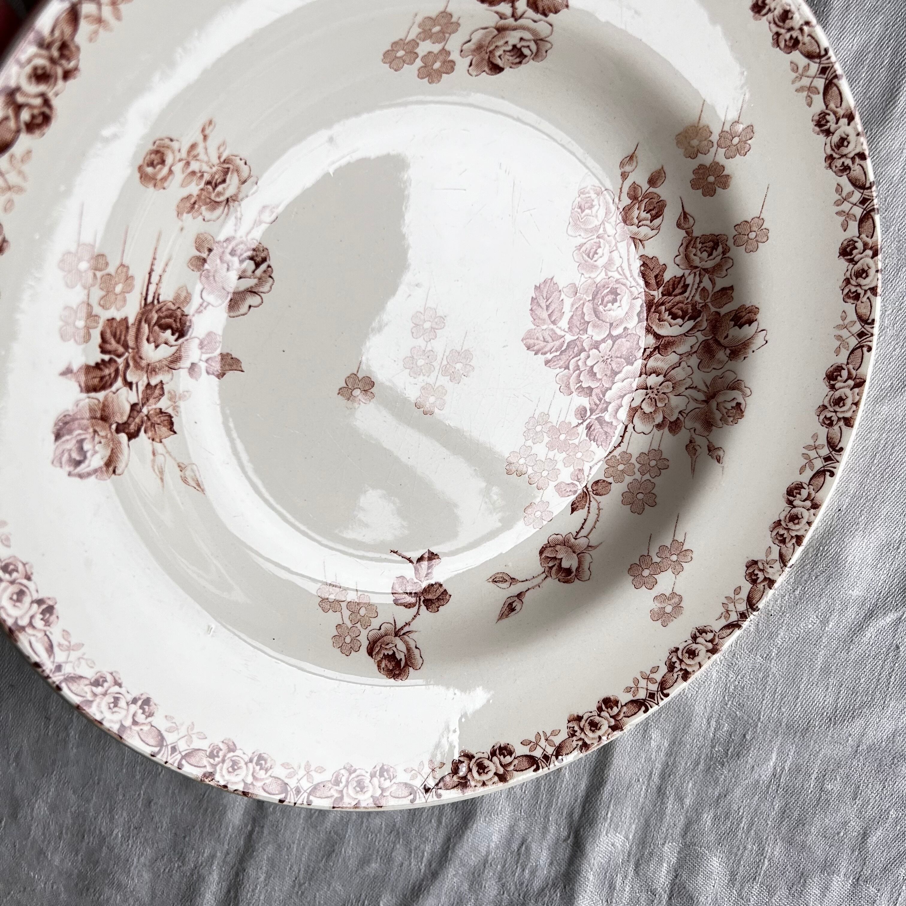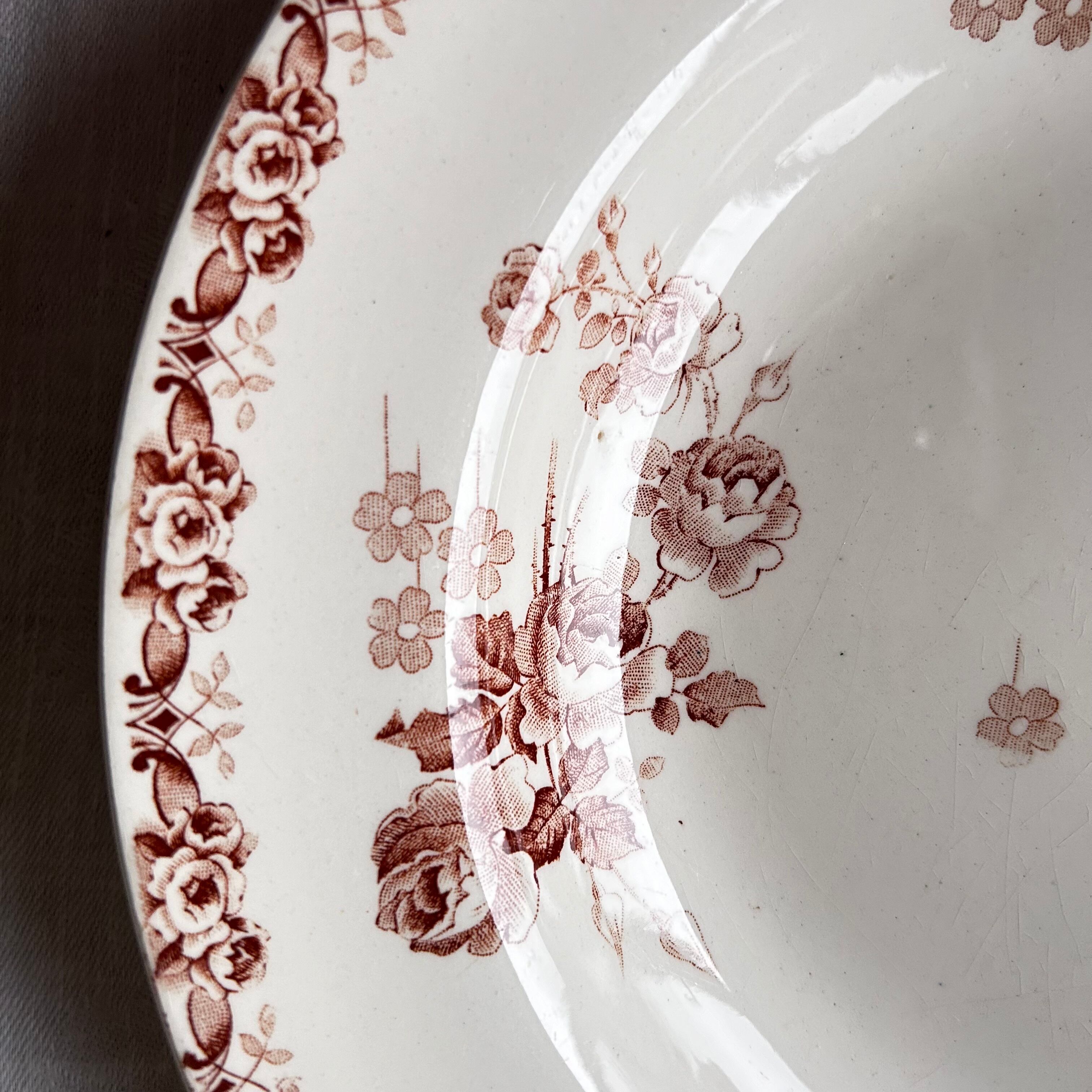 Choisy le roi バラ 小花柄 深皿 プレート セピア ブラウン フランス アンティーク