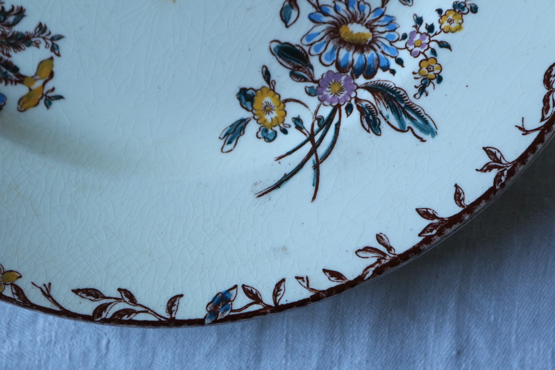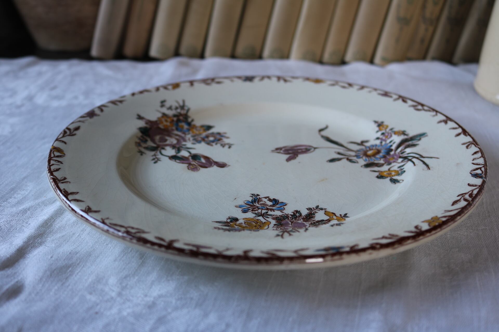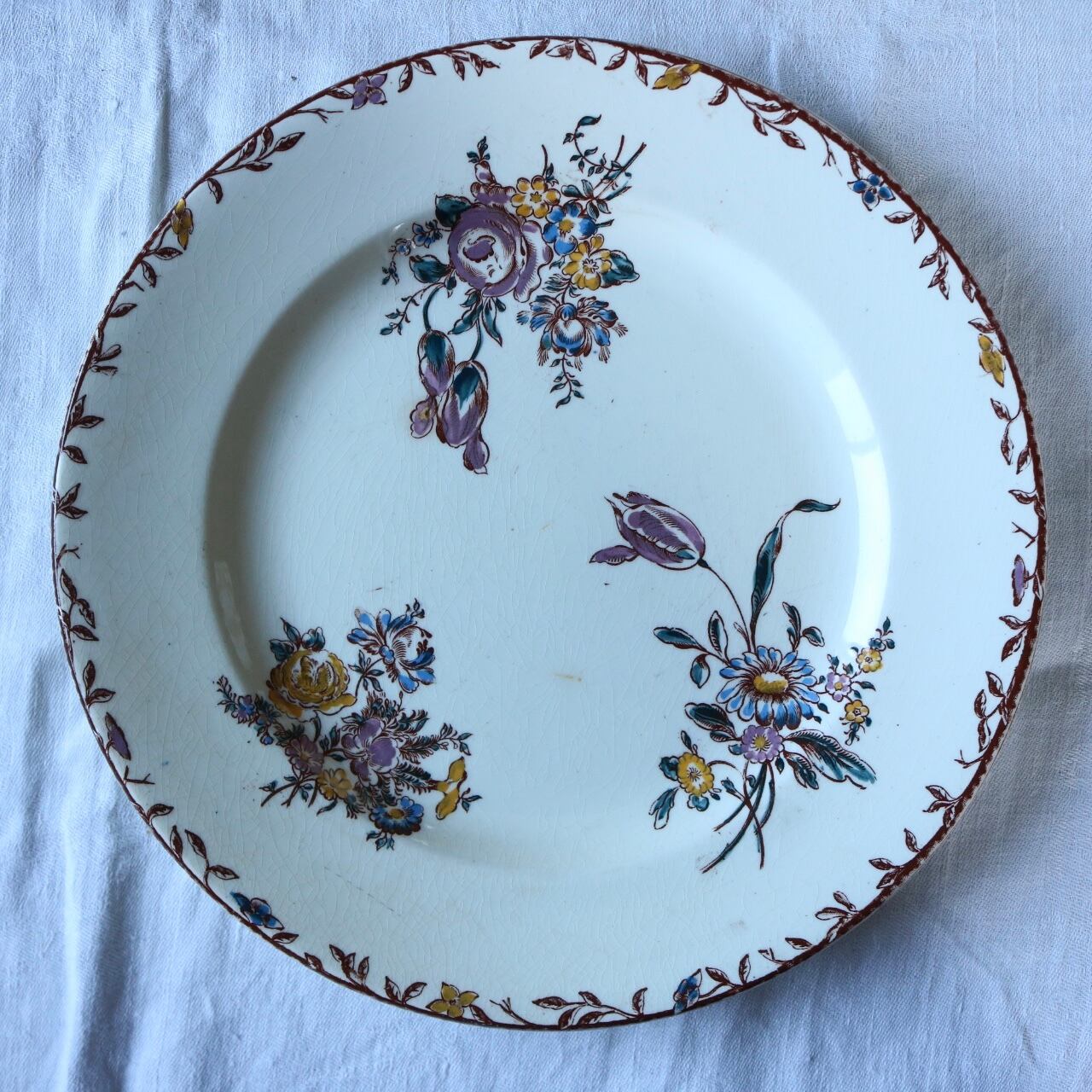 クレールフォンテーヌ 薔薇 チューリップ ボタニカル 多色刷り プレート b ブラウン フランス アンティーク