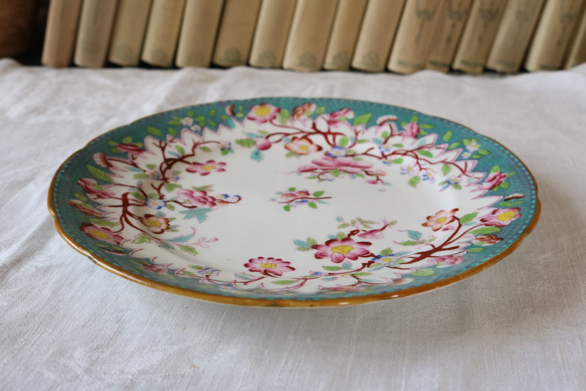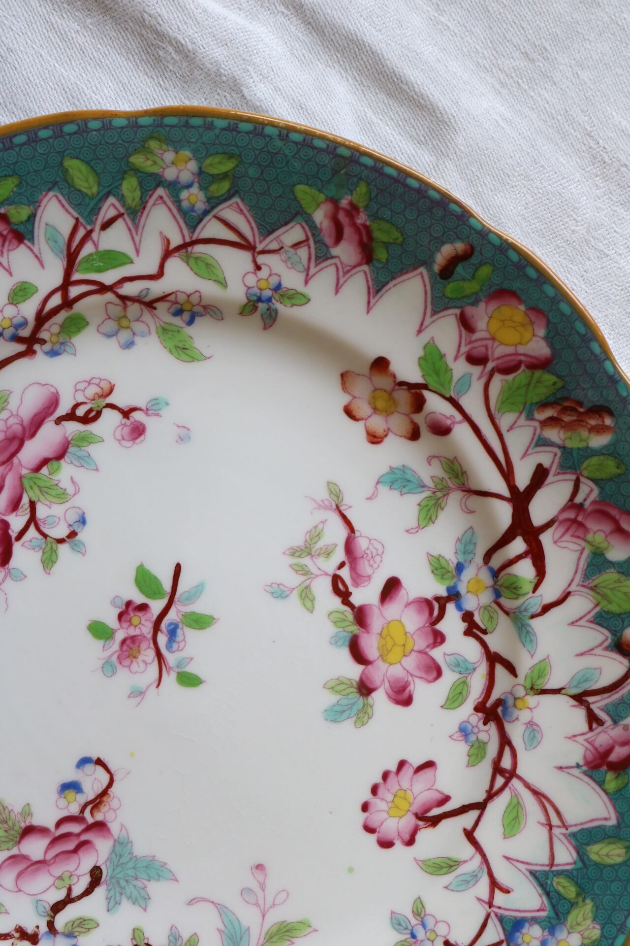 Sarreguemines ジャポニズム シノワズリ プレート グリーン ボーンチャイナ