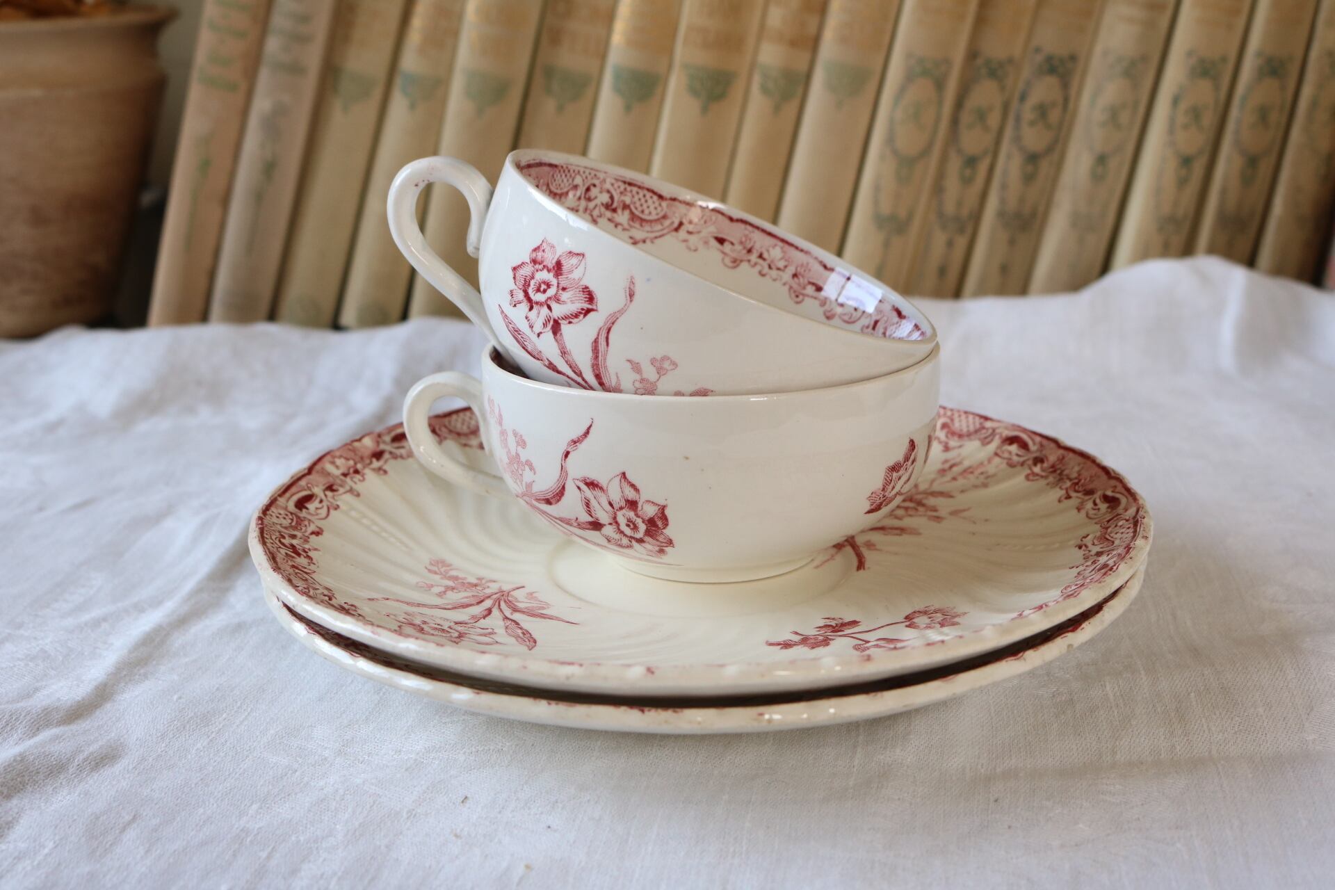 Sarreguemines Fontanges a ボタニカル 花リム 赤 カップ & ソーサー c&s