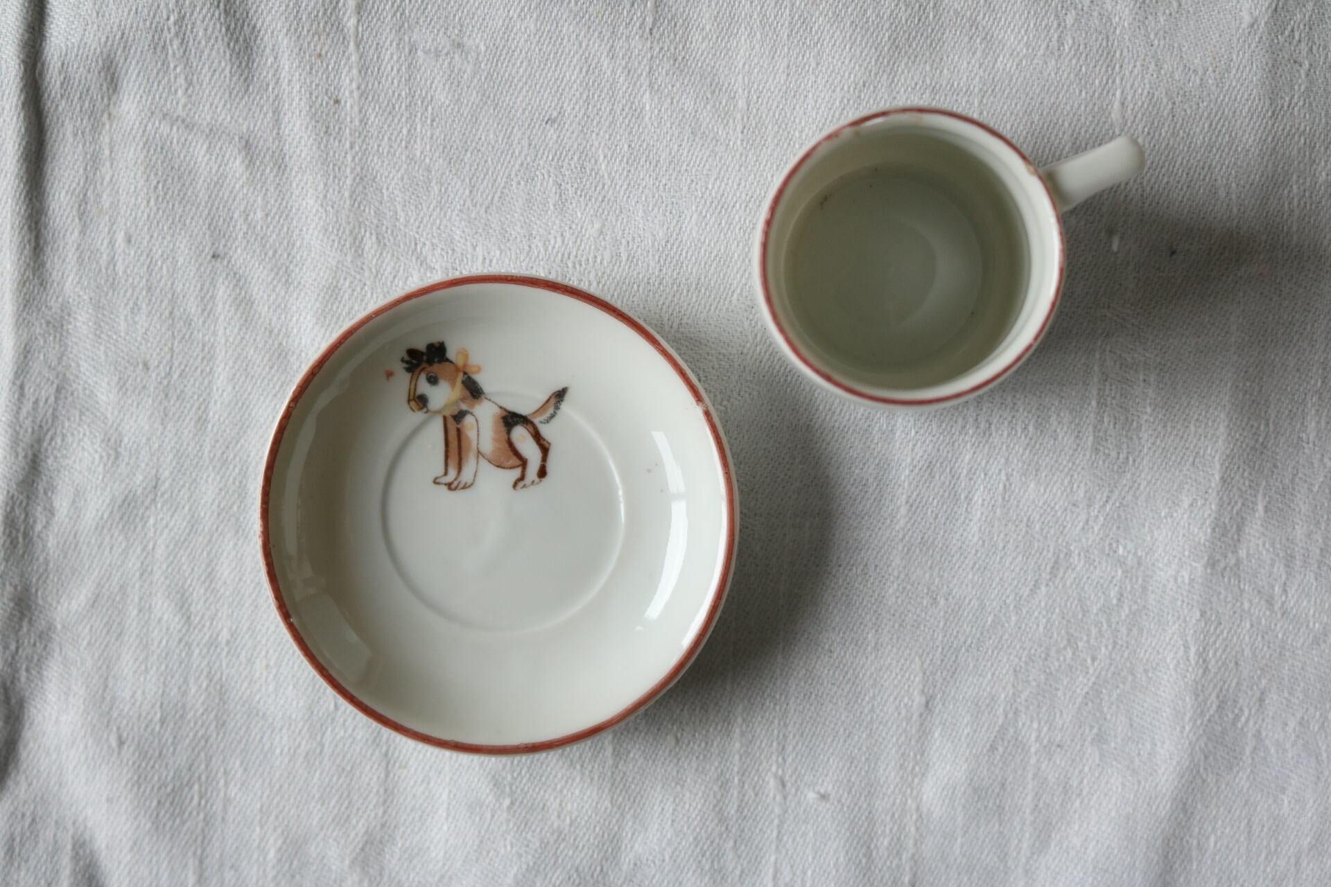 カップ、ソーサーそれぞれに犬のイラストが入っています。