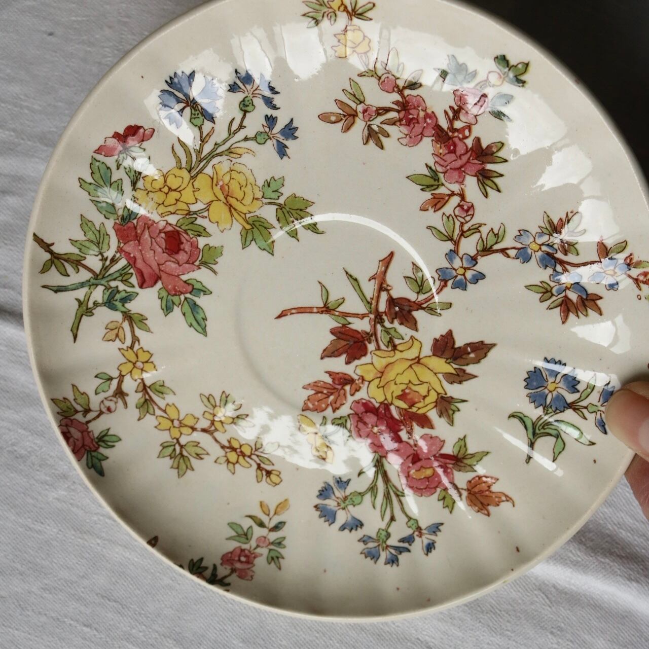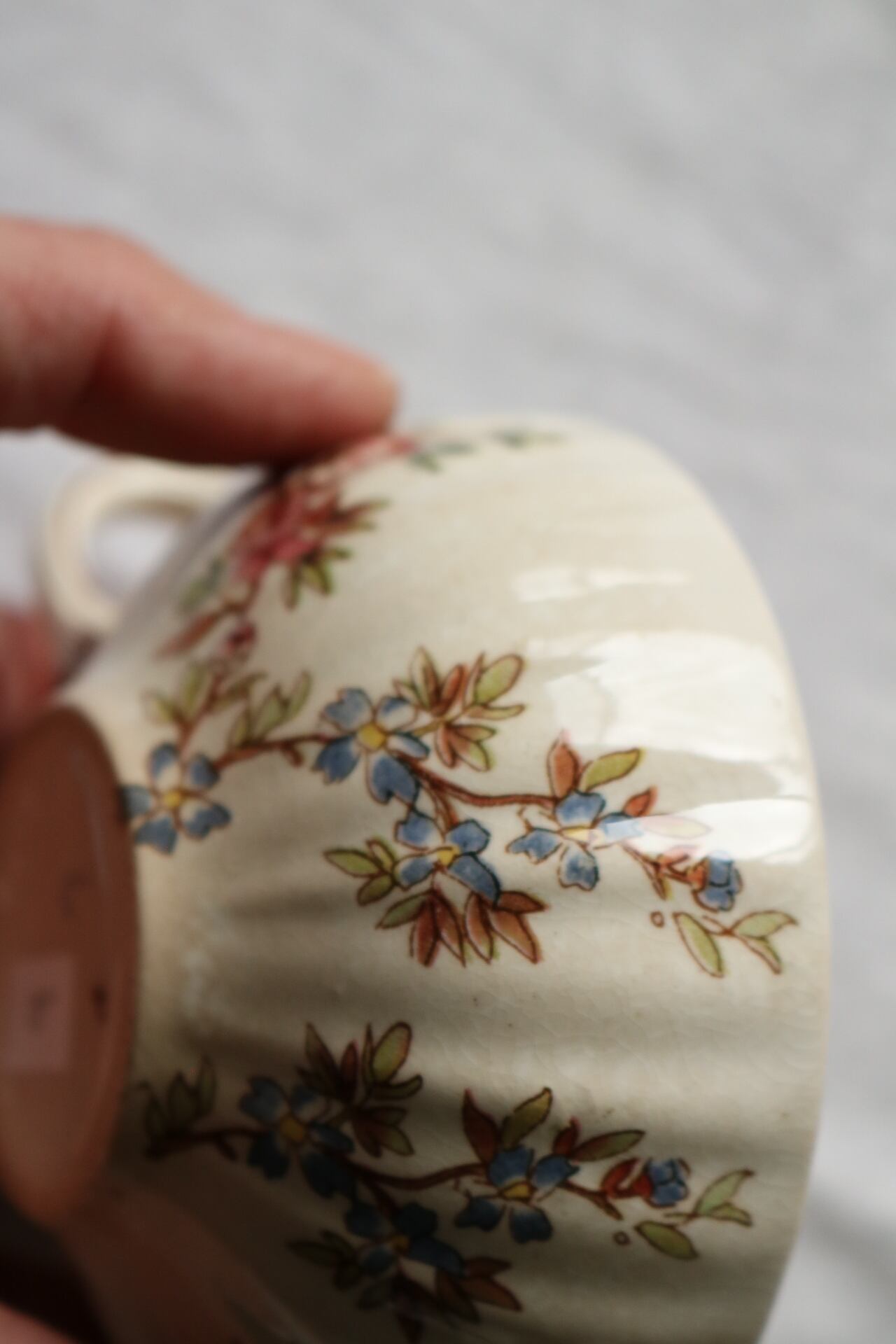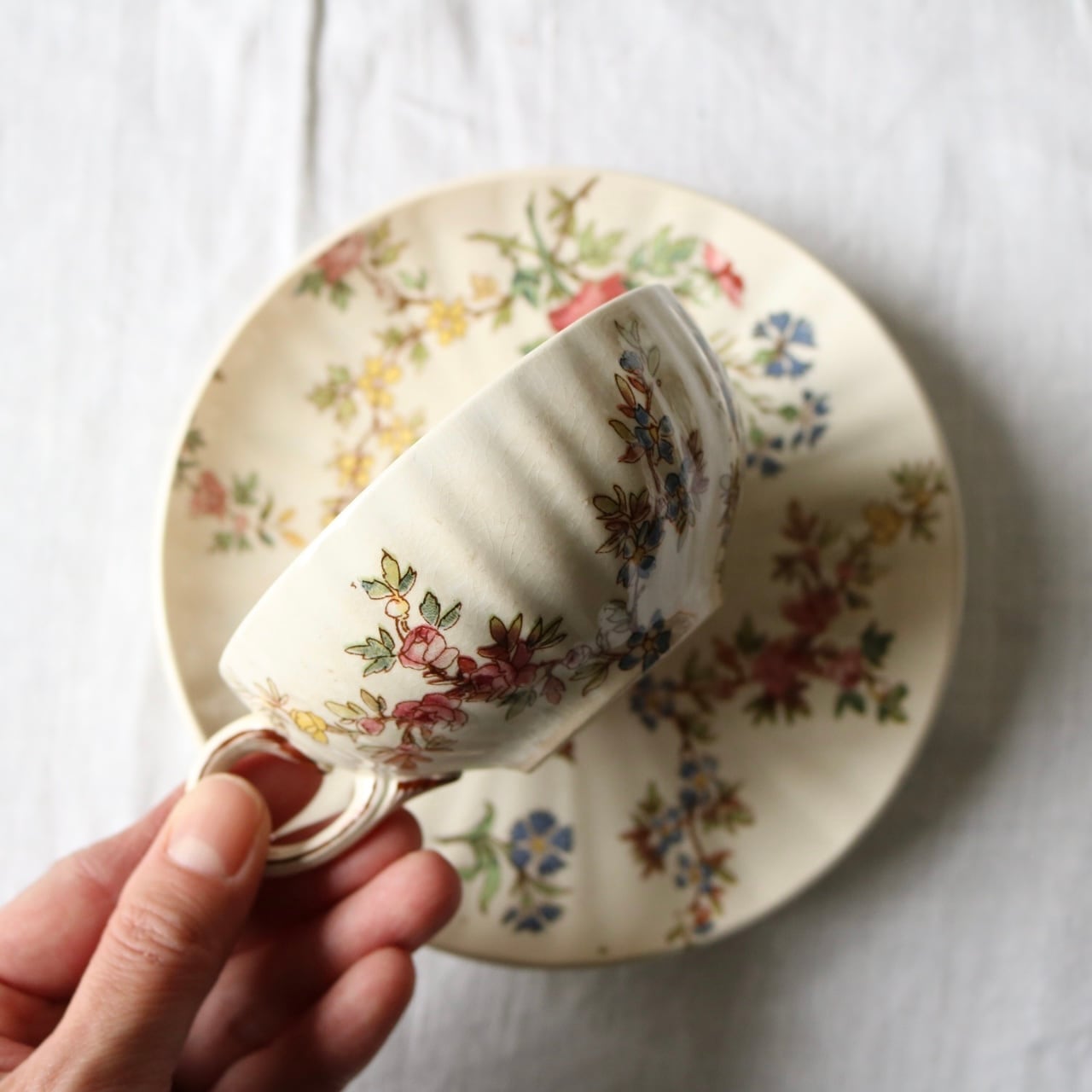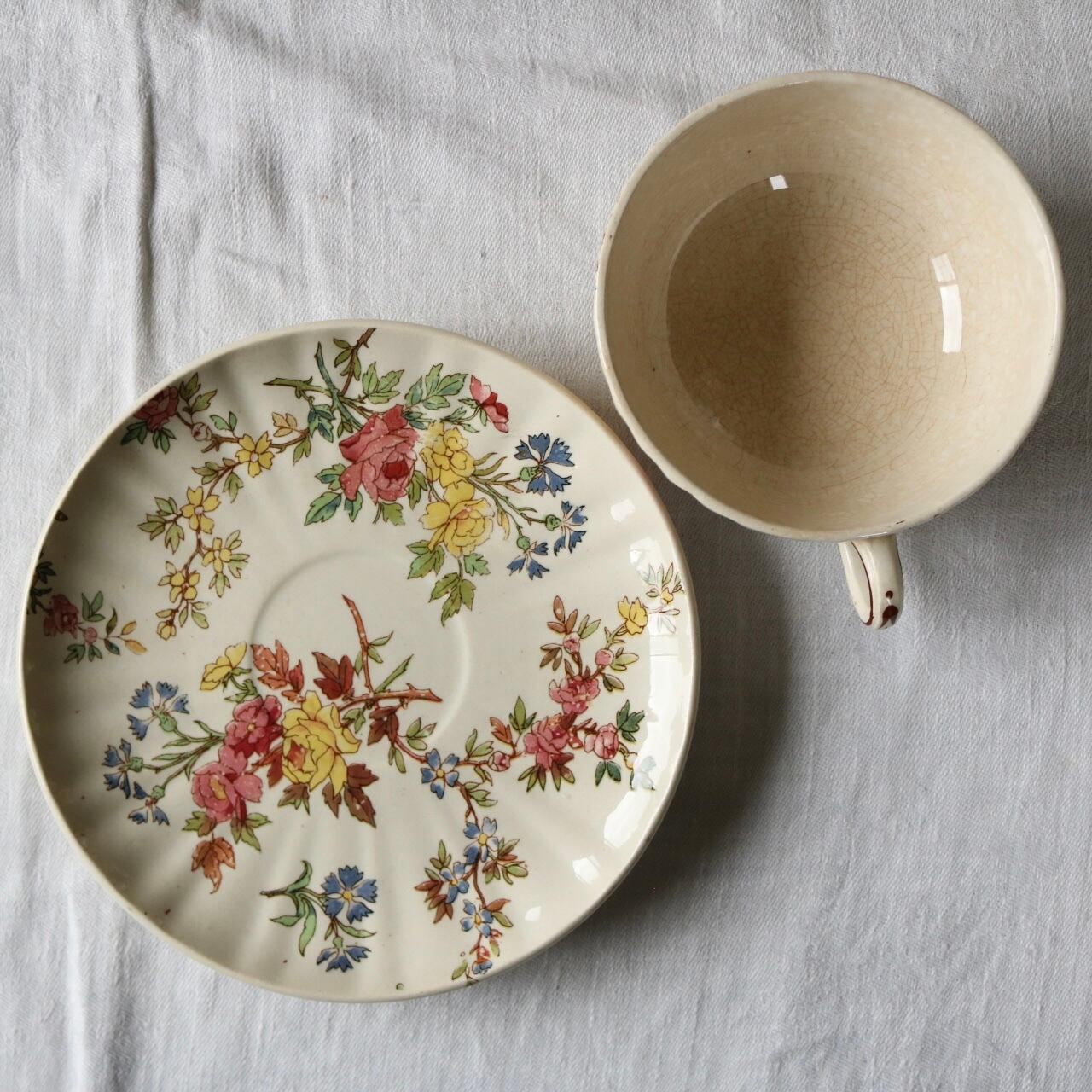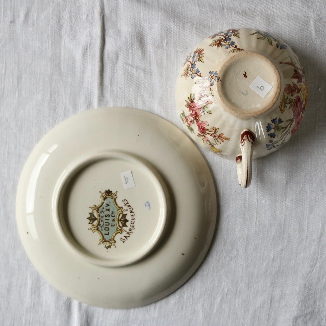 Sarreguemines 多色刷り b 小花柄 レリーフ 花リム カップ ソーサー c&s
