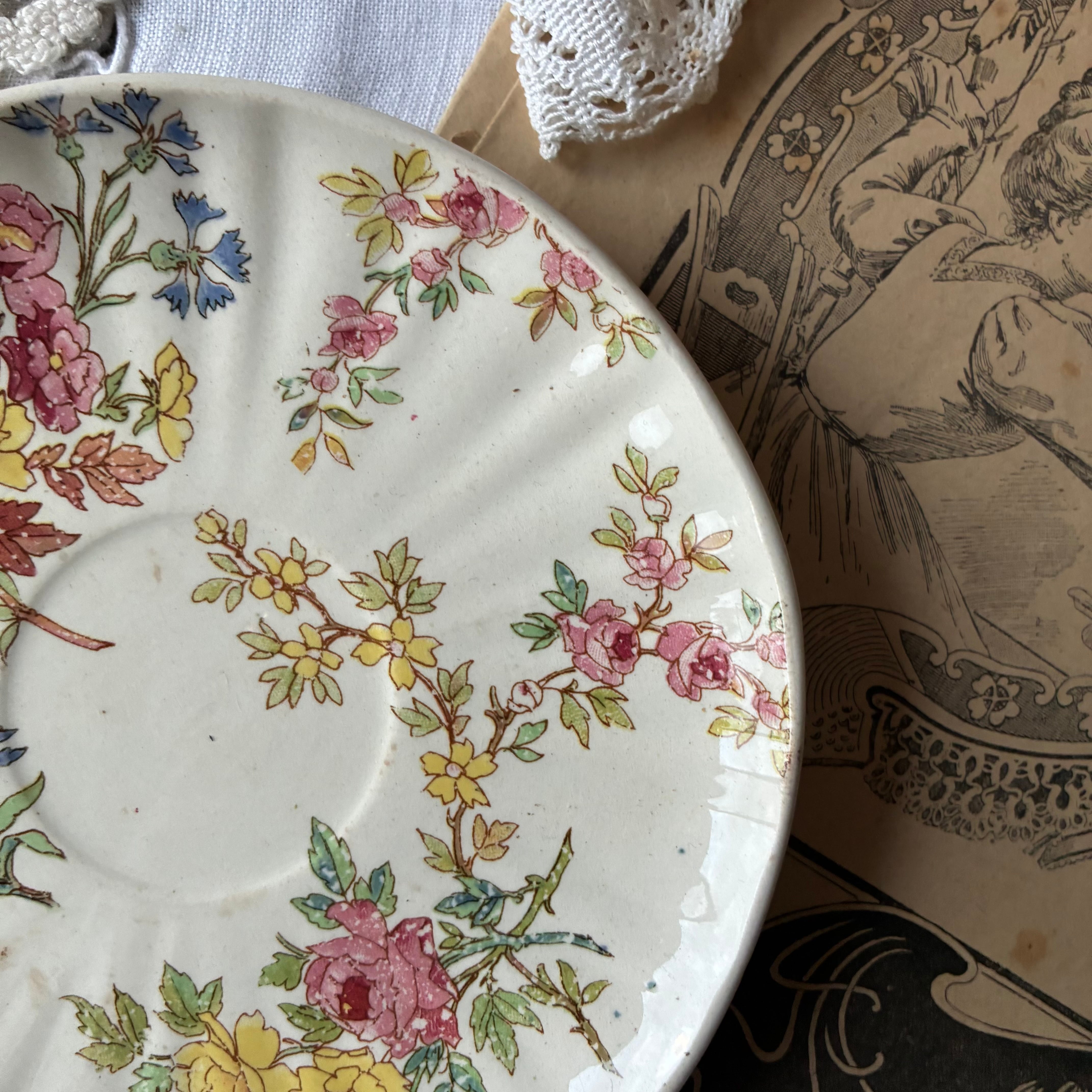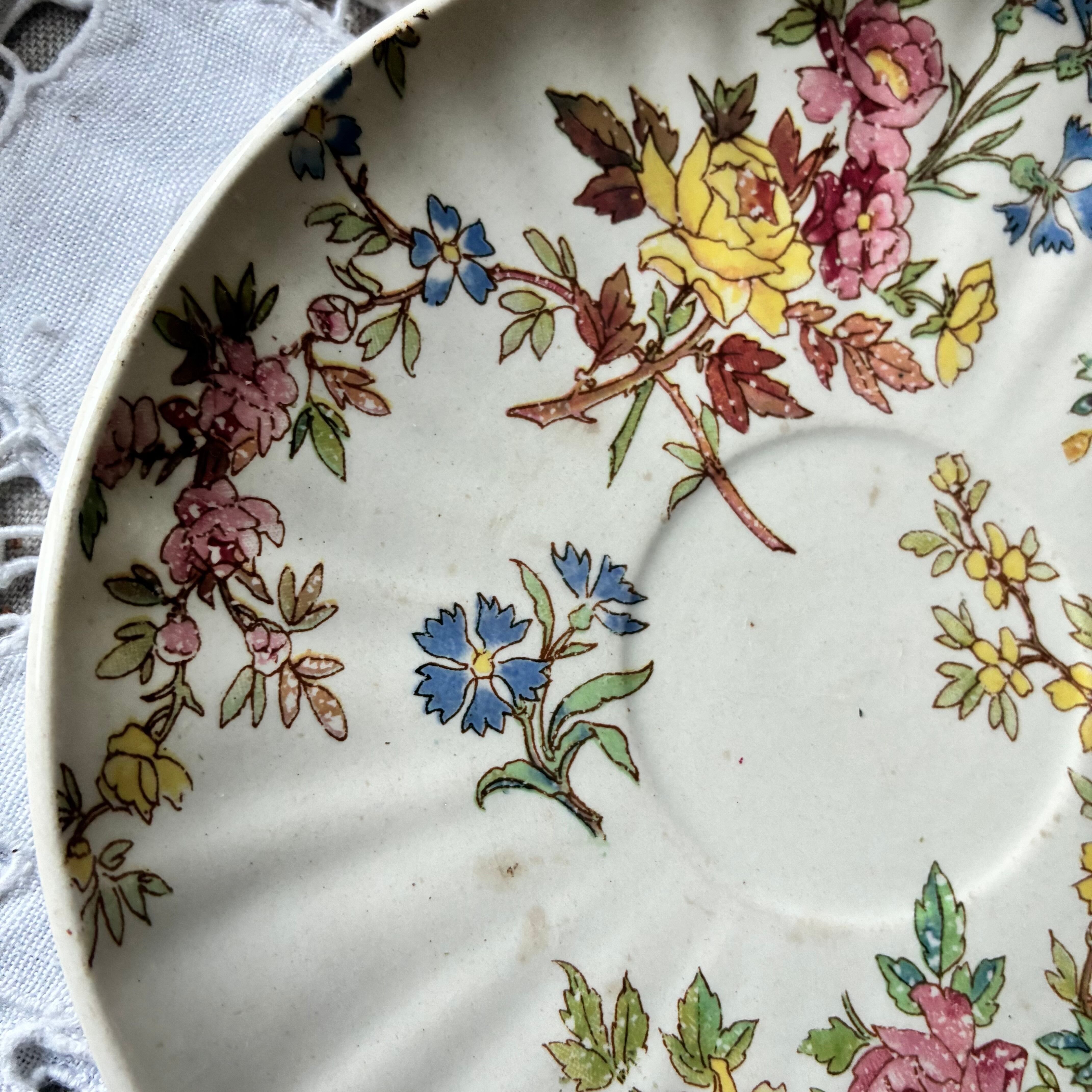 ソーサー 小皿 パン皿 Sarreguemines 多色刷り 小花柄 レリーフ 花リム
