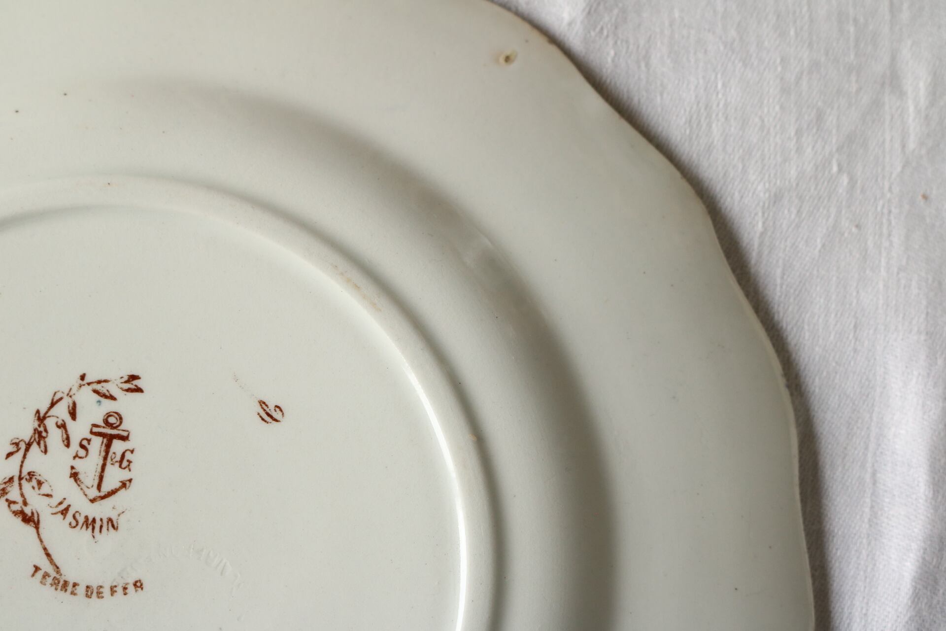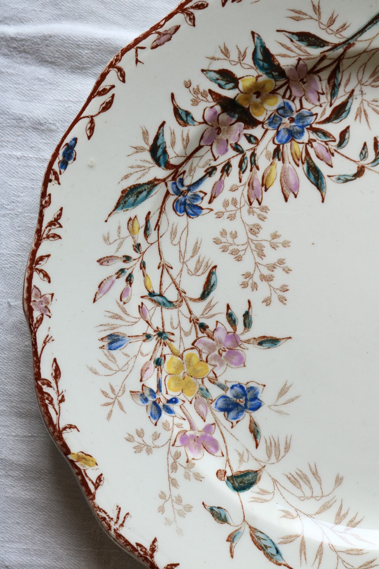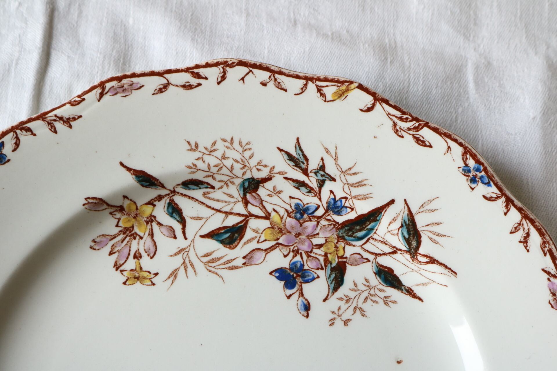 クレールフォンテーヌ ジャスミン チューリップ ボタニカル 多色刷り プレート ブラウン フランス アンティーク