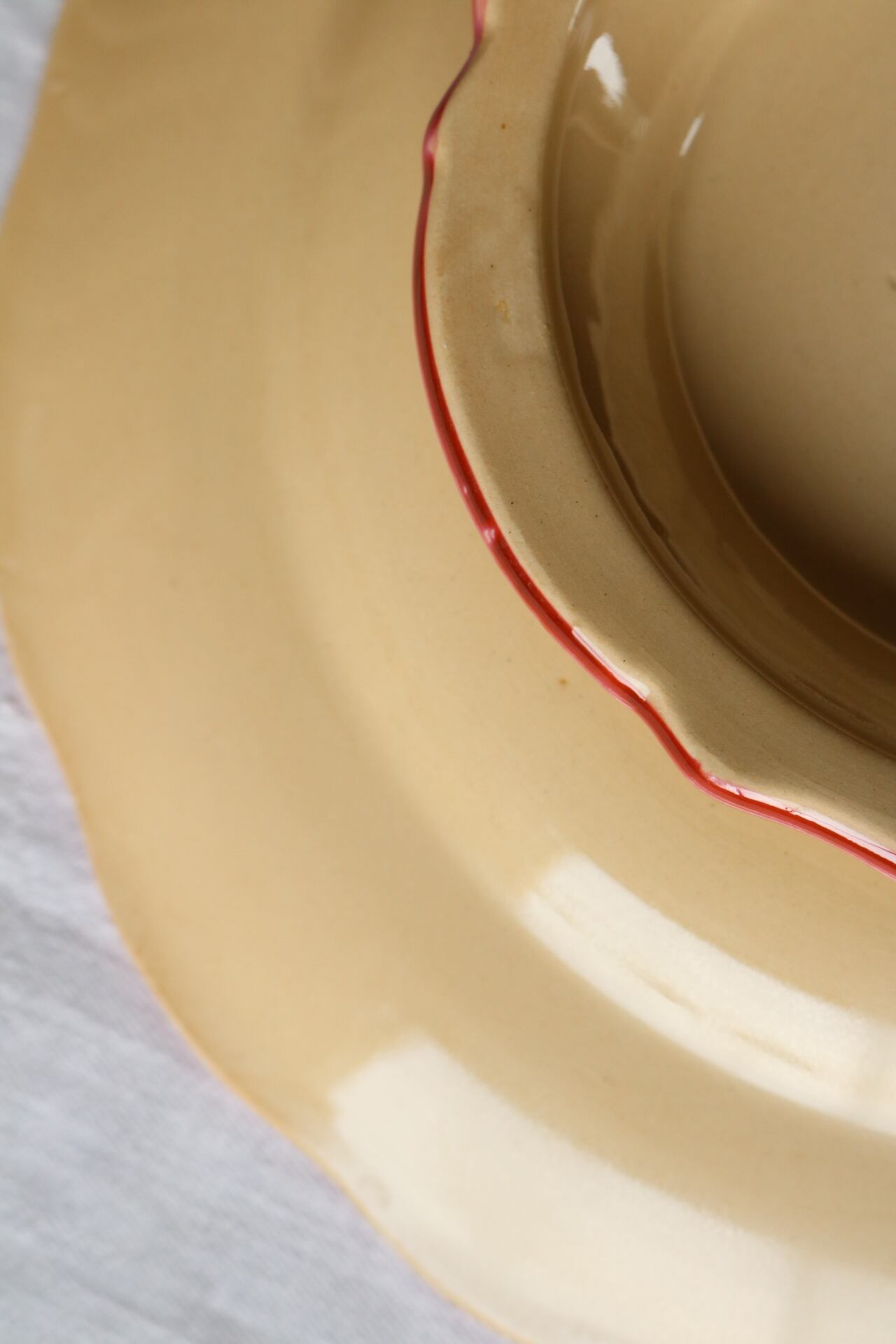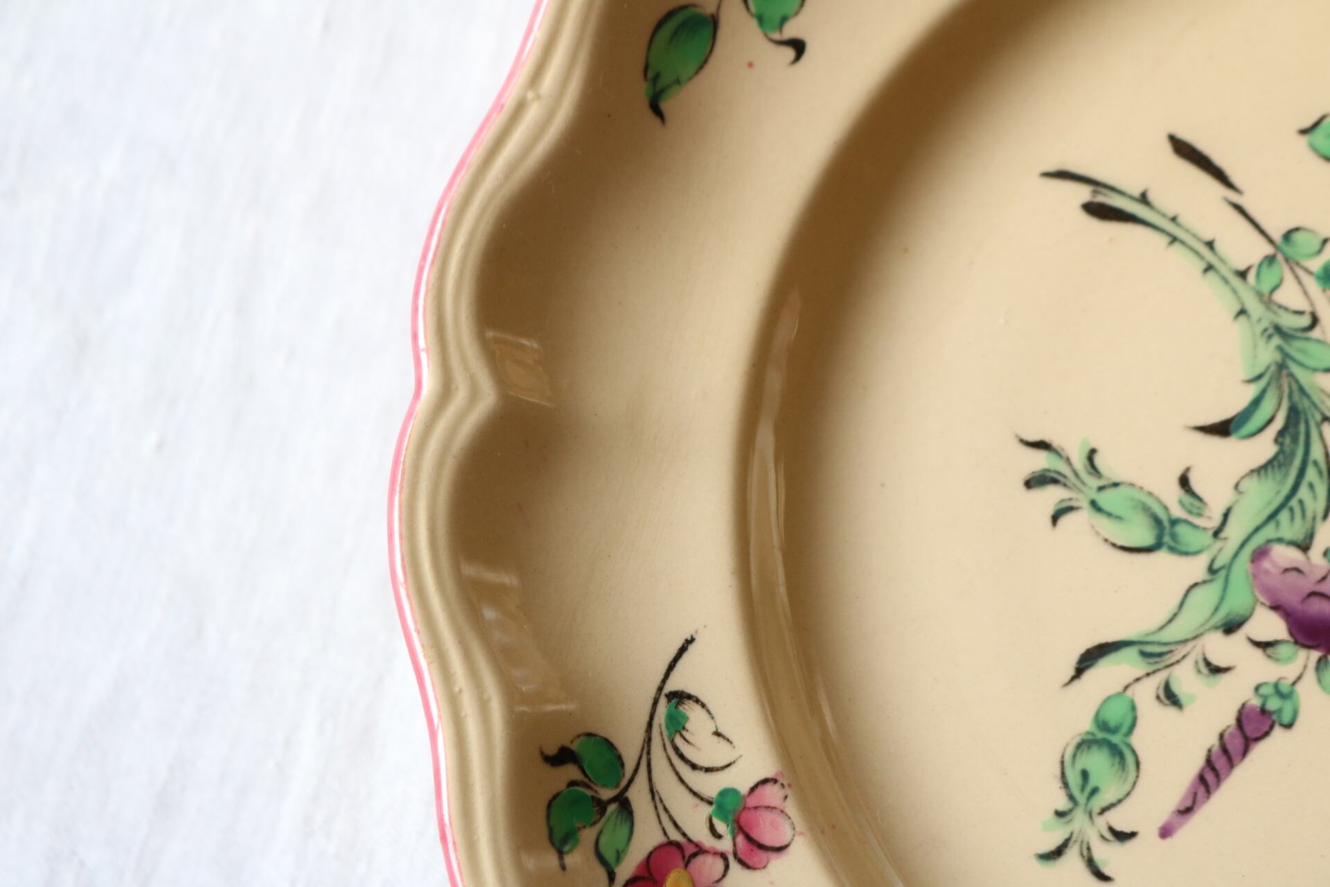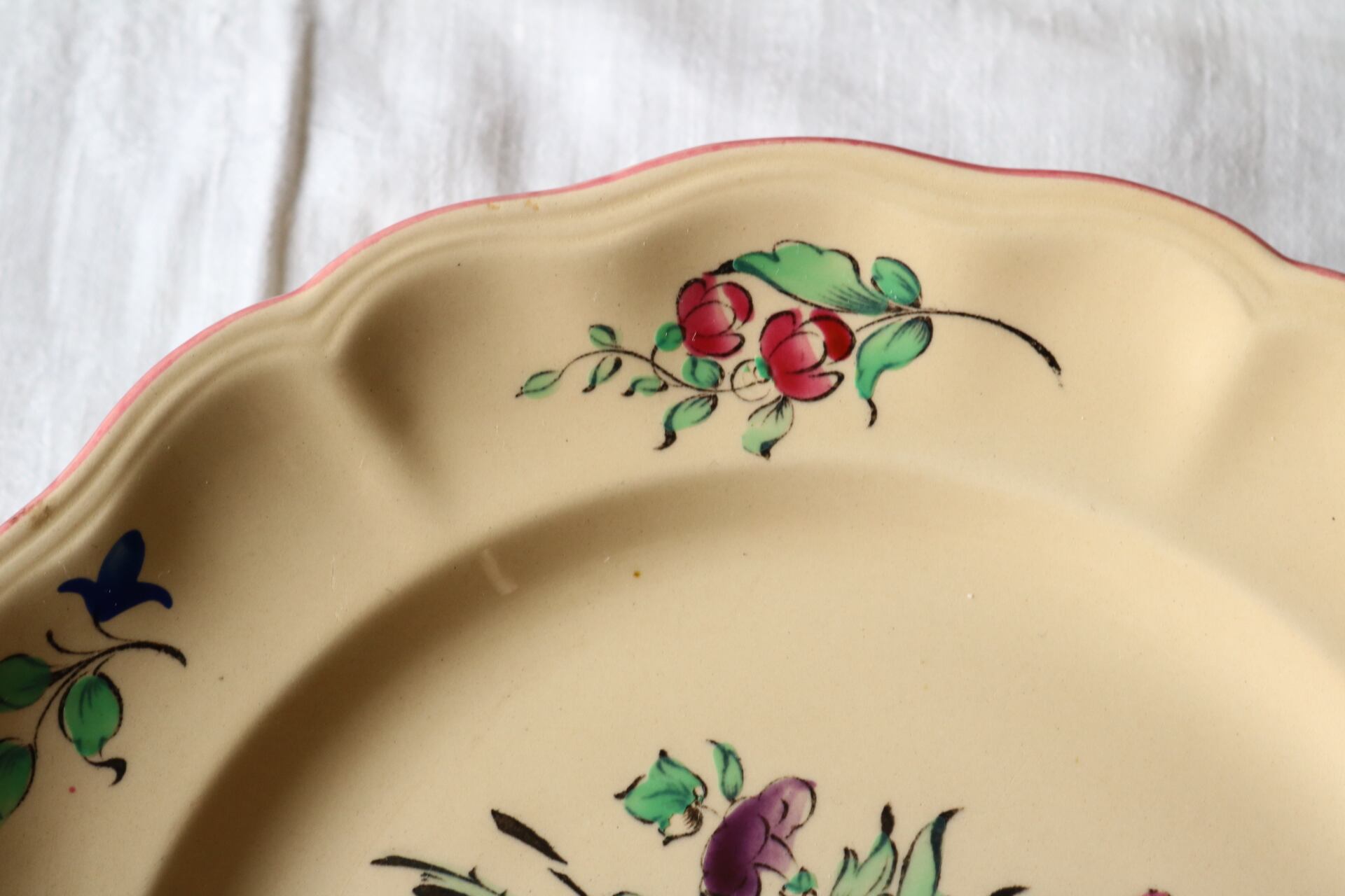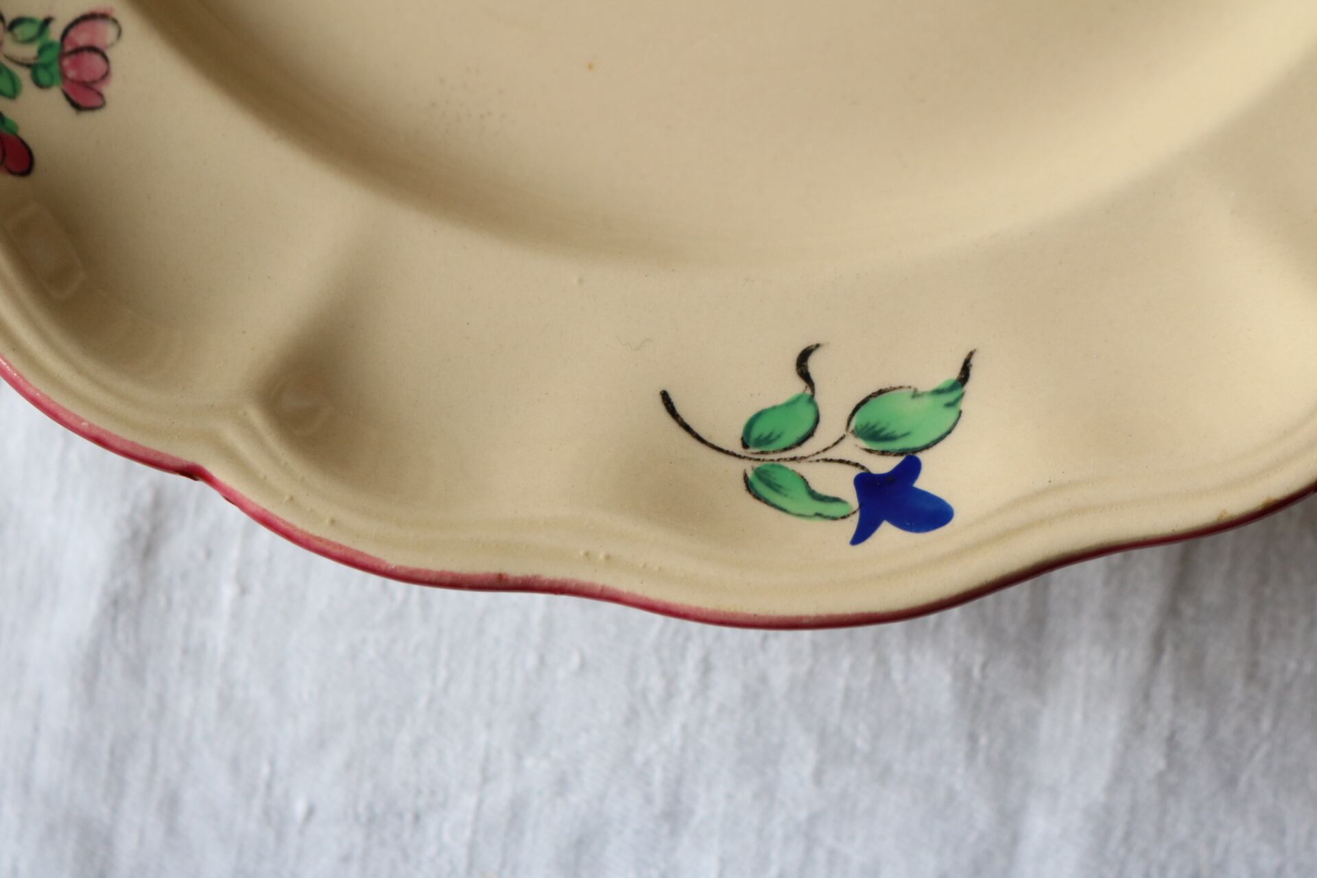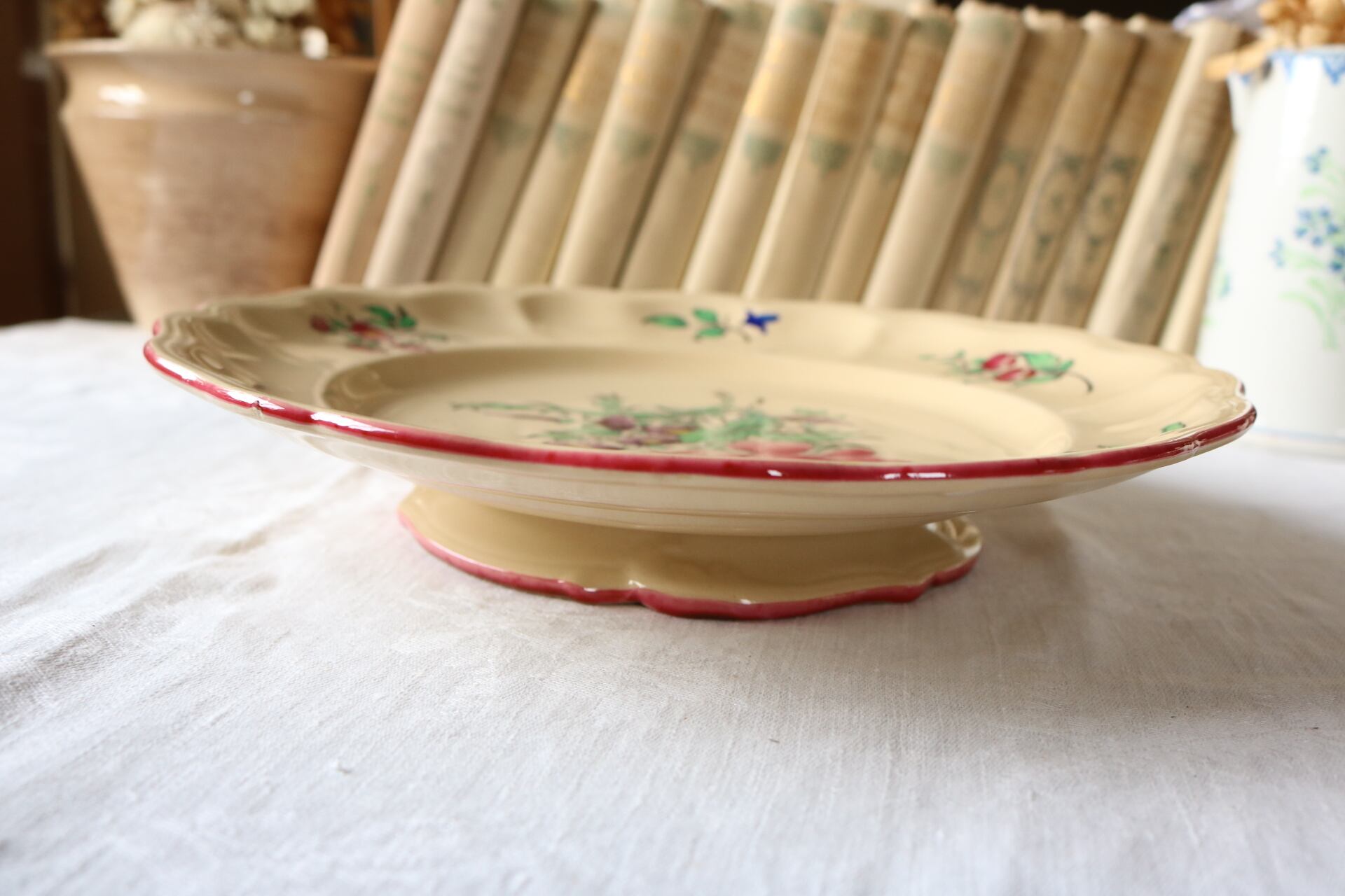 Luneville クリーム 薔薇 手描き ケーキスタンド コンポティエ フランス アンティーク