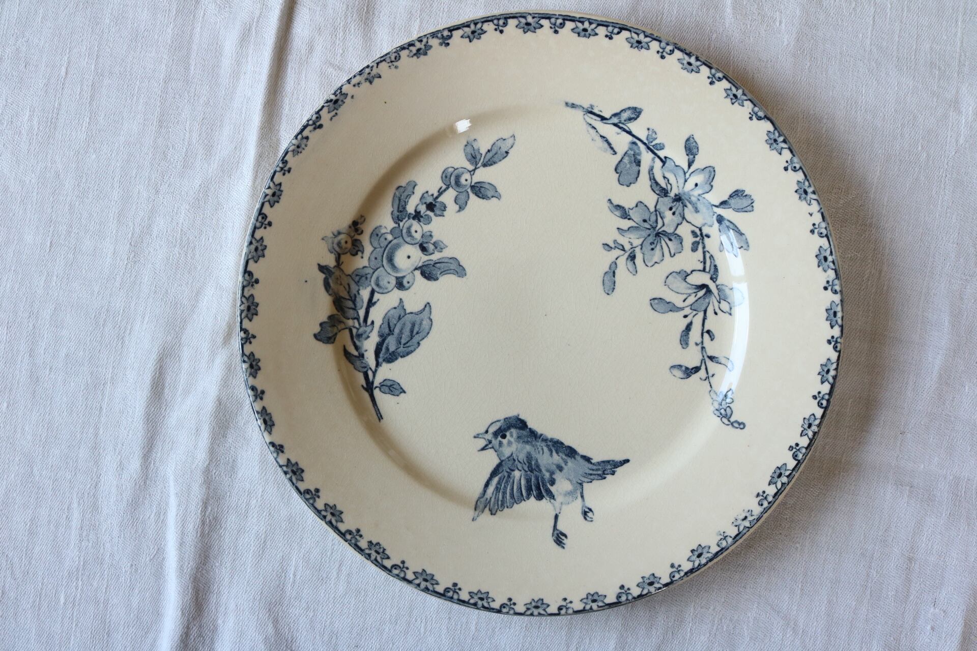 Sarreguemines デザート プレート 深いブルー フランス アンティーク