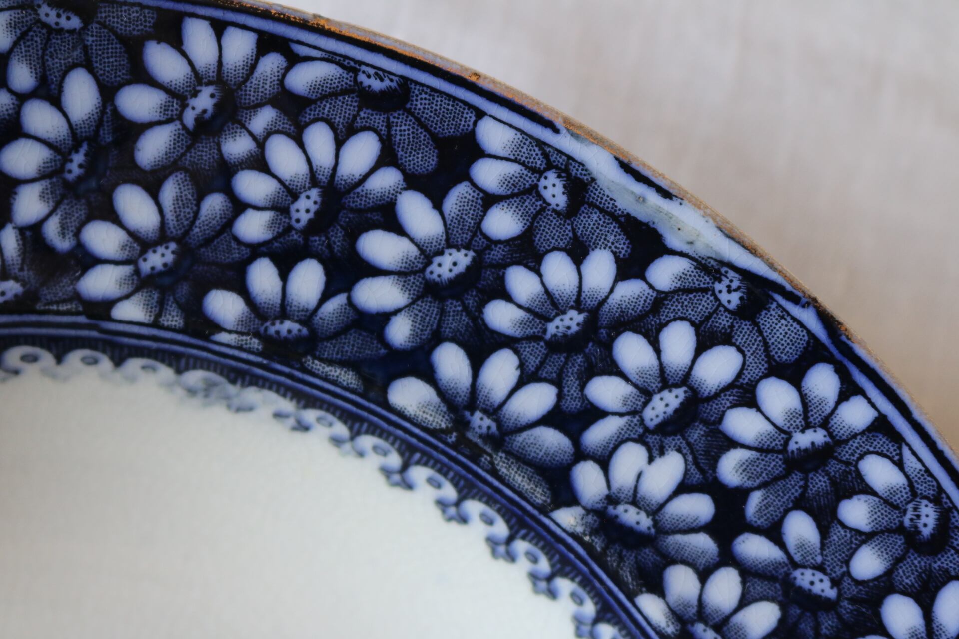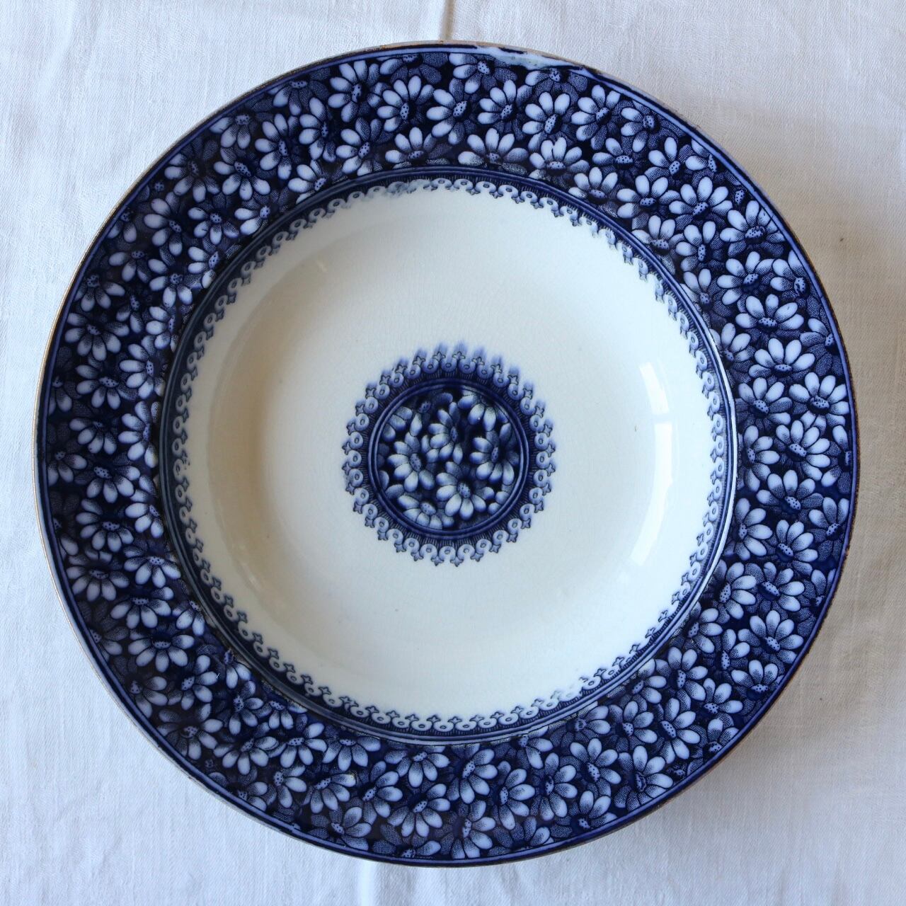 イギリス アンティーク 藍色 デイジー 深皿 プレート