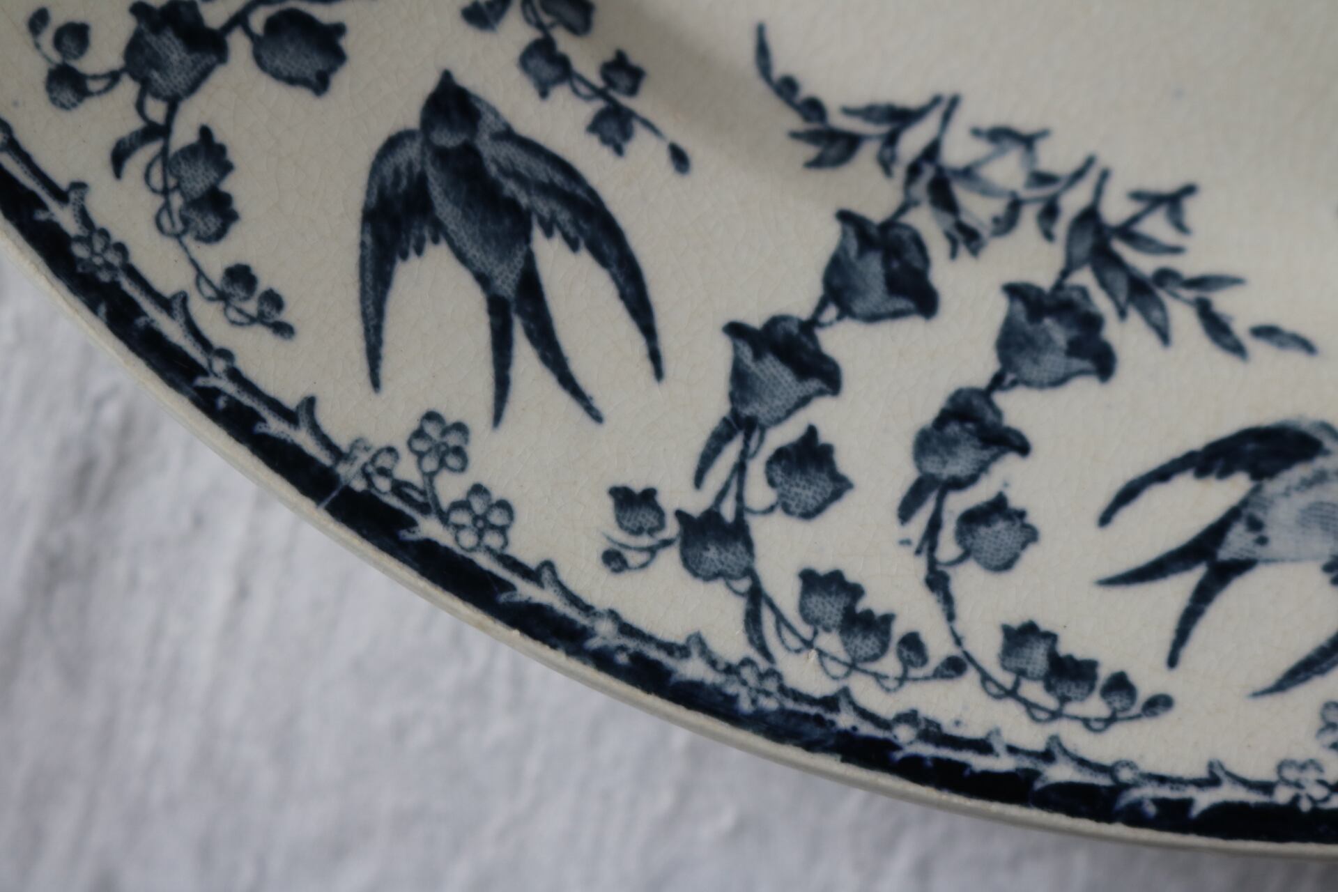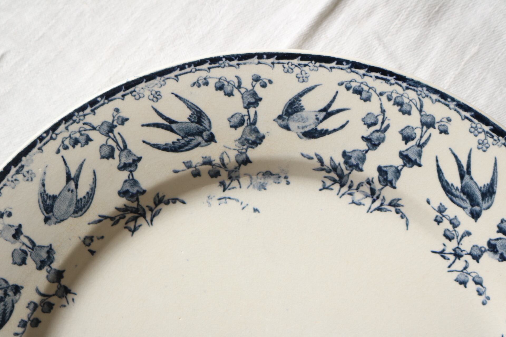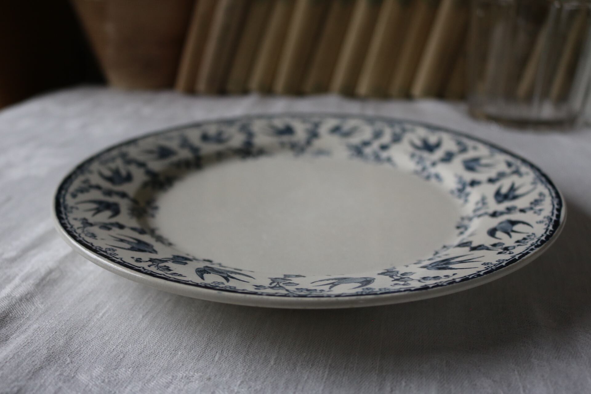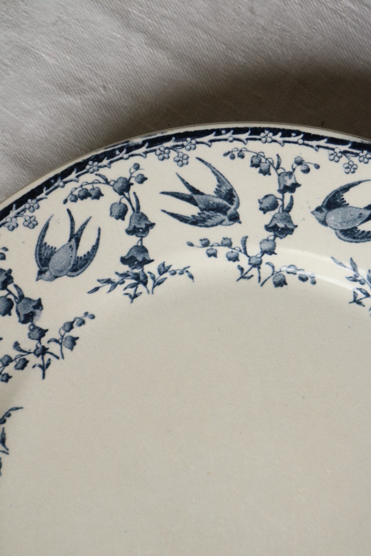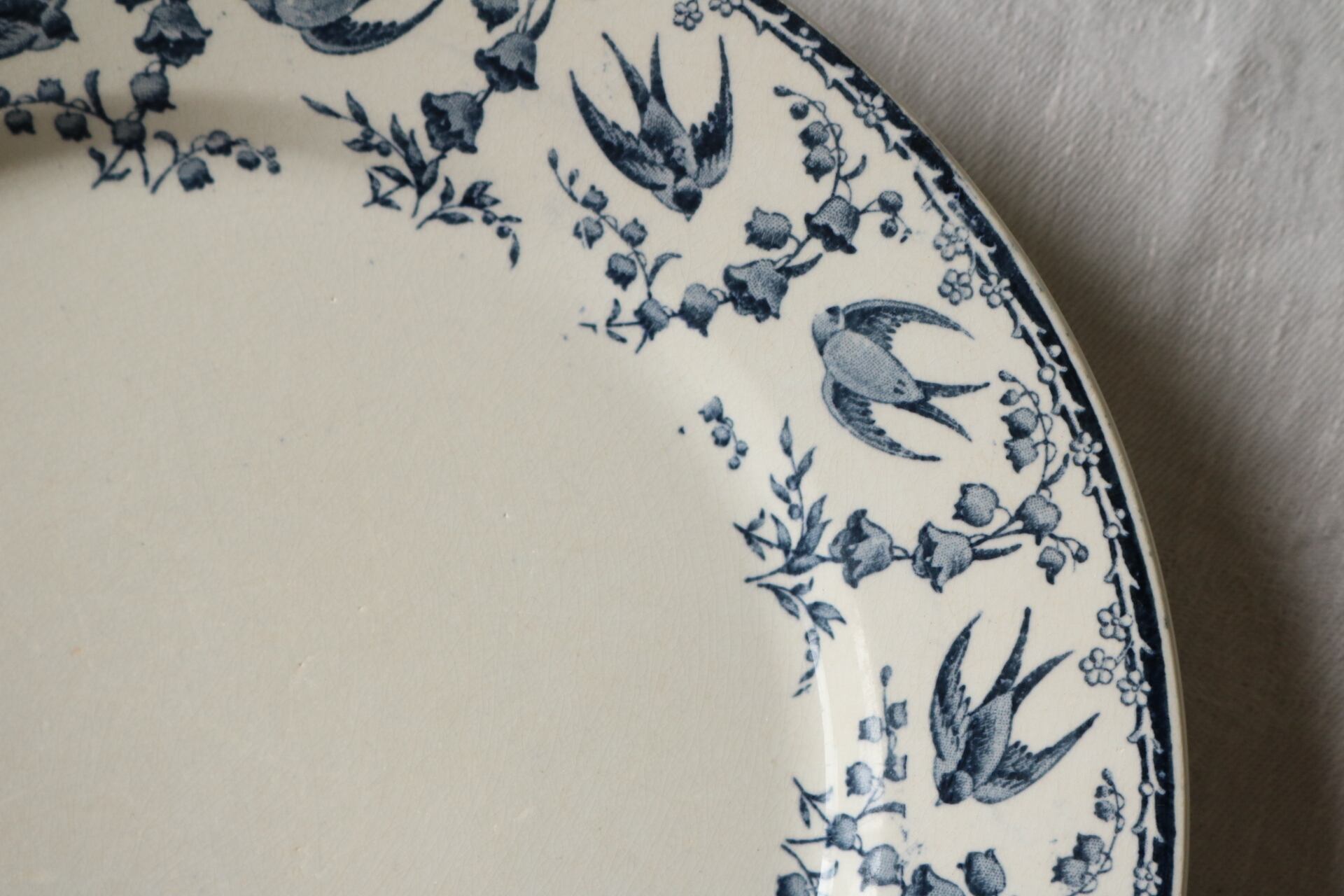 Sarreguemines 藍色 スズラン ツバメ b フランス アンティーク プレート