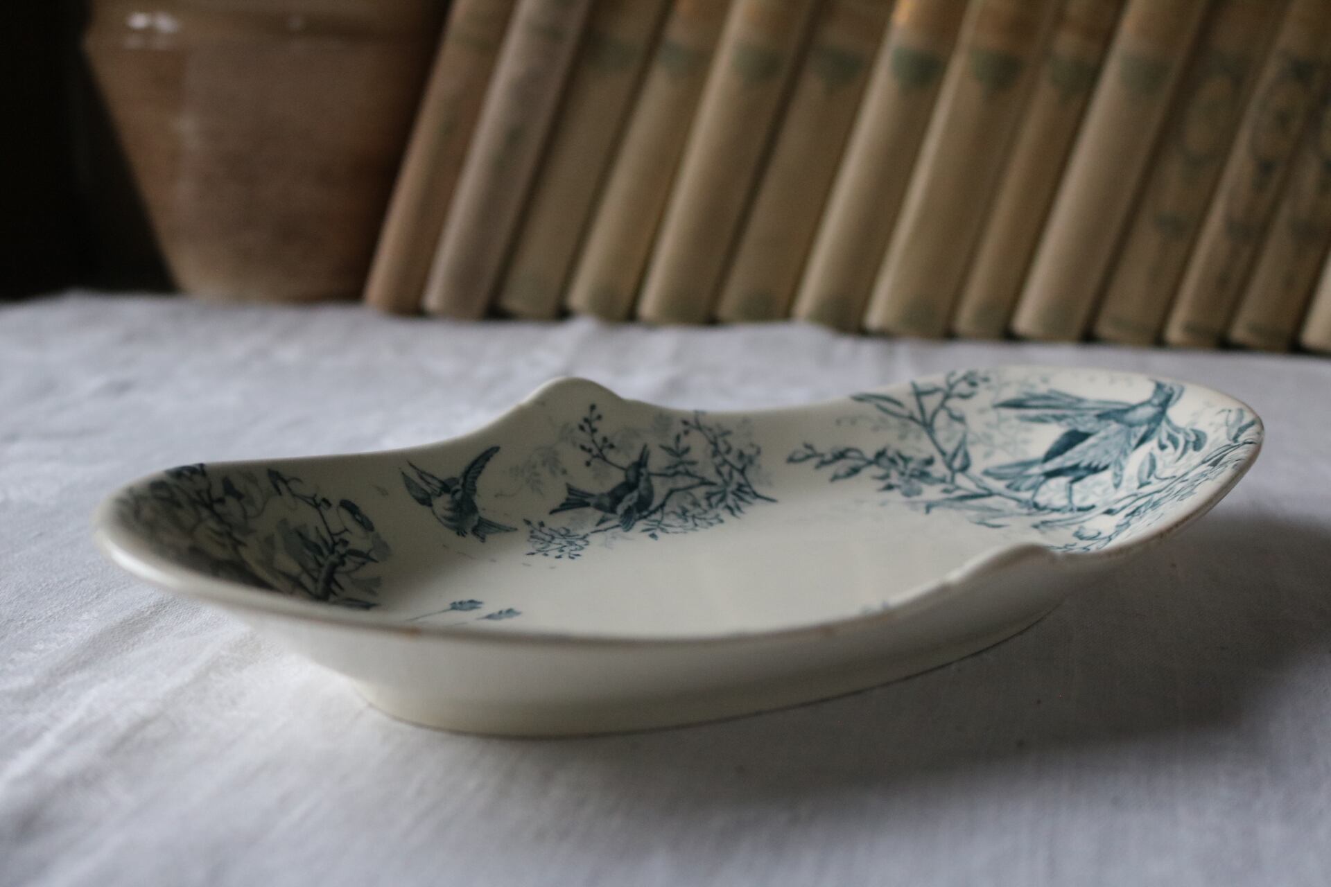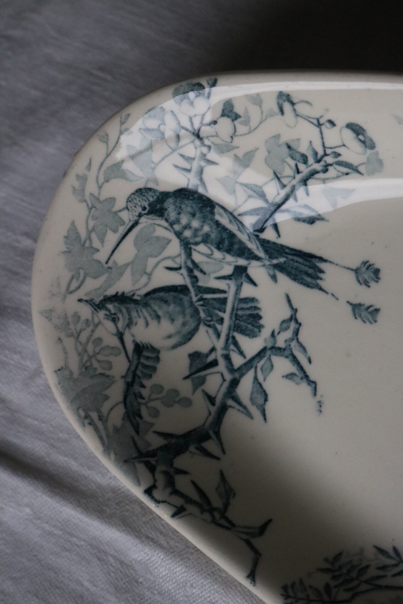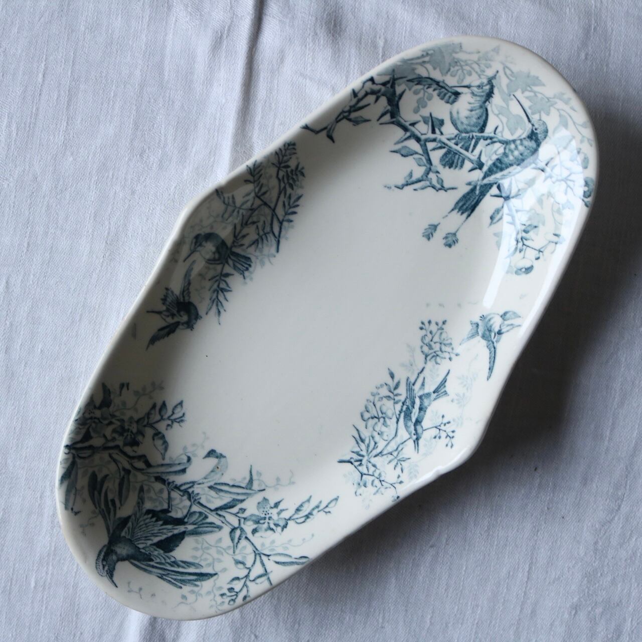Luneville ラヴィエ ブルーグリーン 小鳥 ハチドリ フランス アンティーク