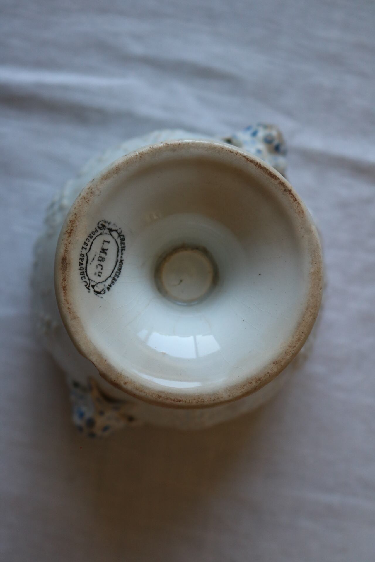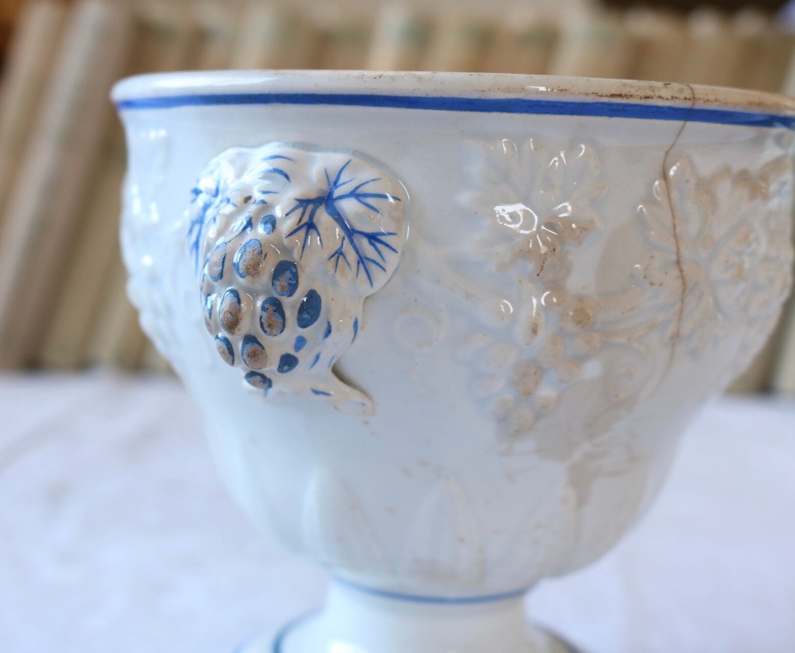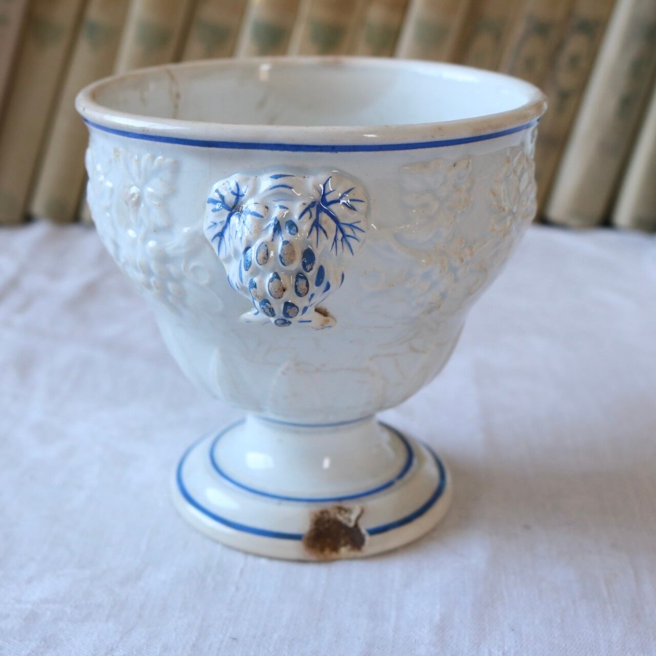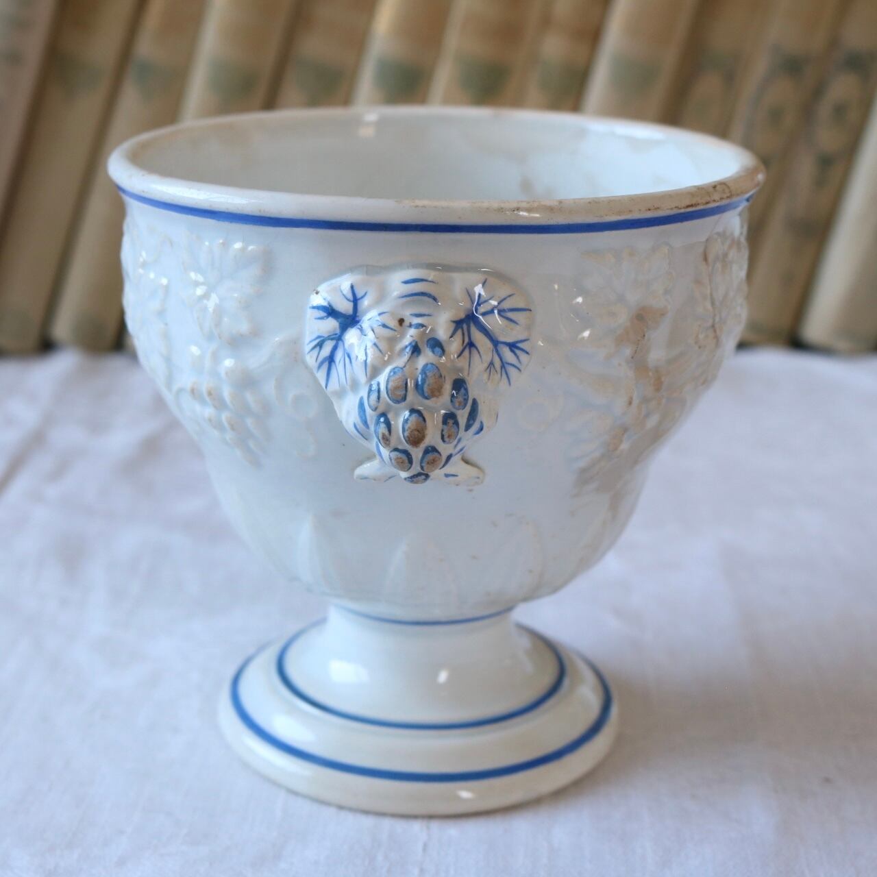 【希少】creil et montereau ブドウ レリーフ シュクリエ 蓋なし ファイアンス フィーヌ