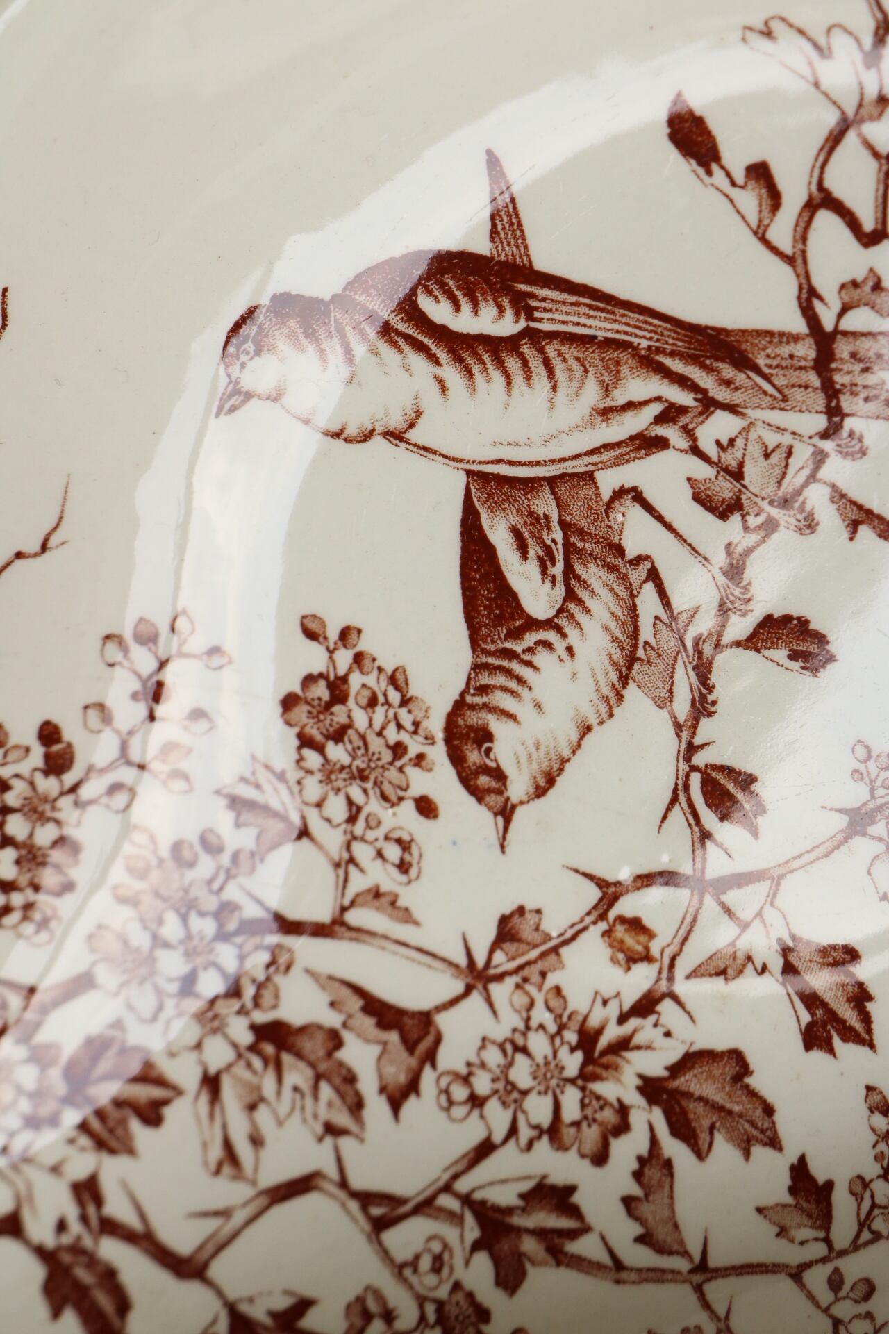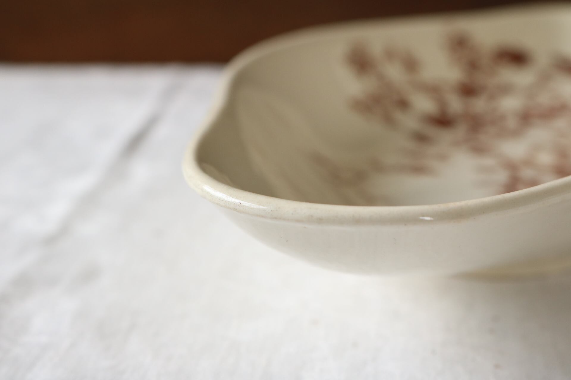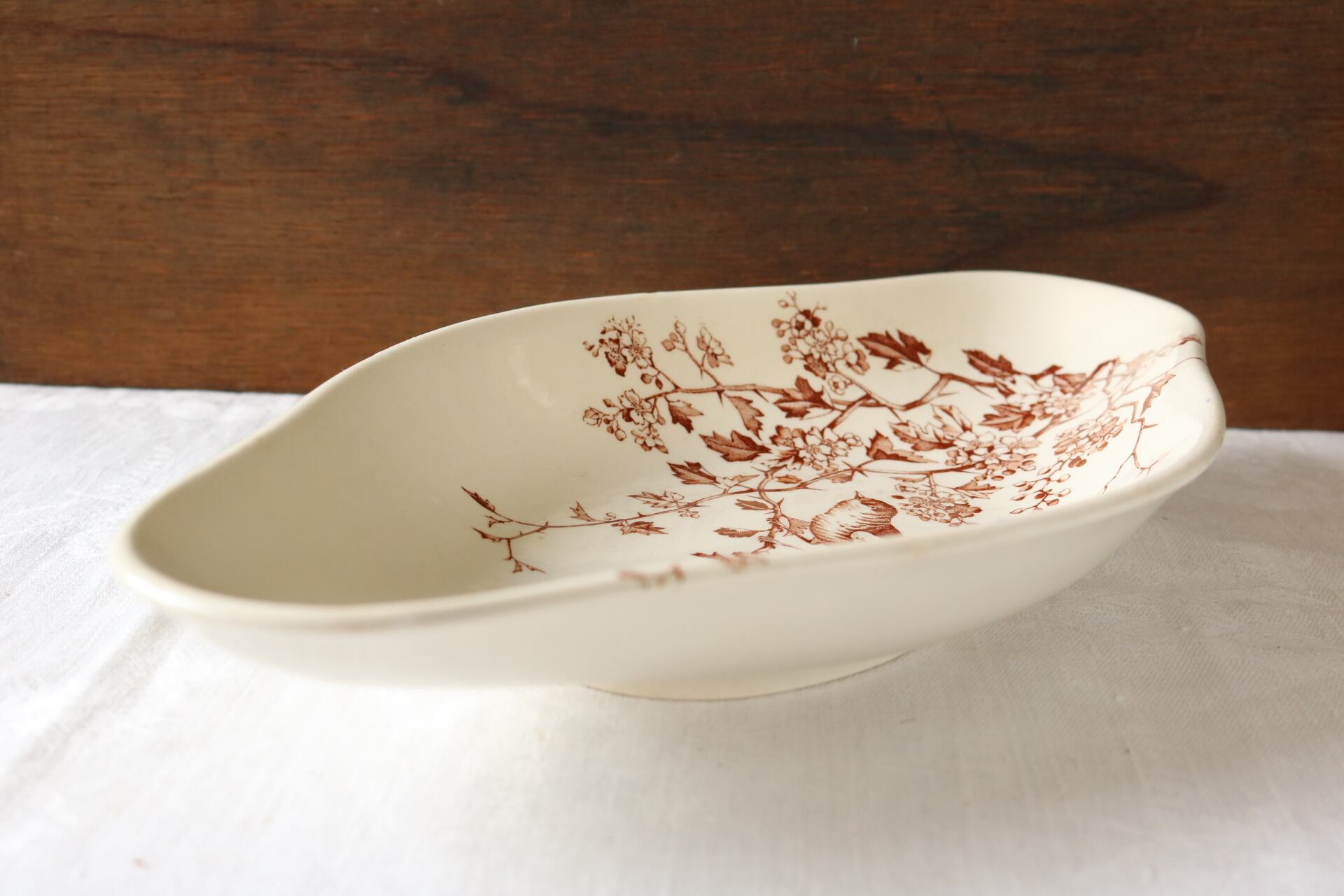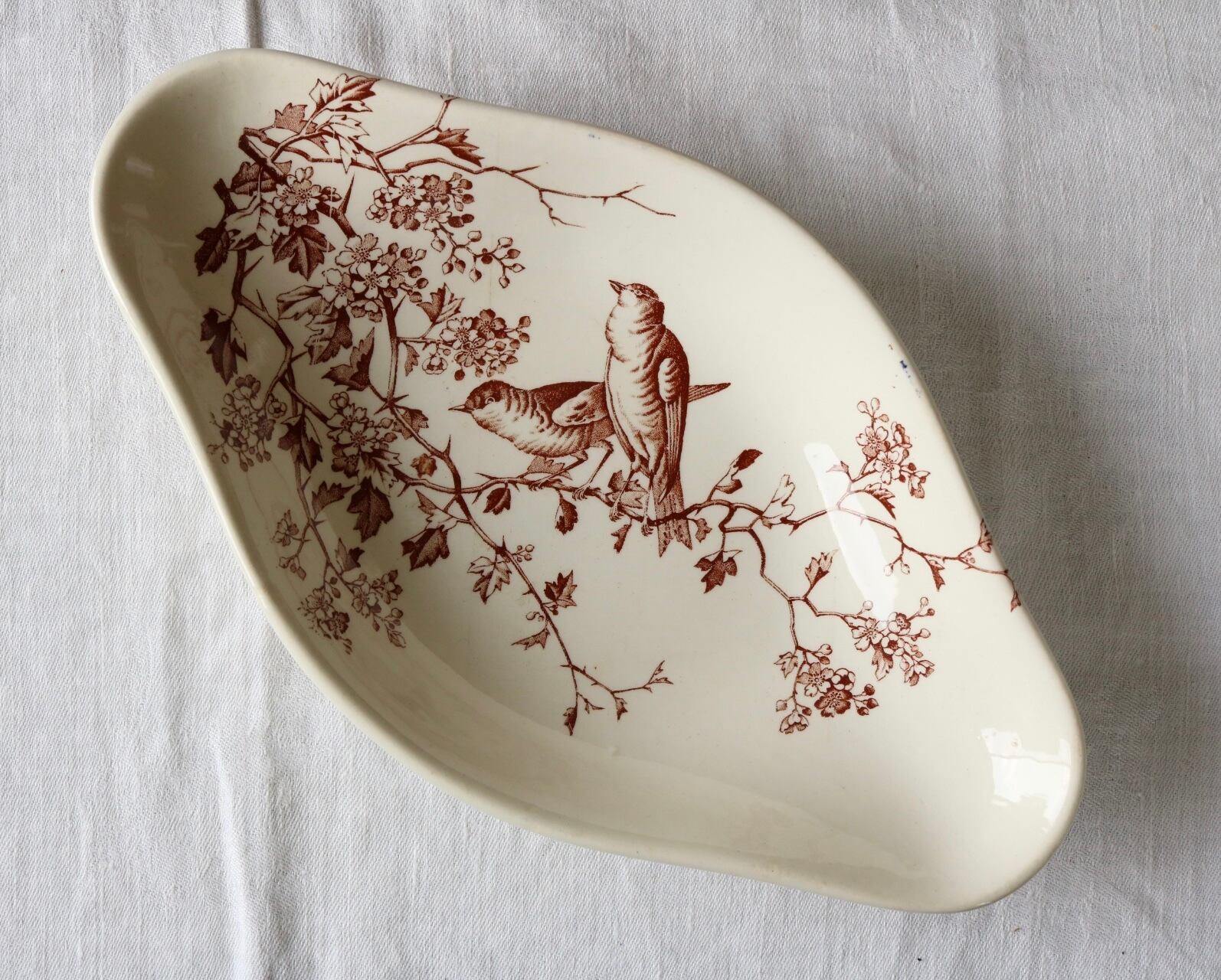 Luneville ラヴィエ セピア ブラウン 小鳥 ウグイス サンザシ フランス アンティーク