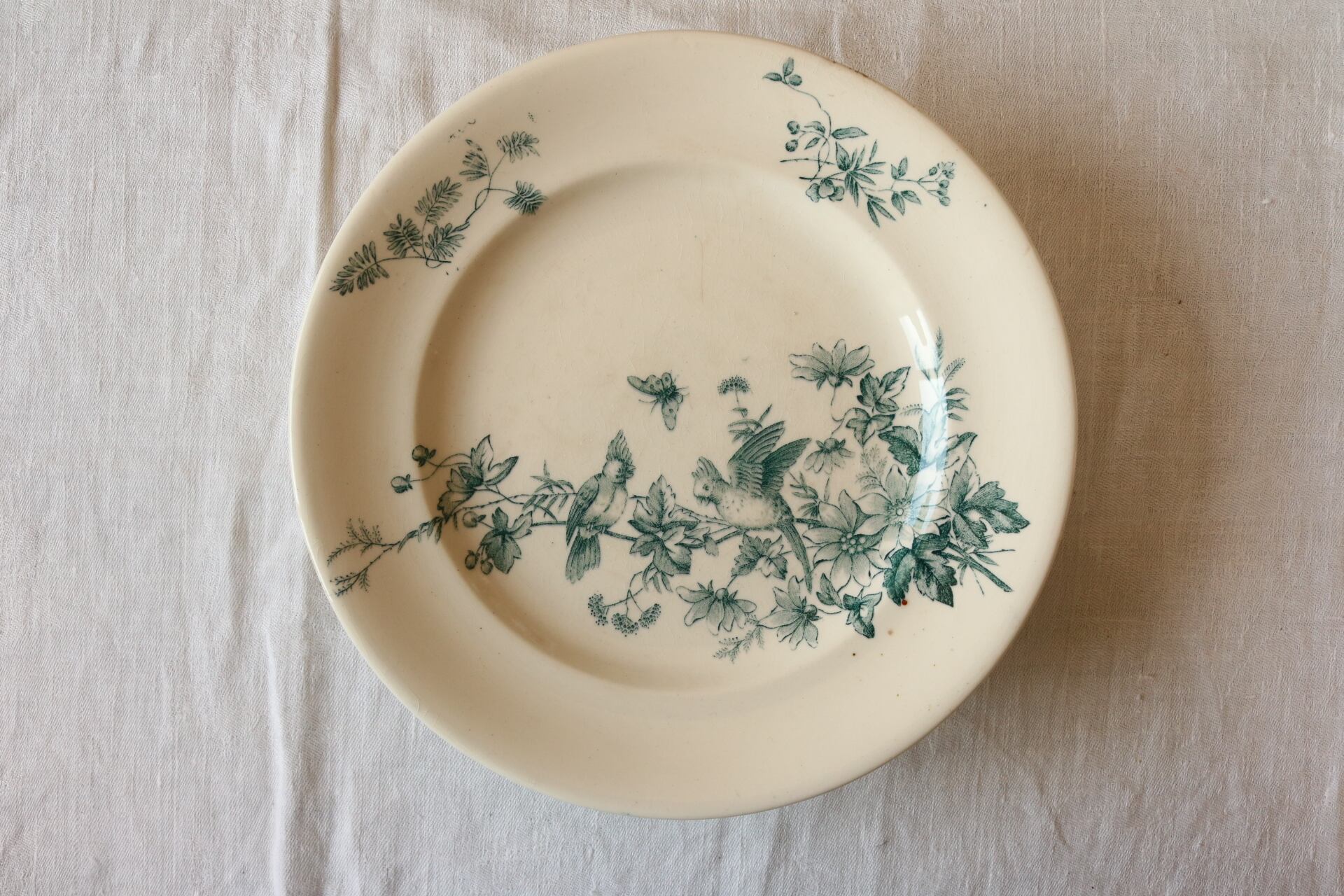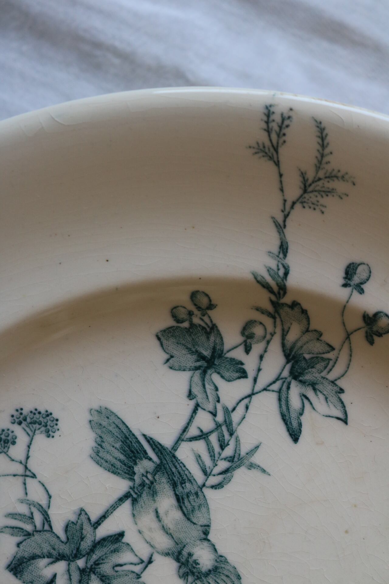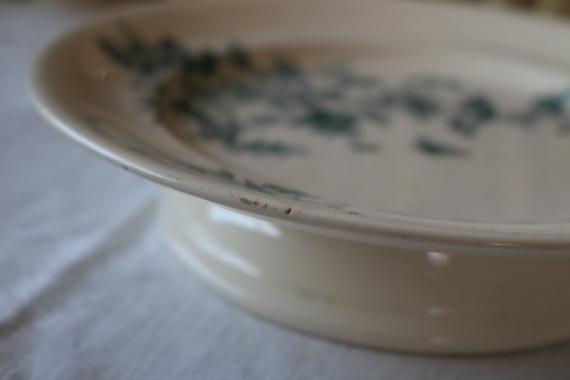 Longwy ケーキスタンド 藍色 mignon 小鳥 コンポティエ フランス アンティーク ボタニカル
