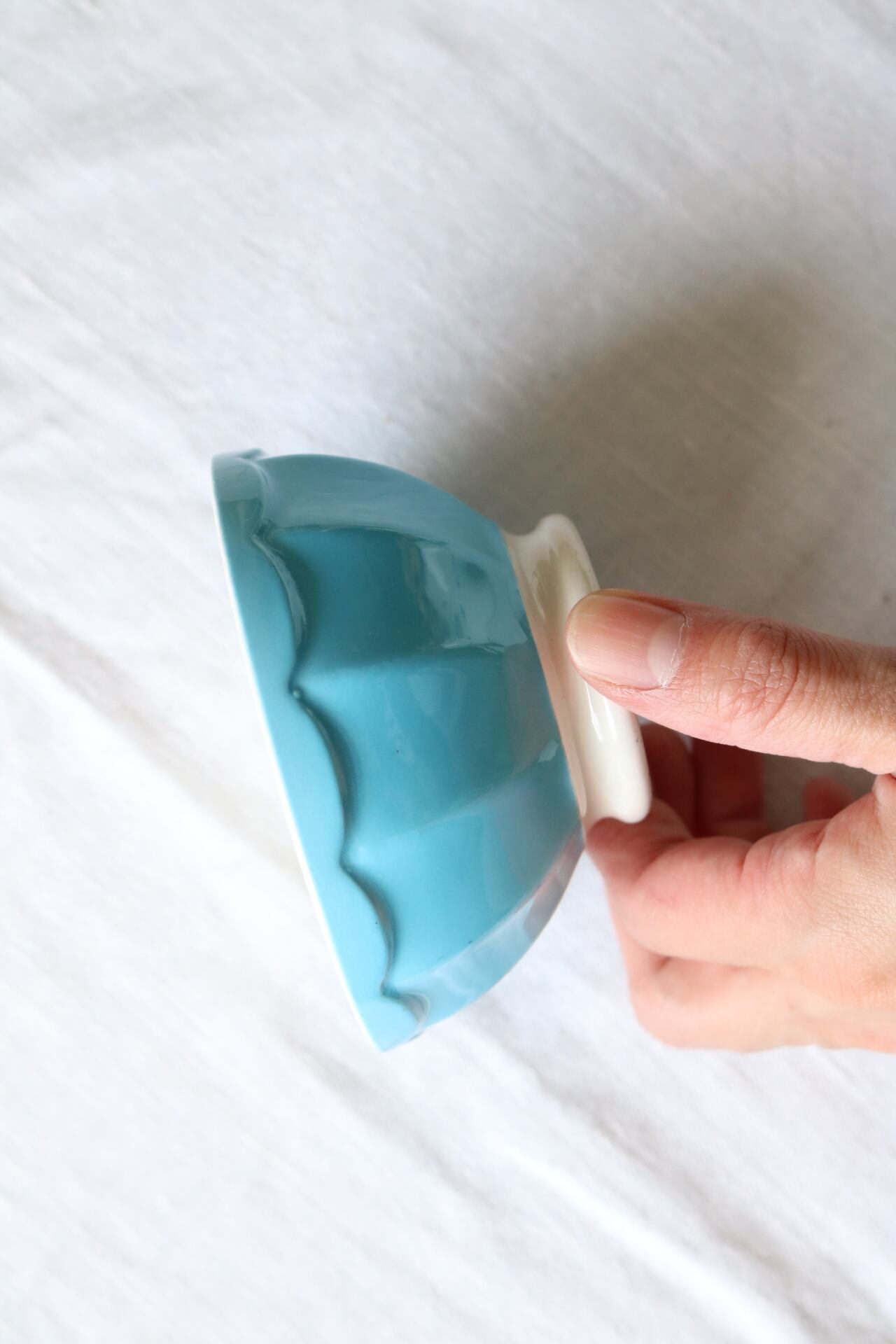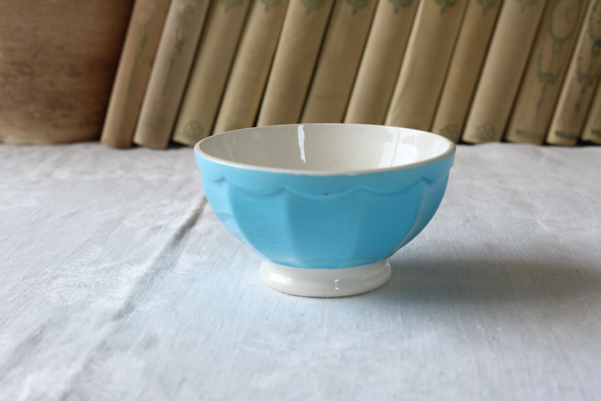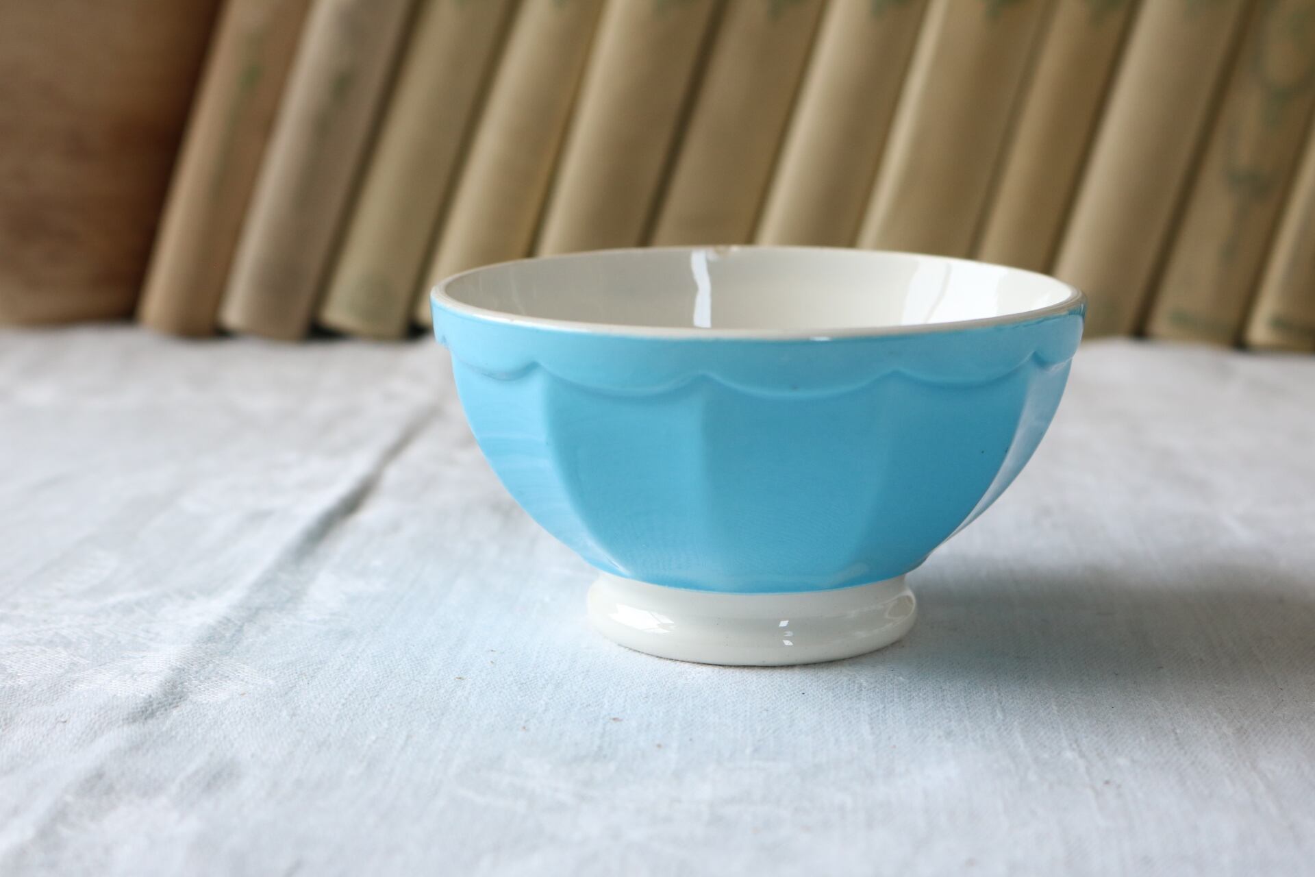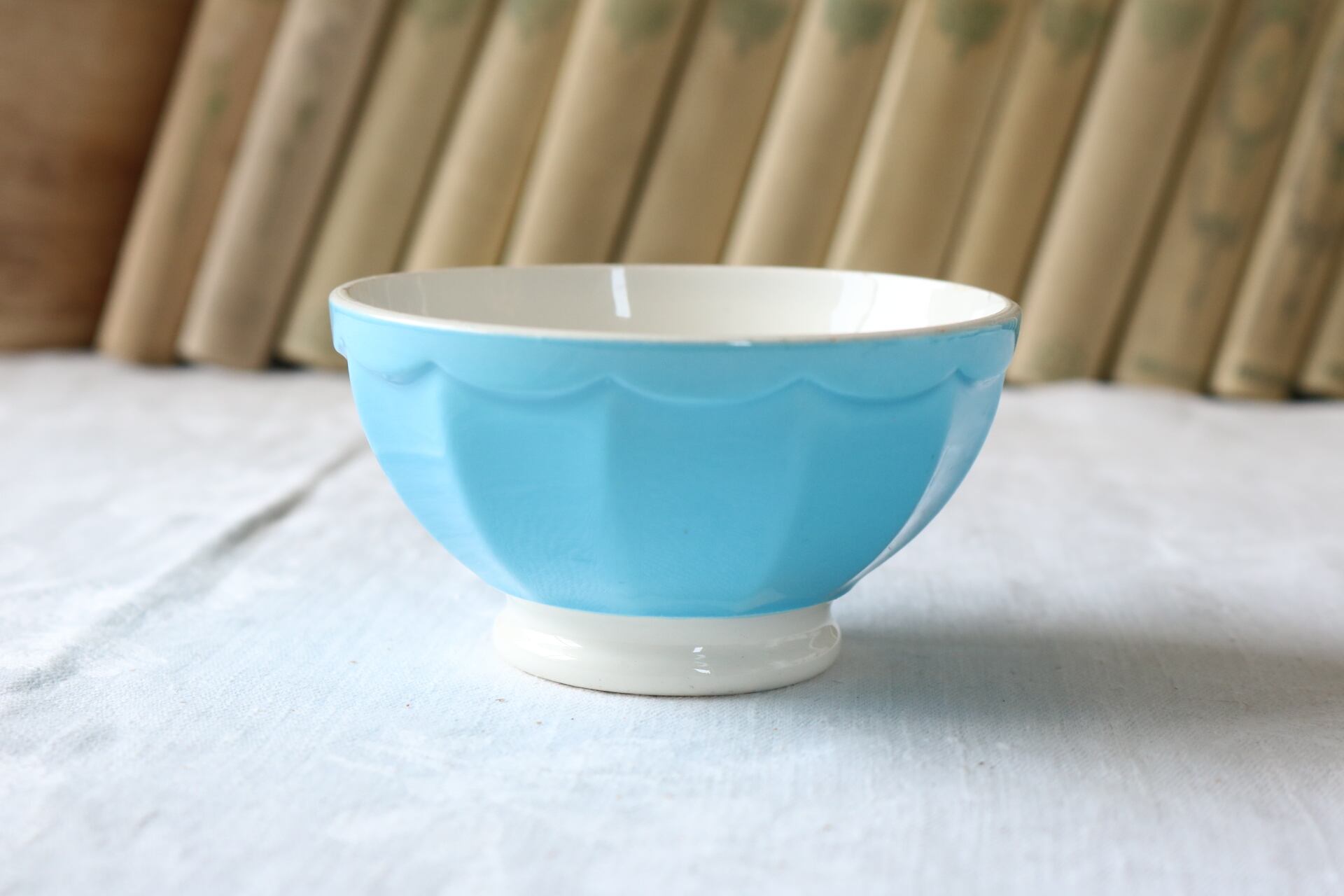 パキッとした水色のカフェオレボウルです。